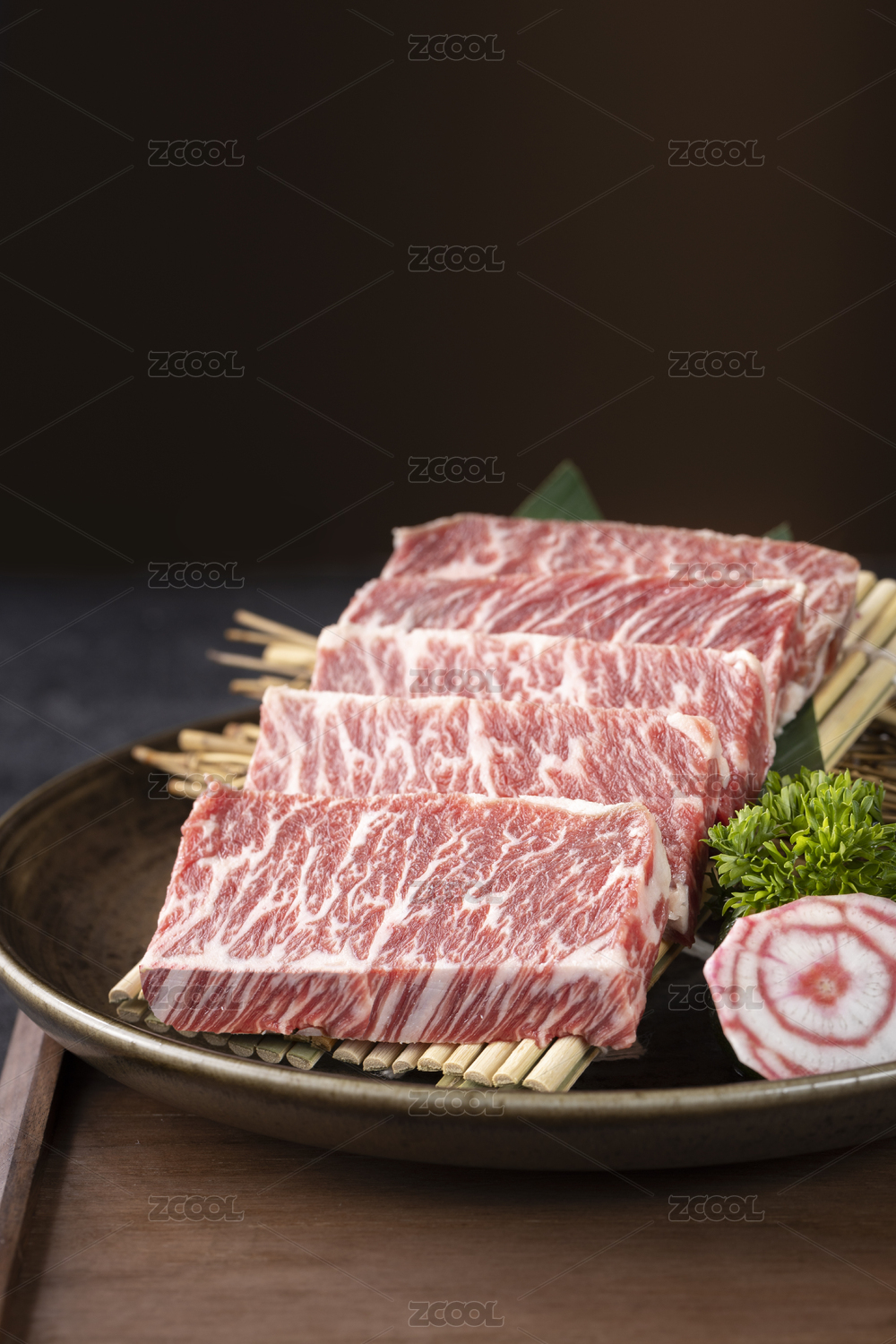 日式盤(pán)子里的燒烤烤肉日餐料理食材雪花牛肉