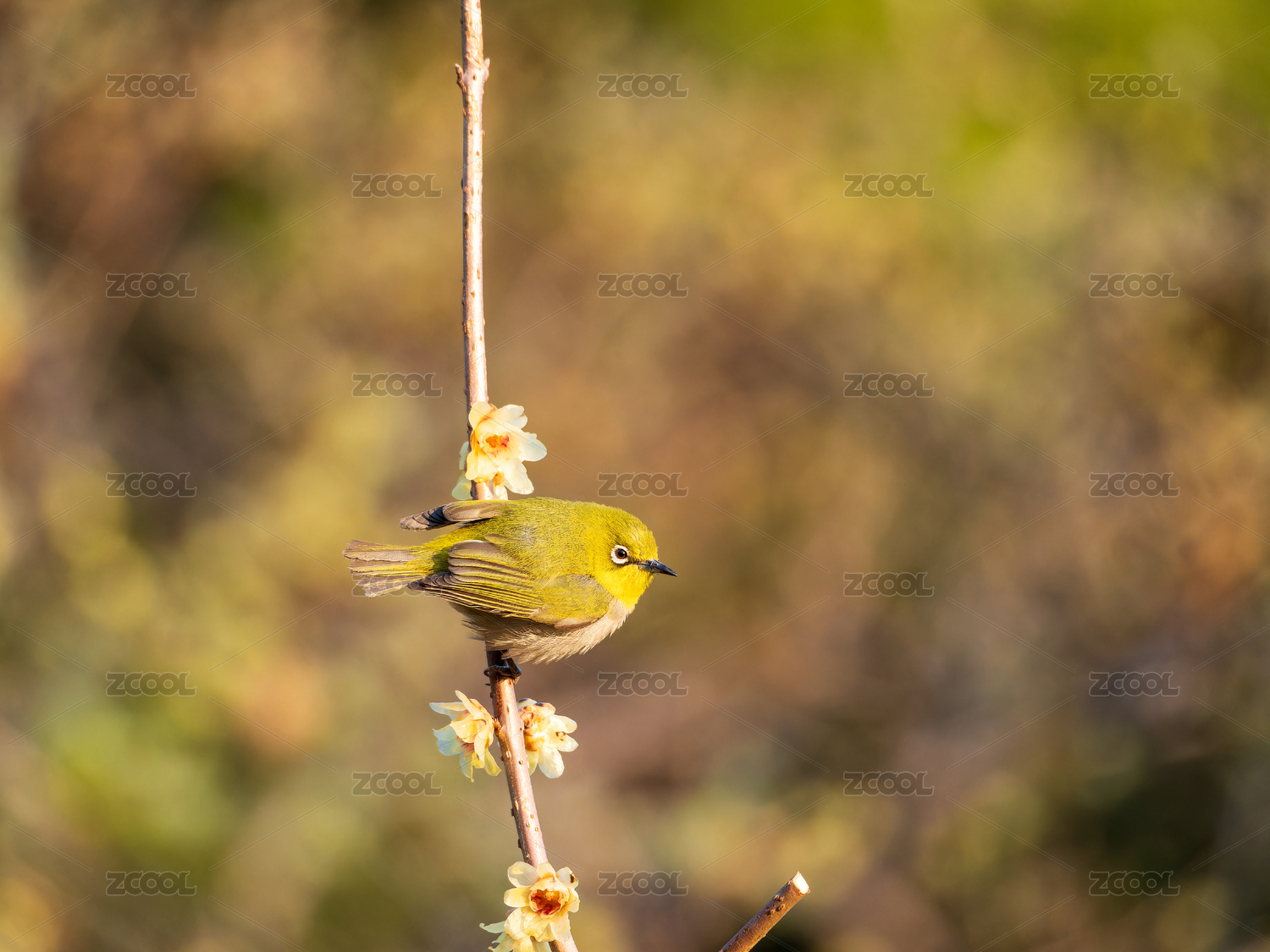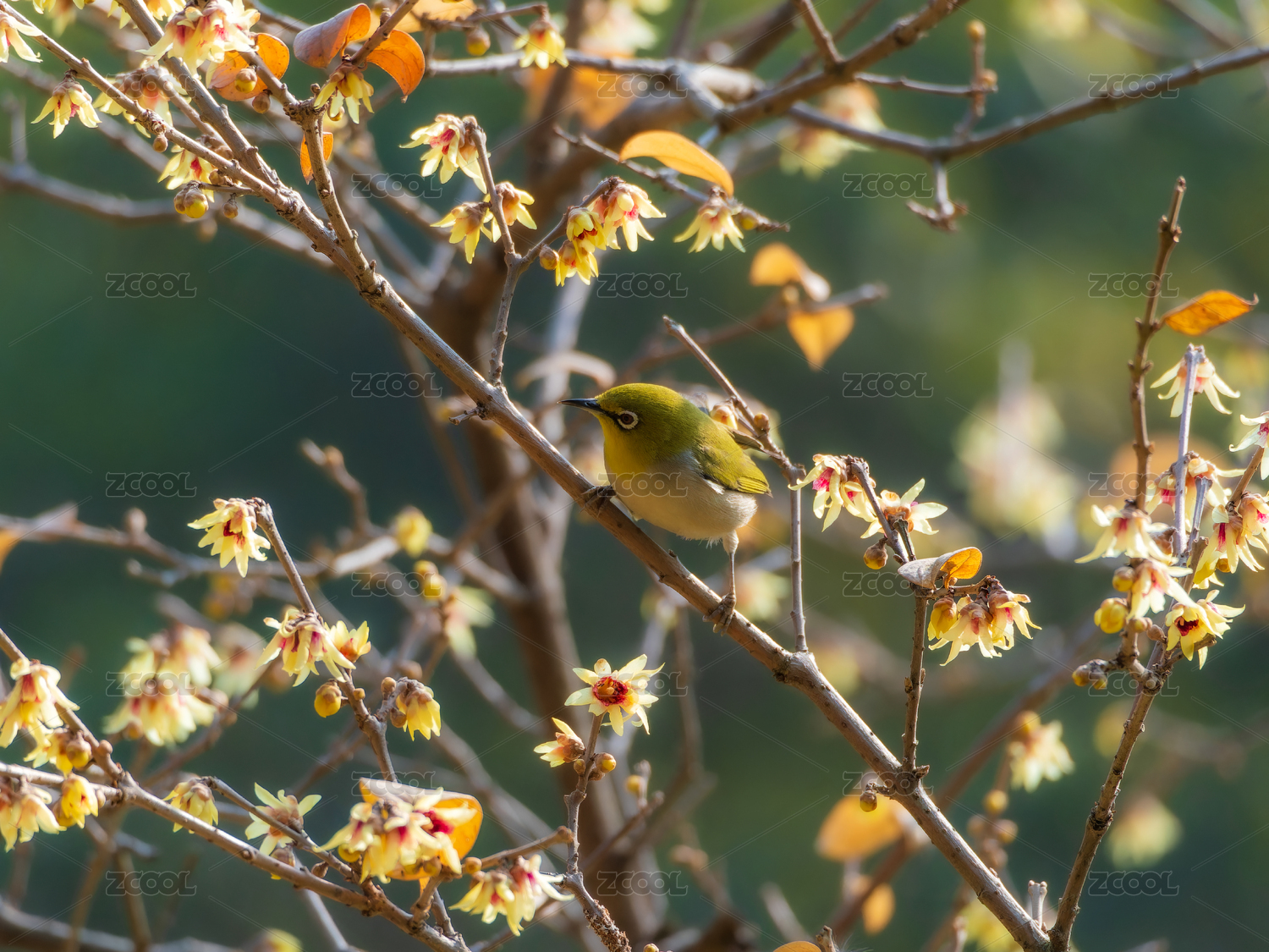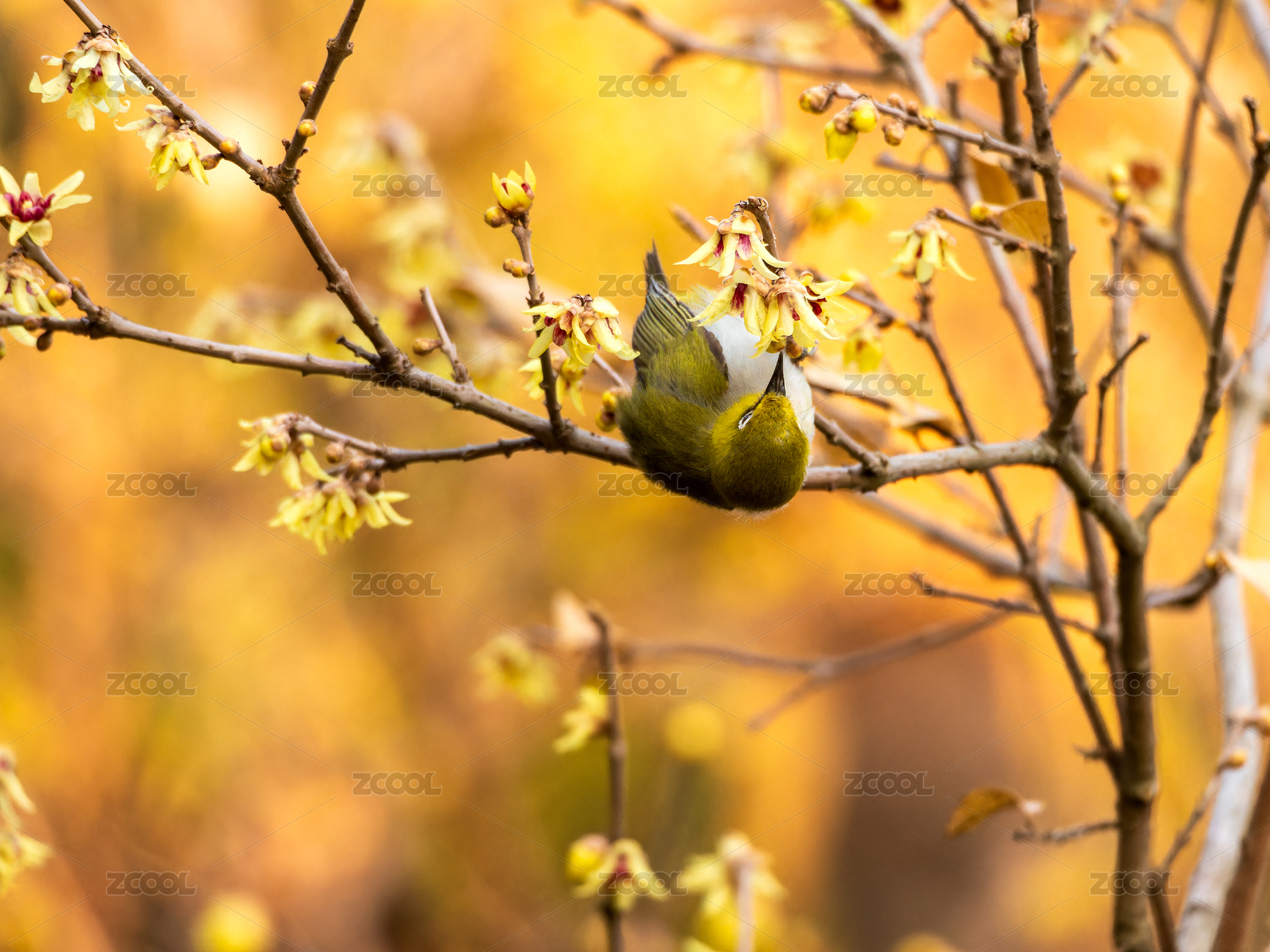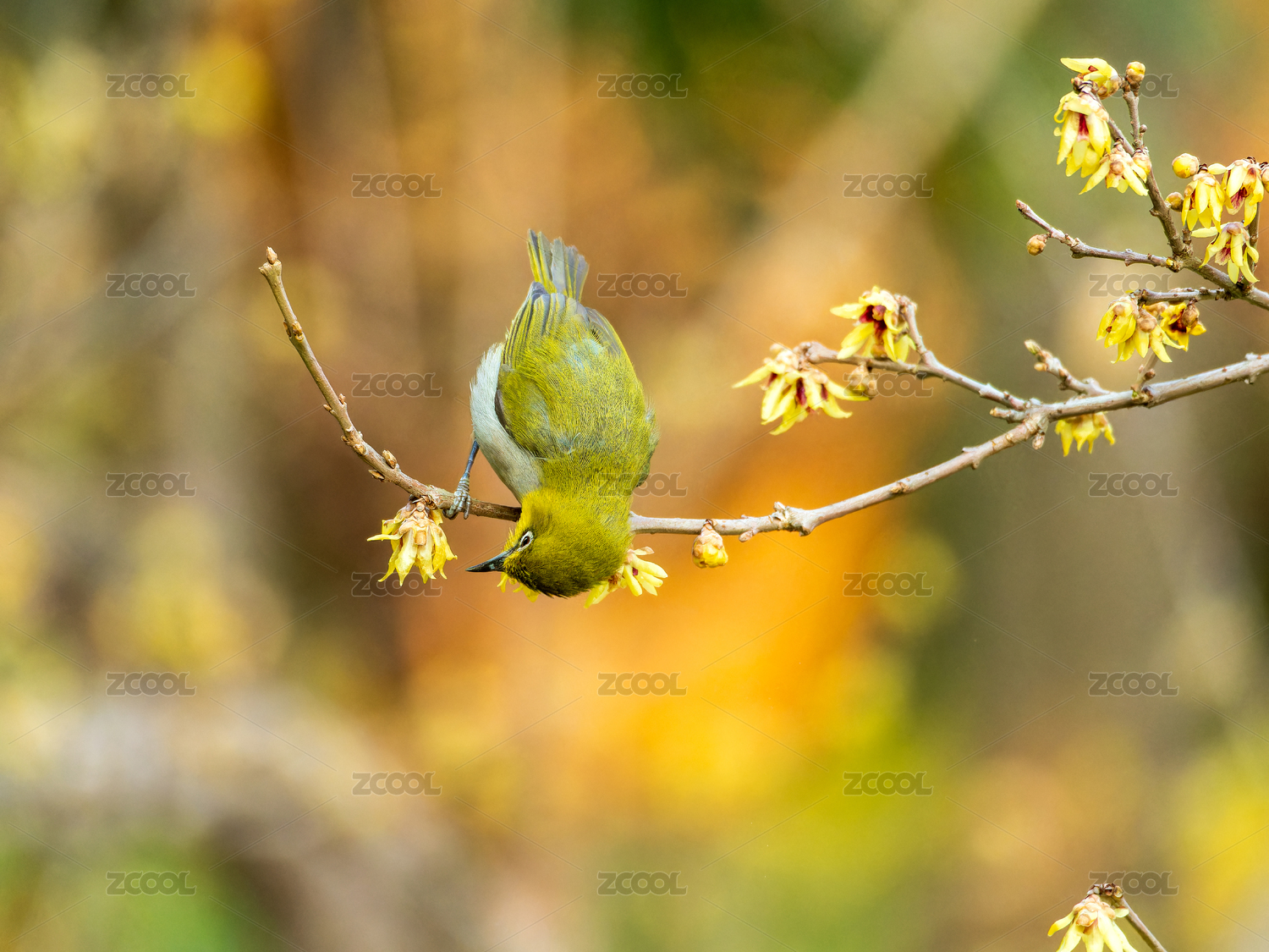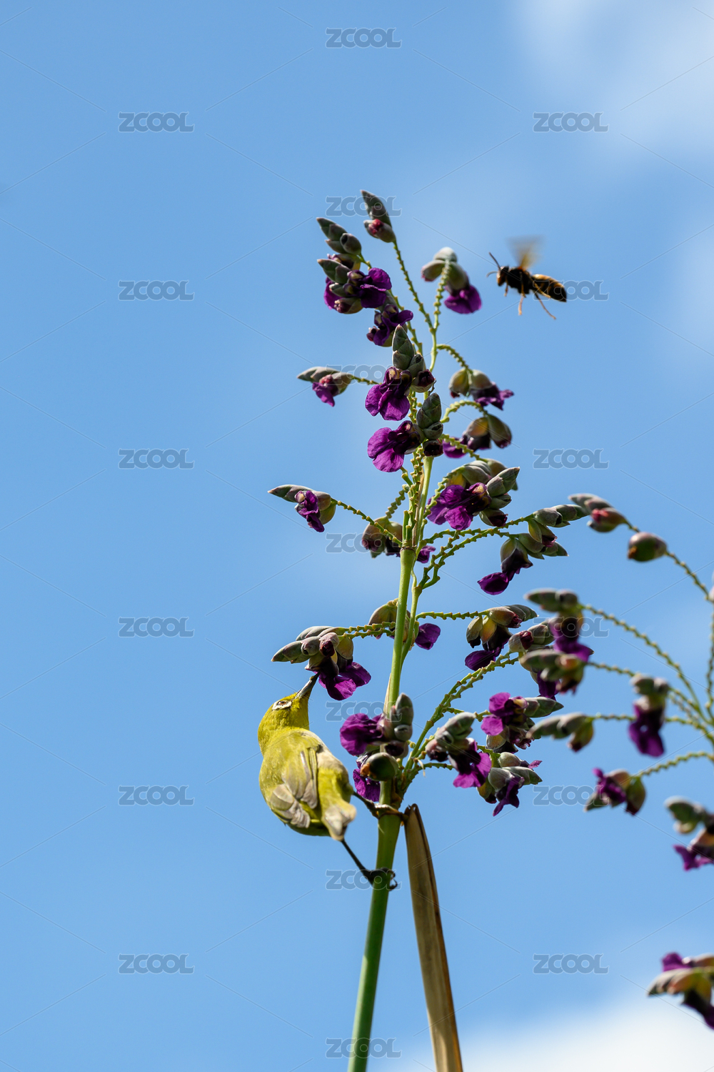 暗綠繡眼鳥在蝦米花上吮食花蜜