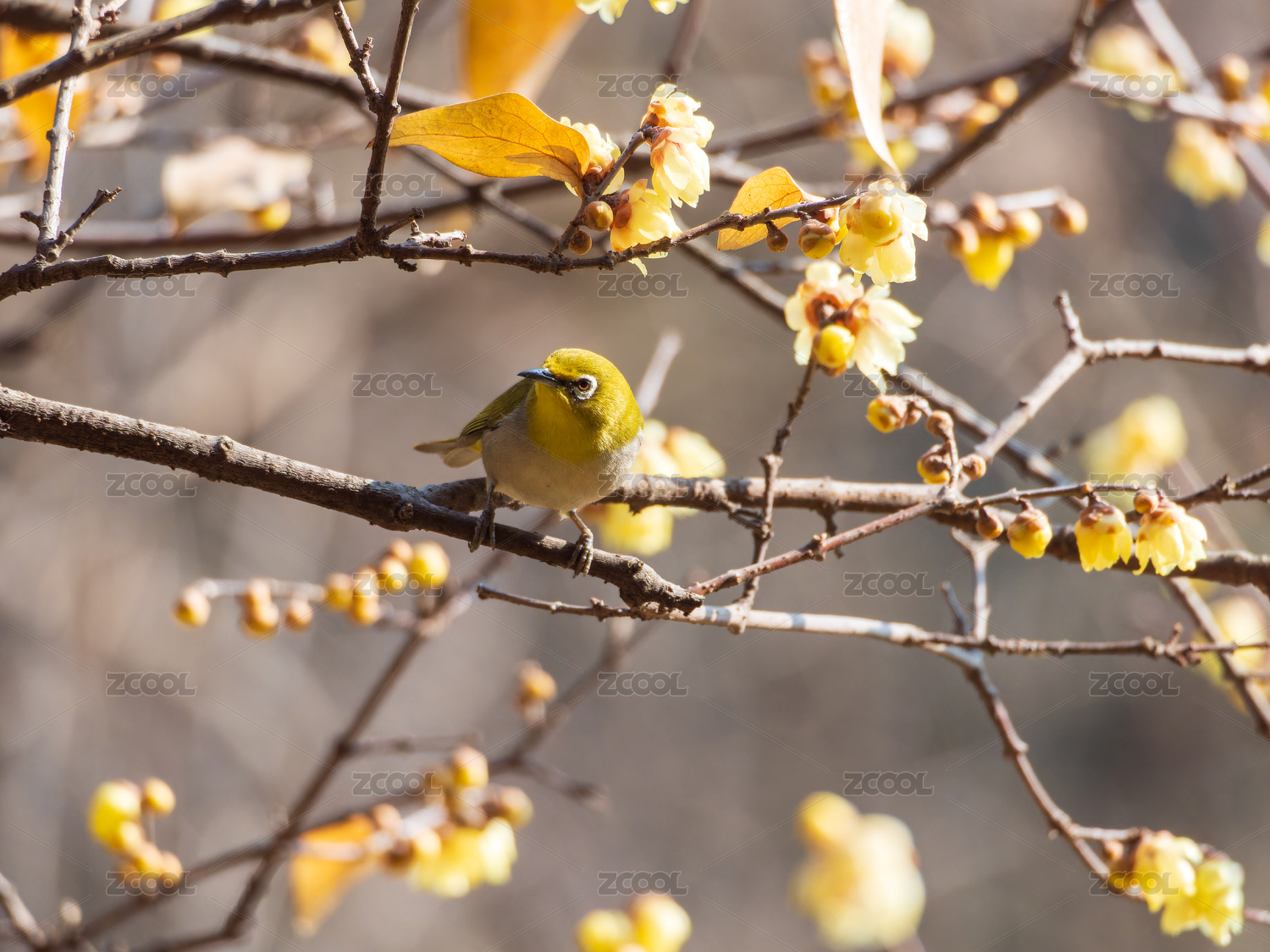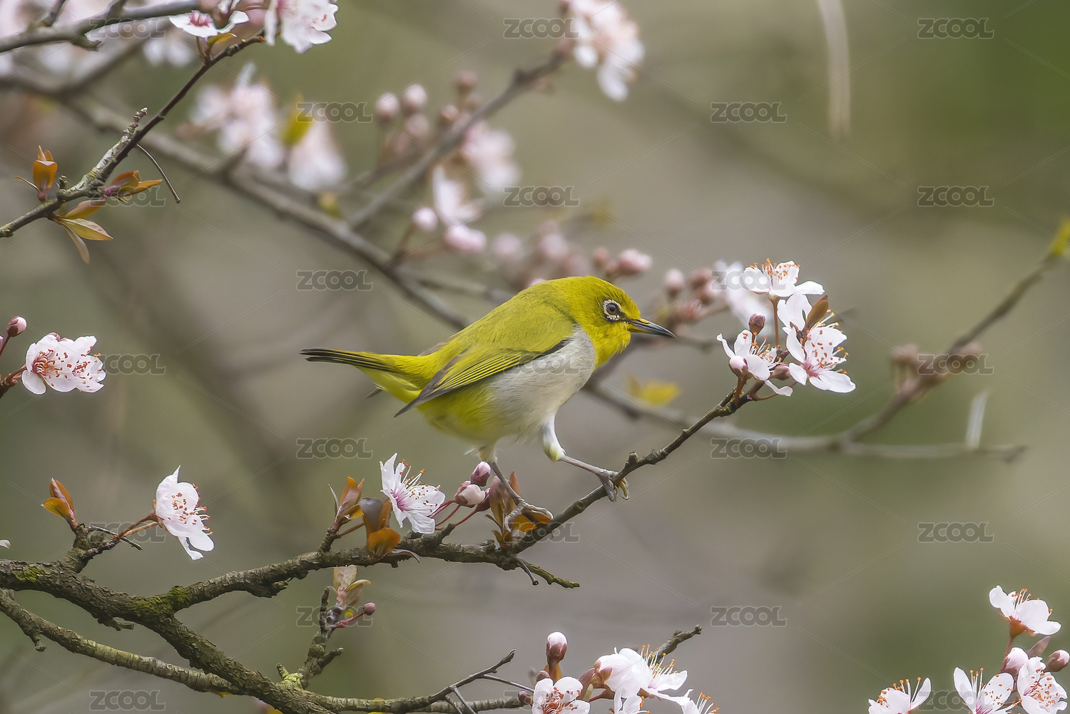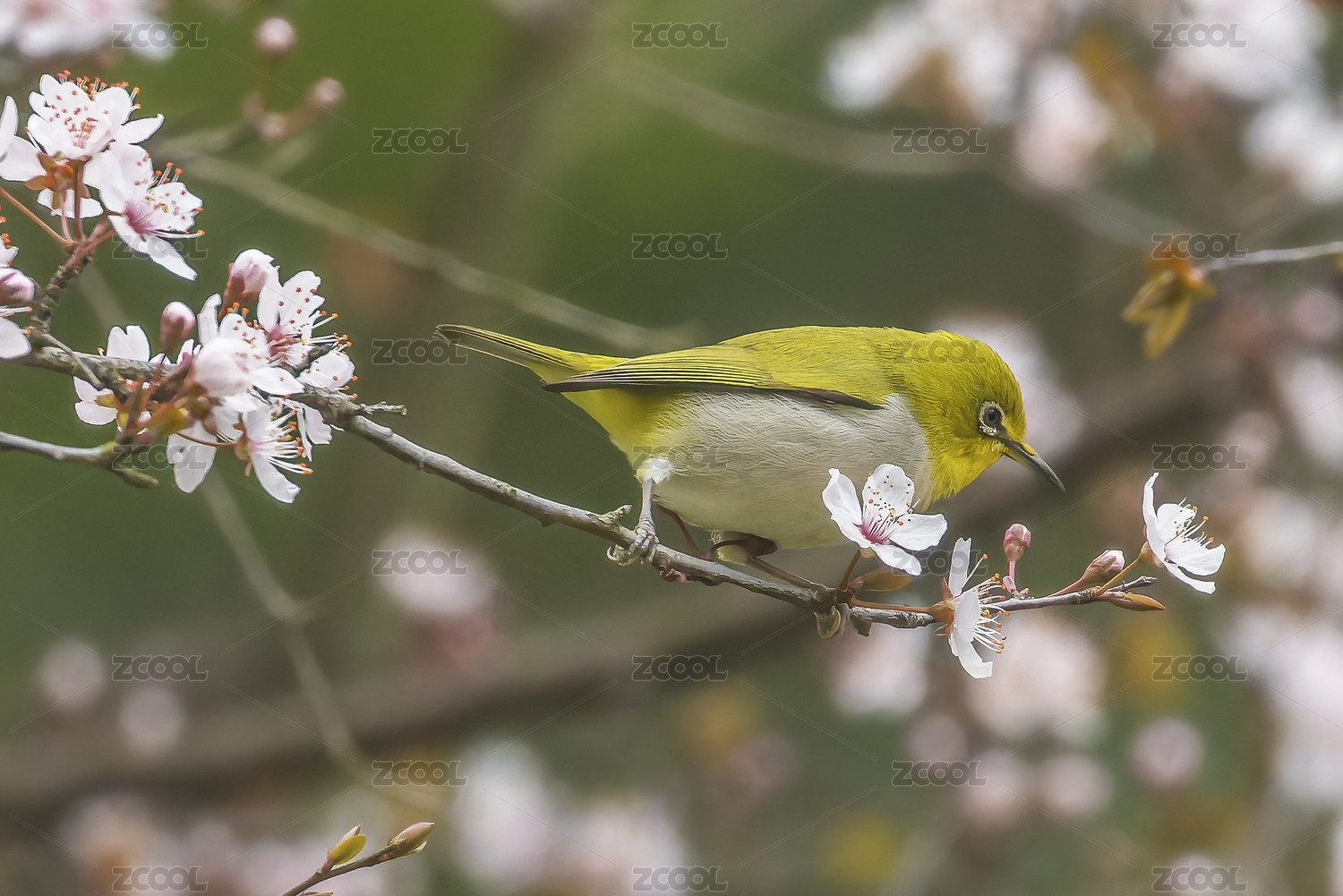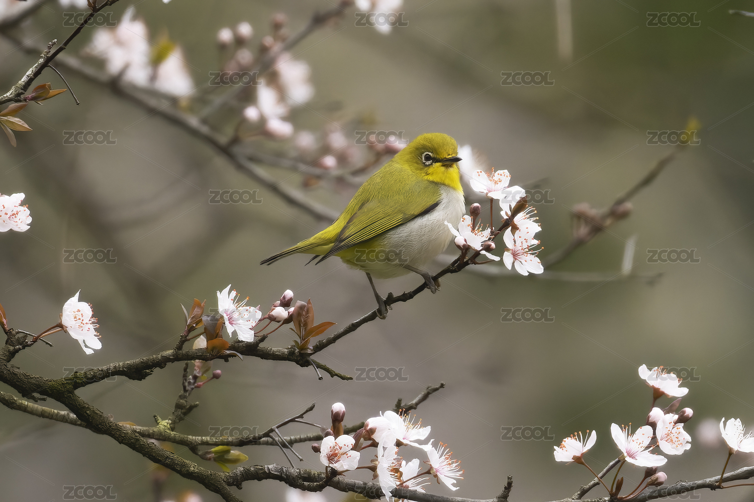 暗綠繡眼鳥在蝦米花上吮食花蜜