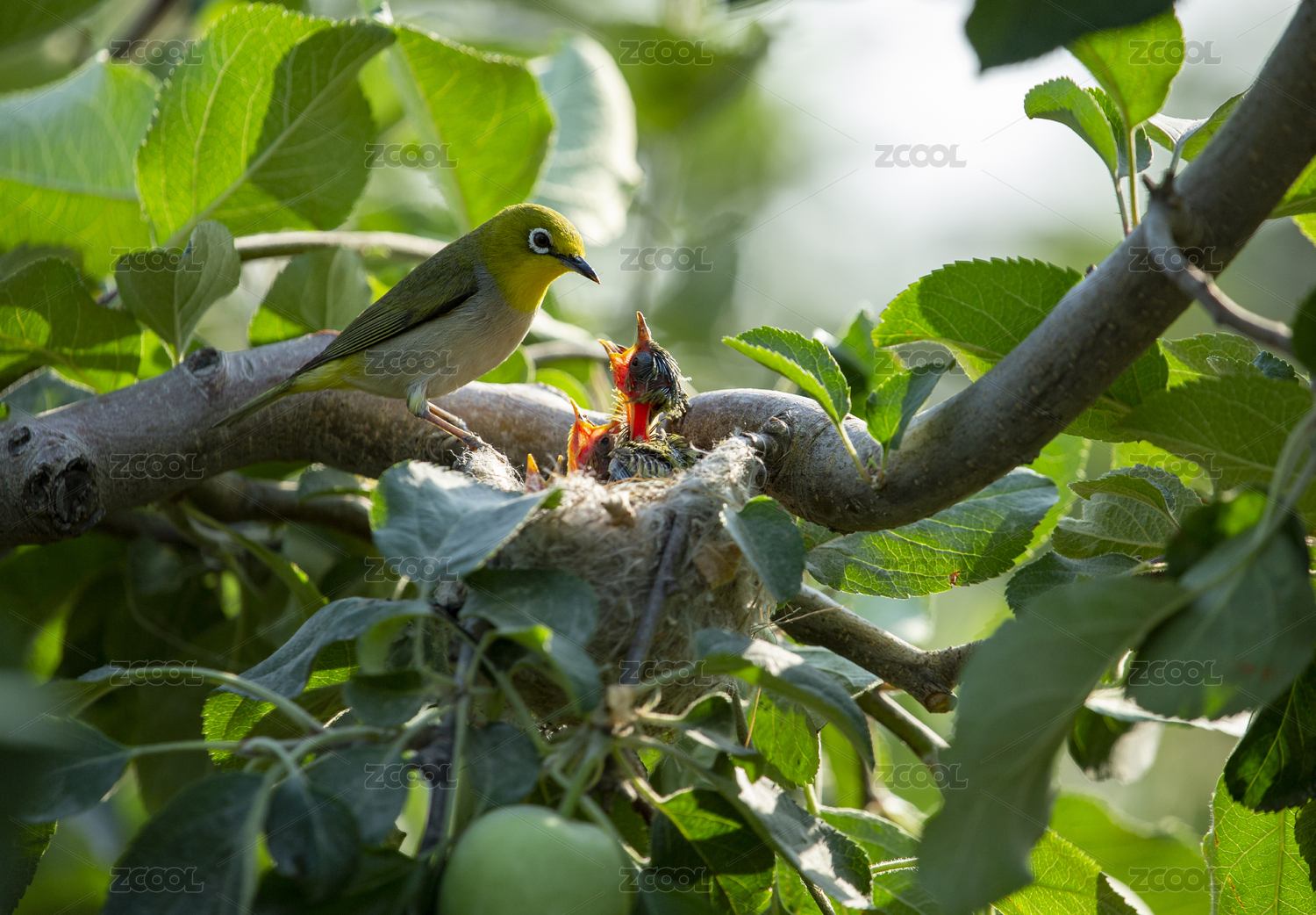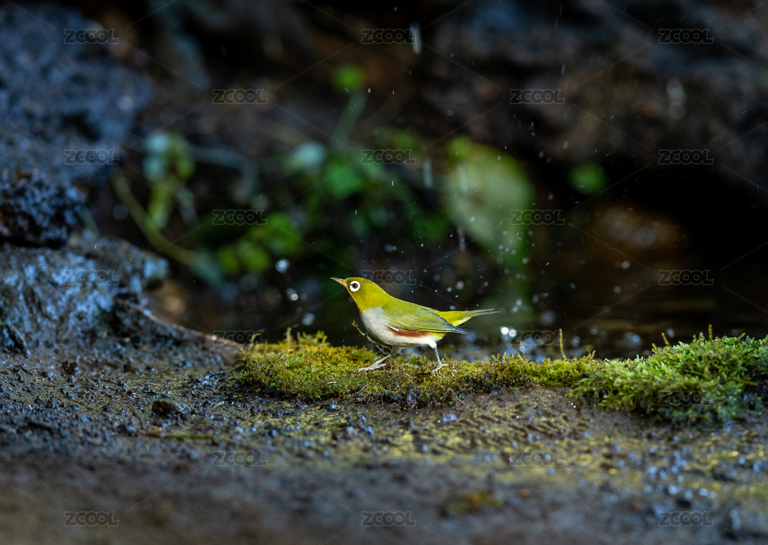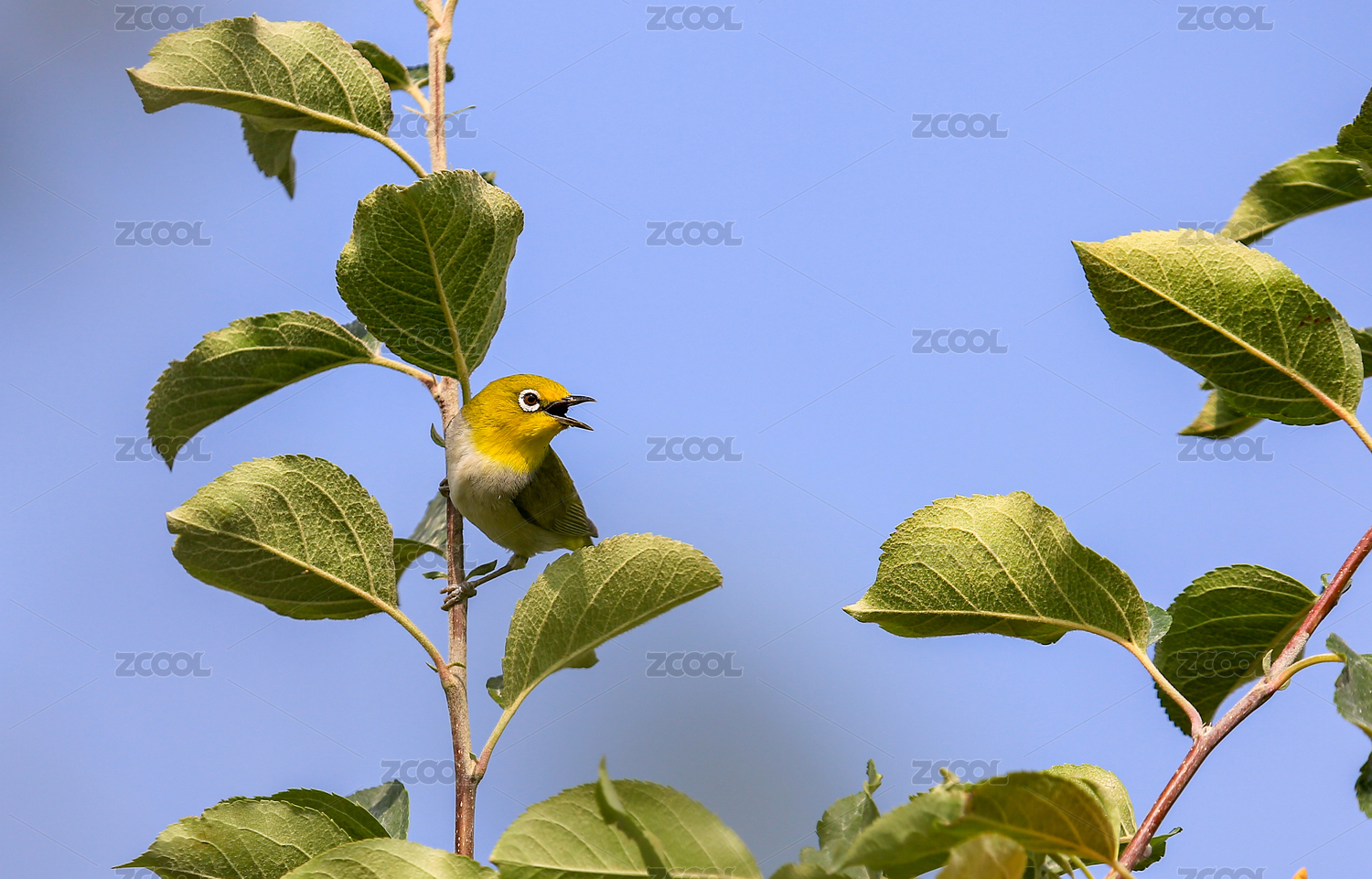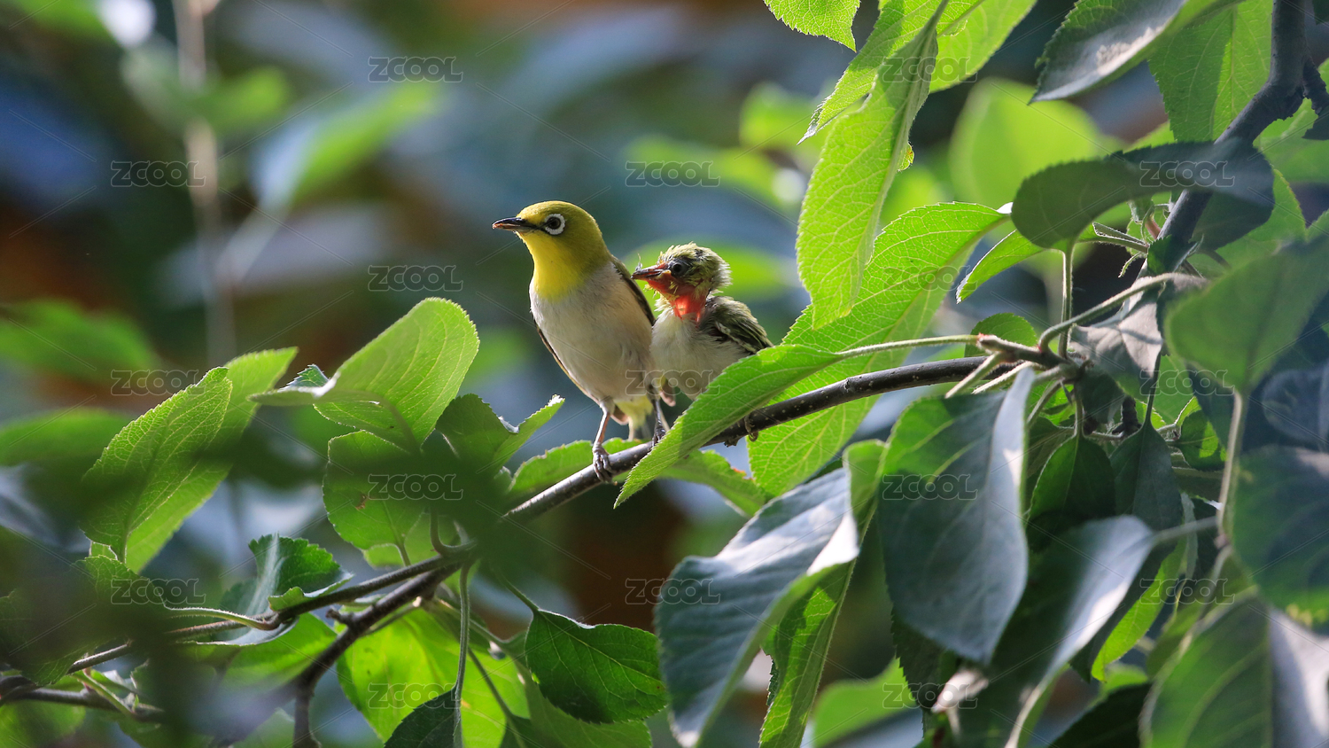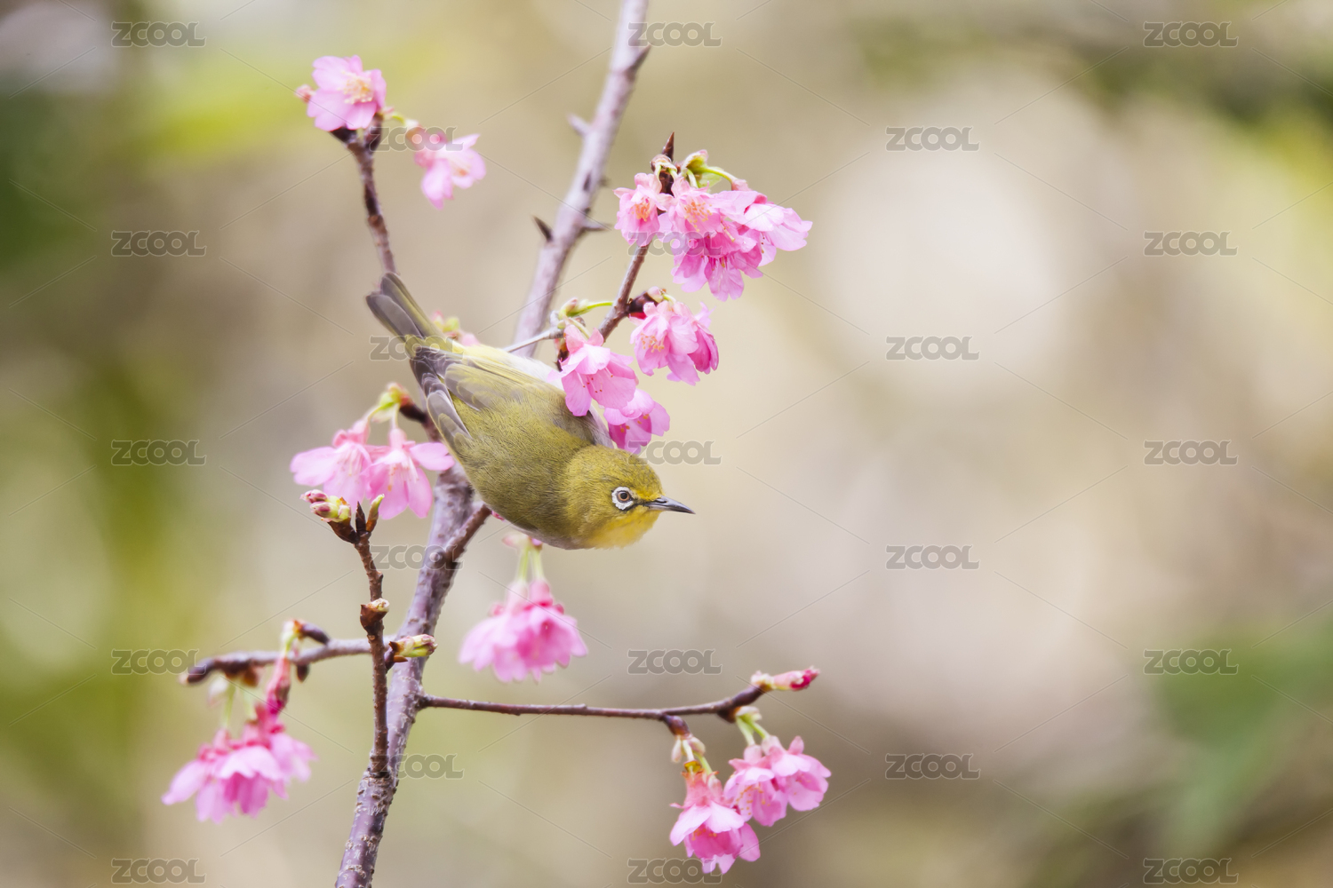 暗綠繡眼鳥在蝦米花上吮食花蜜