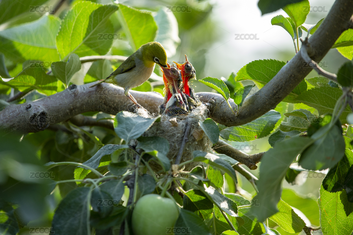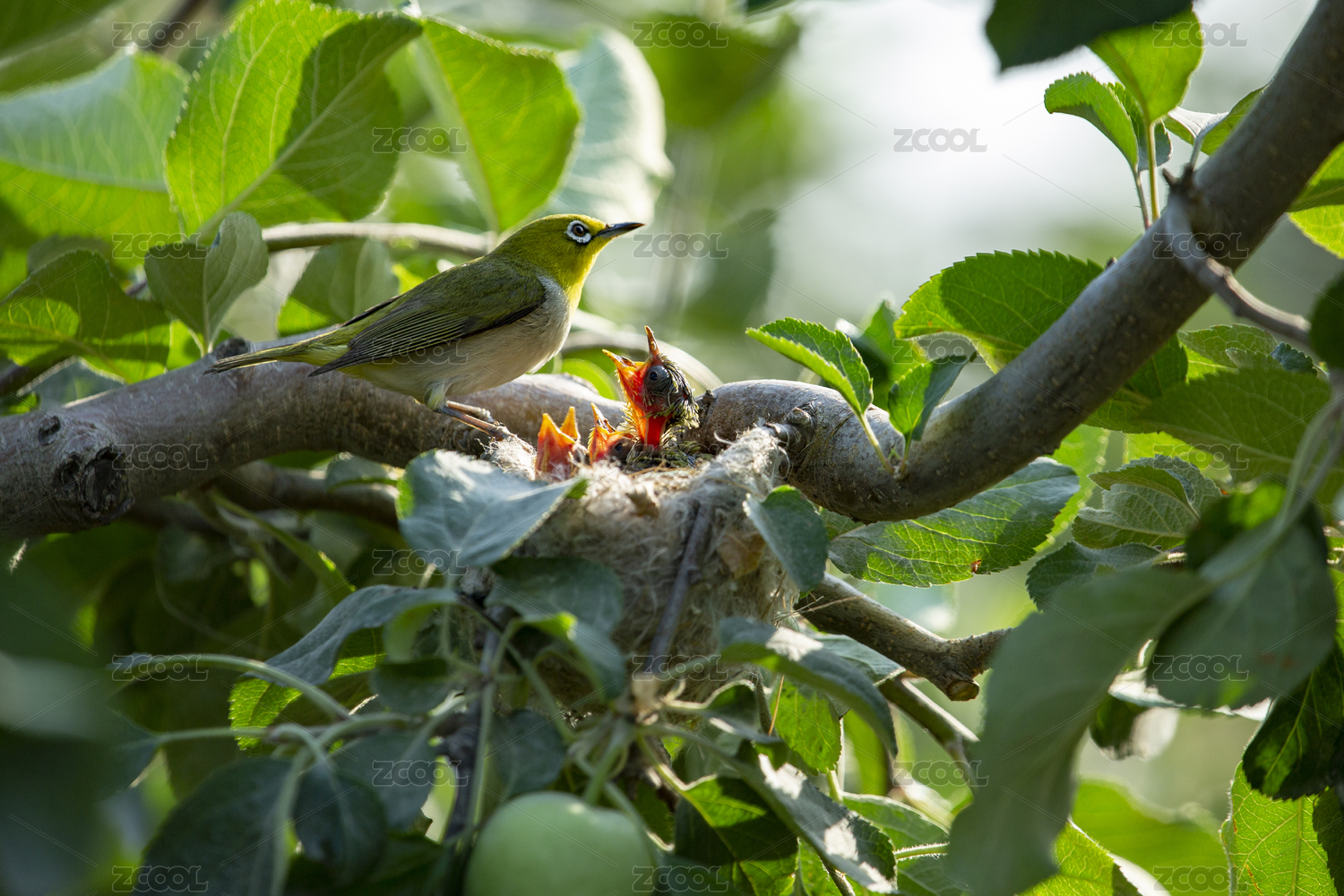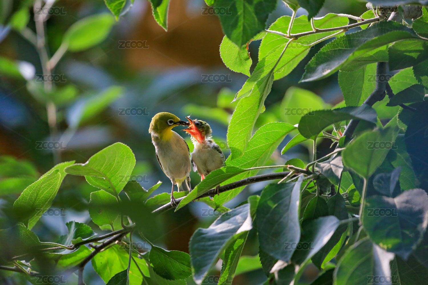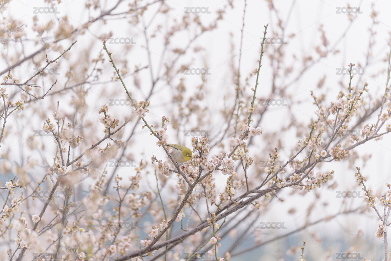 暗綠繡眼鳥在蝦米花上吮食花蜜