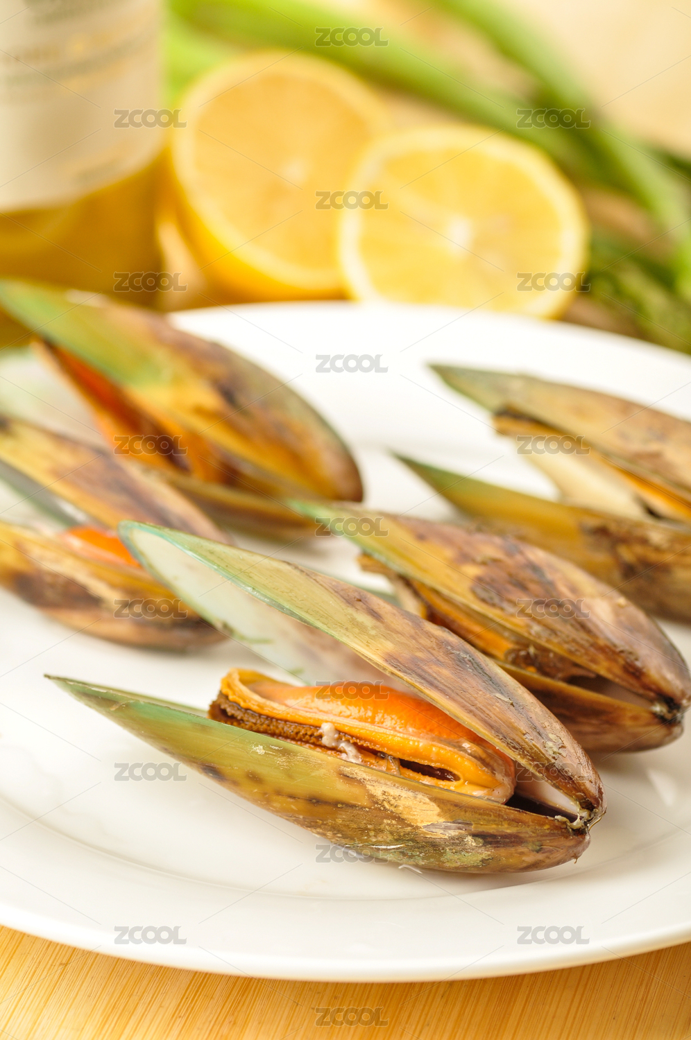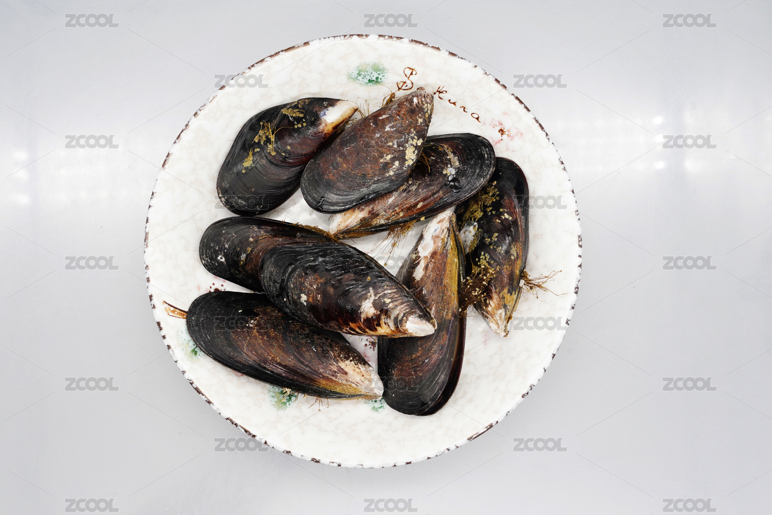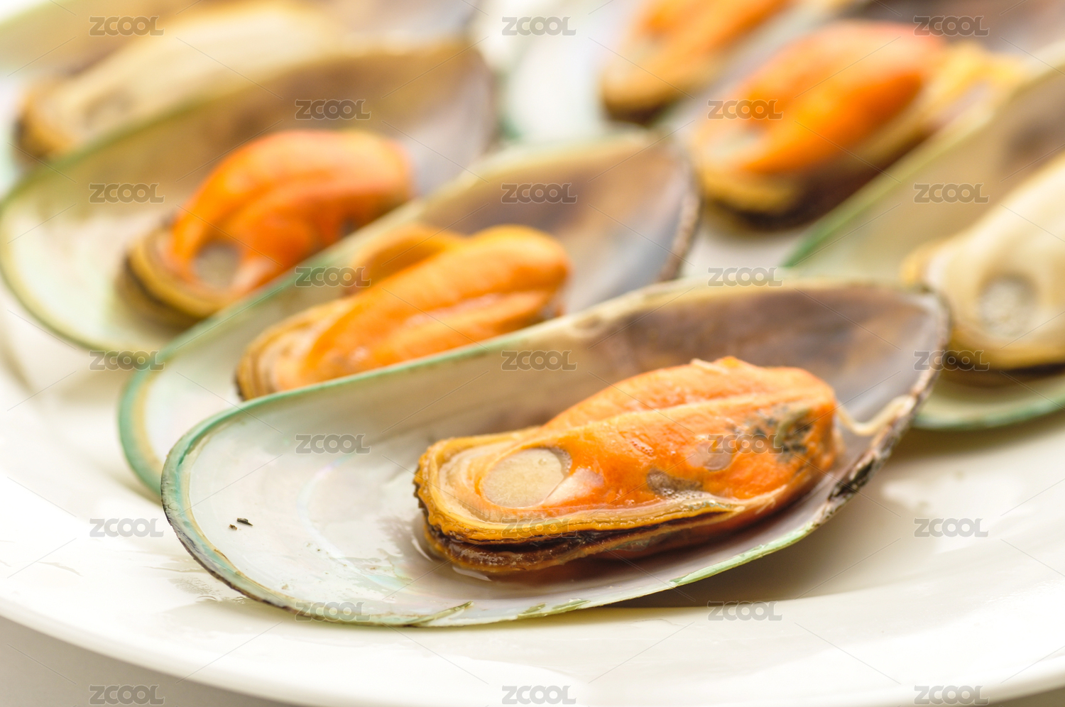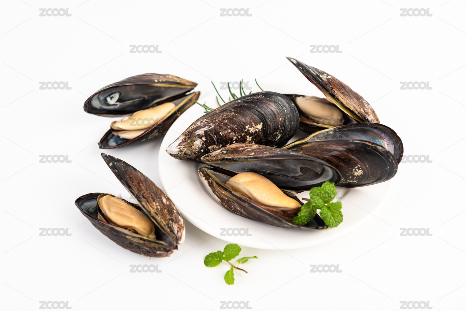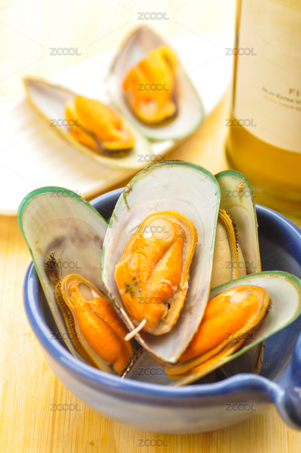 裝在盤子里的餐飲食材海鮮貽貝