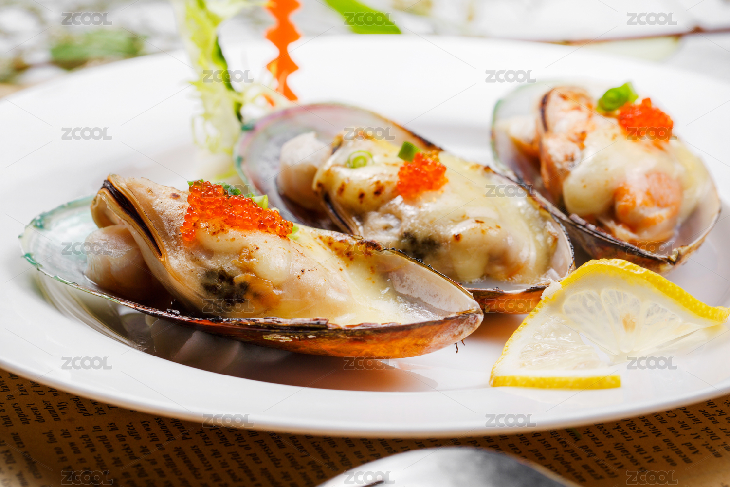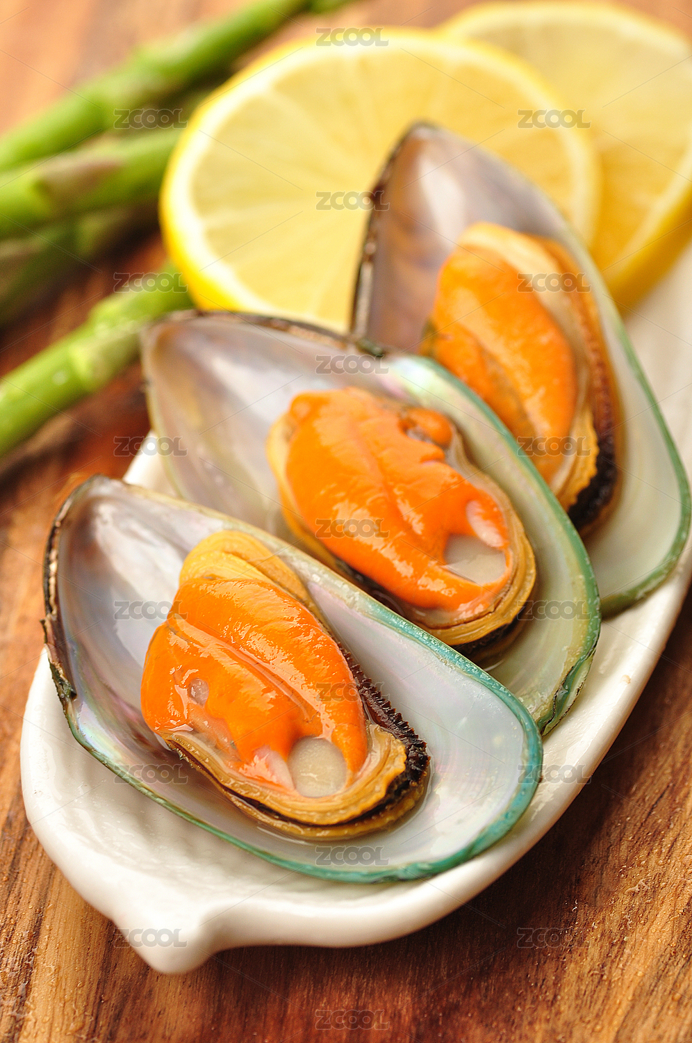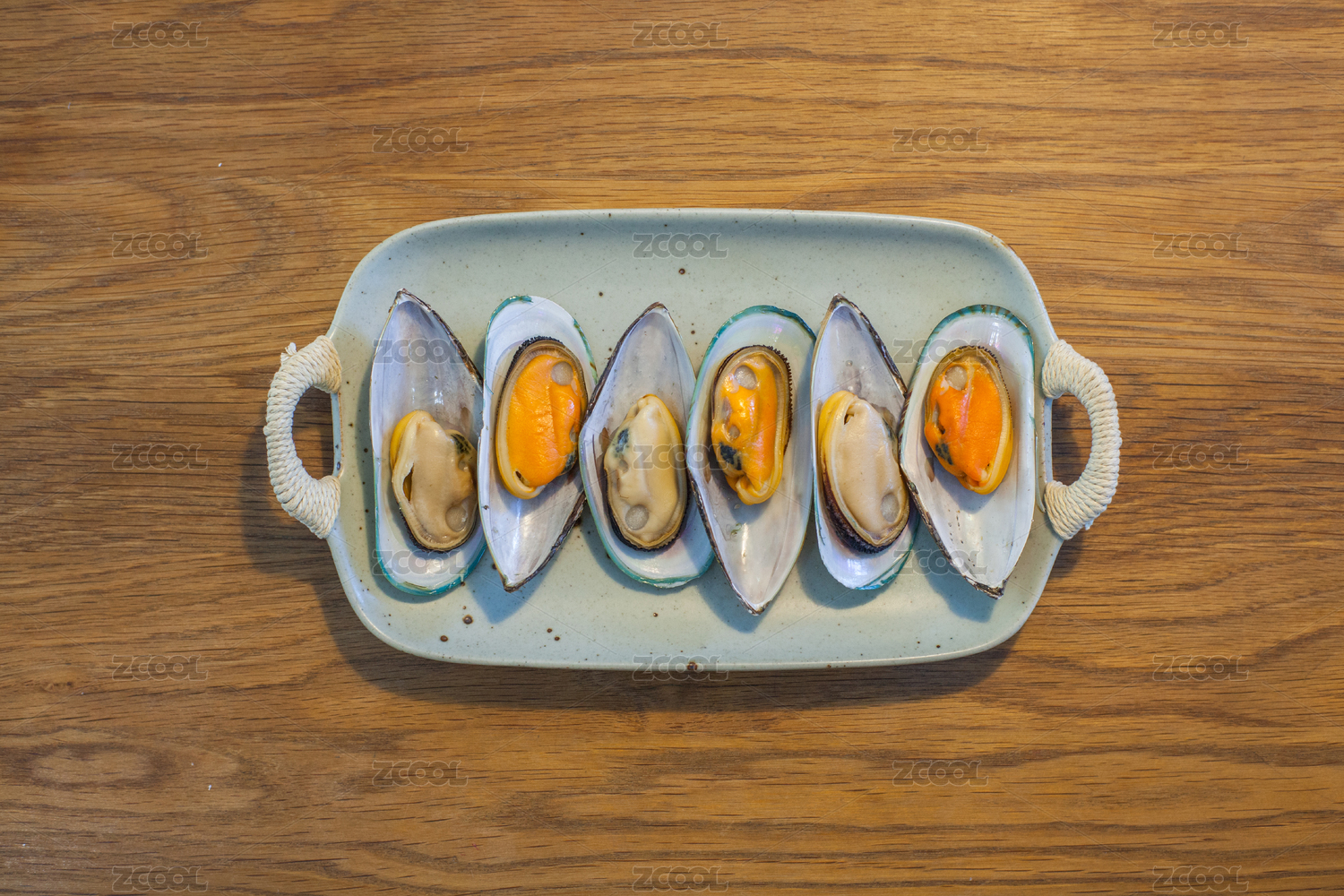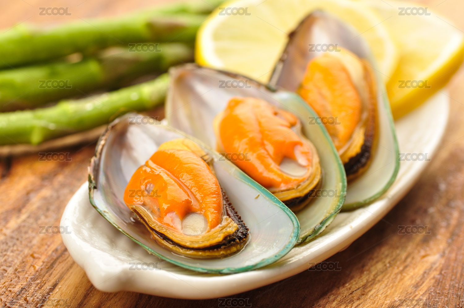 裝在盤子里的餐飲食材海鮮貽貝