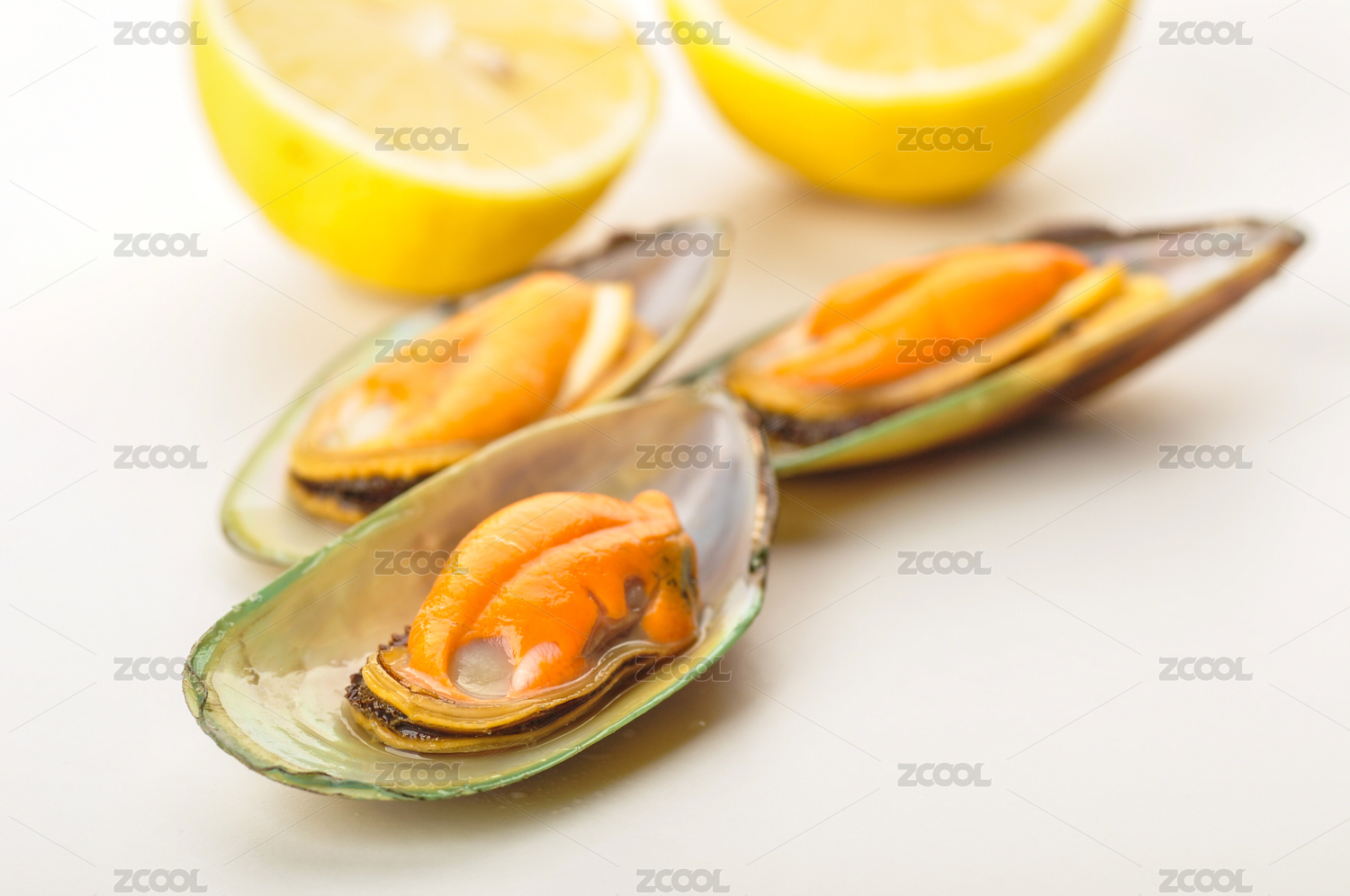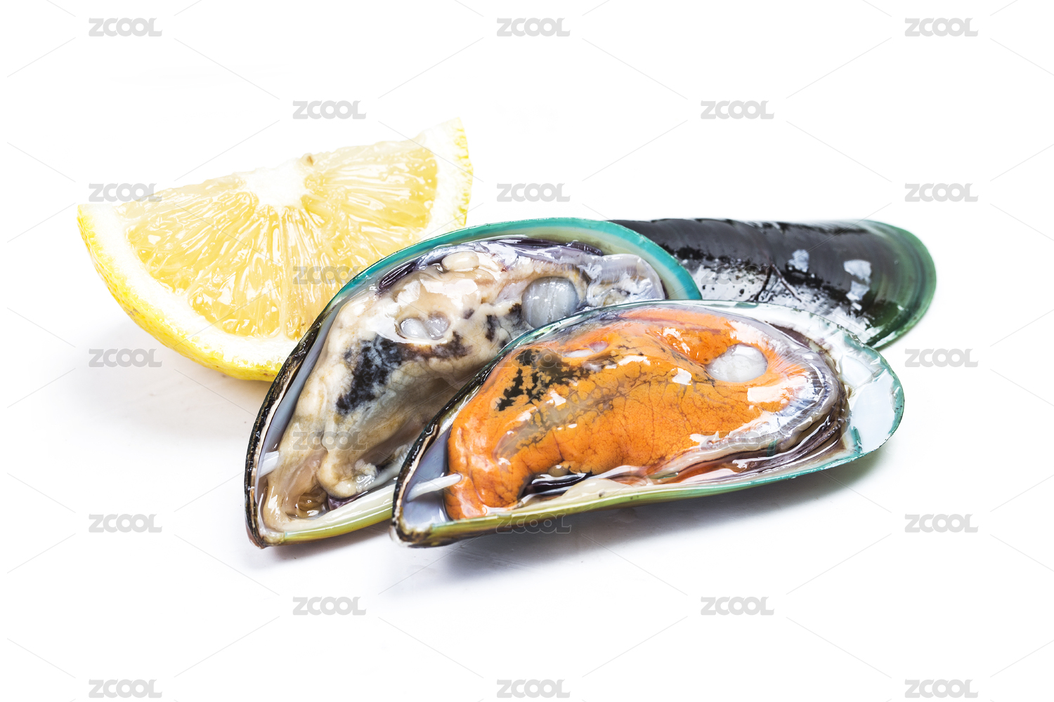 白色背景下的青口貽貝