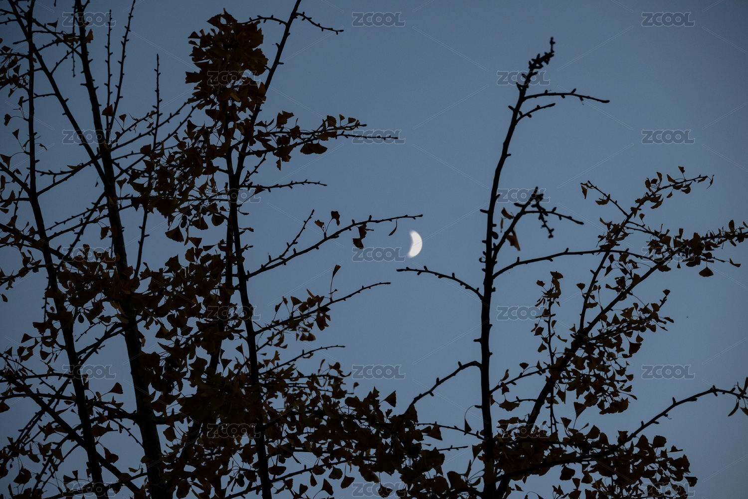 月牙與樹枝剪影