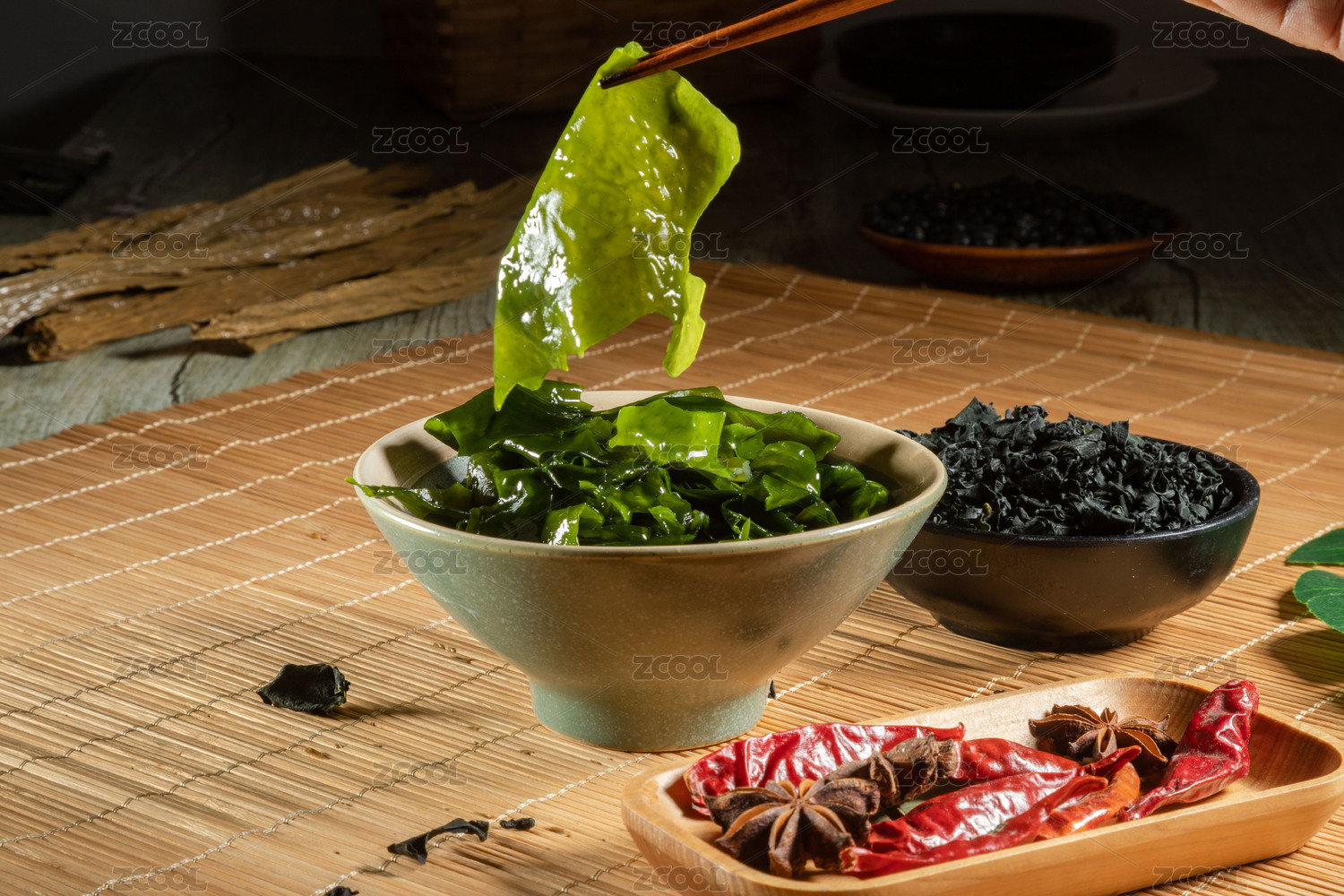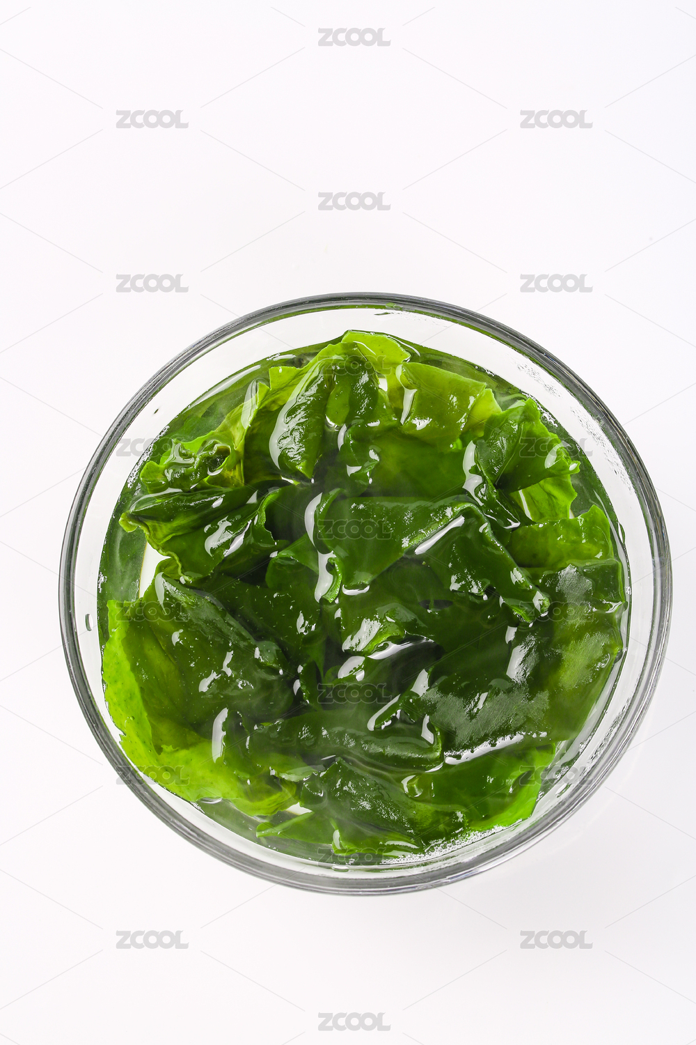 桌面上的碗里的泡發(fā)的裙帶菜
