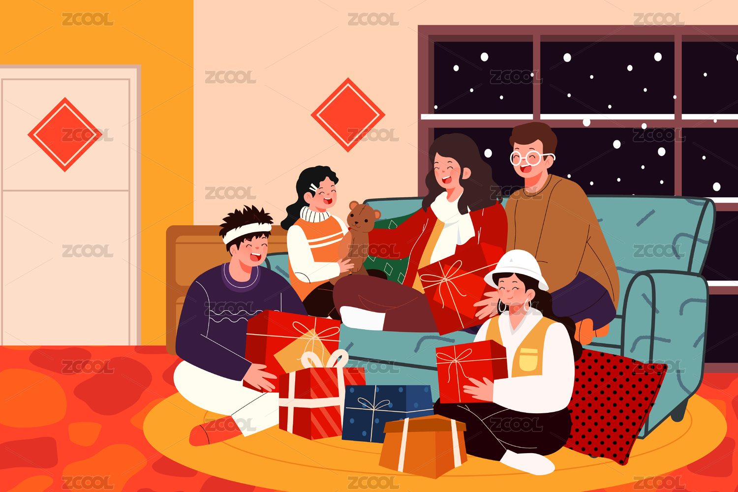 家人朋友跨年矢量插畫