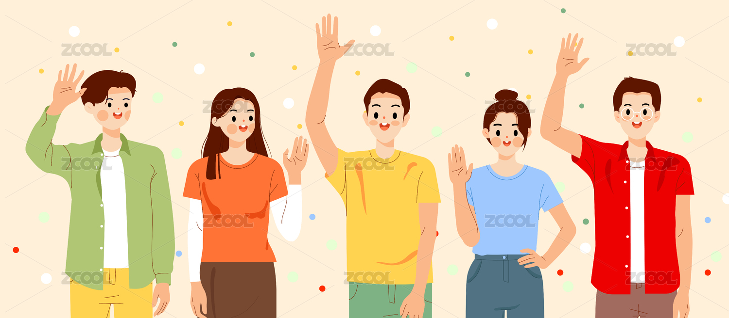 揮手打招呼的快樂朋友們