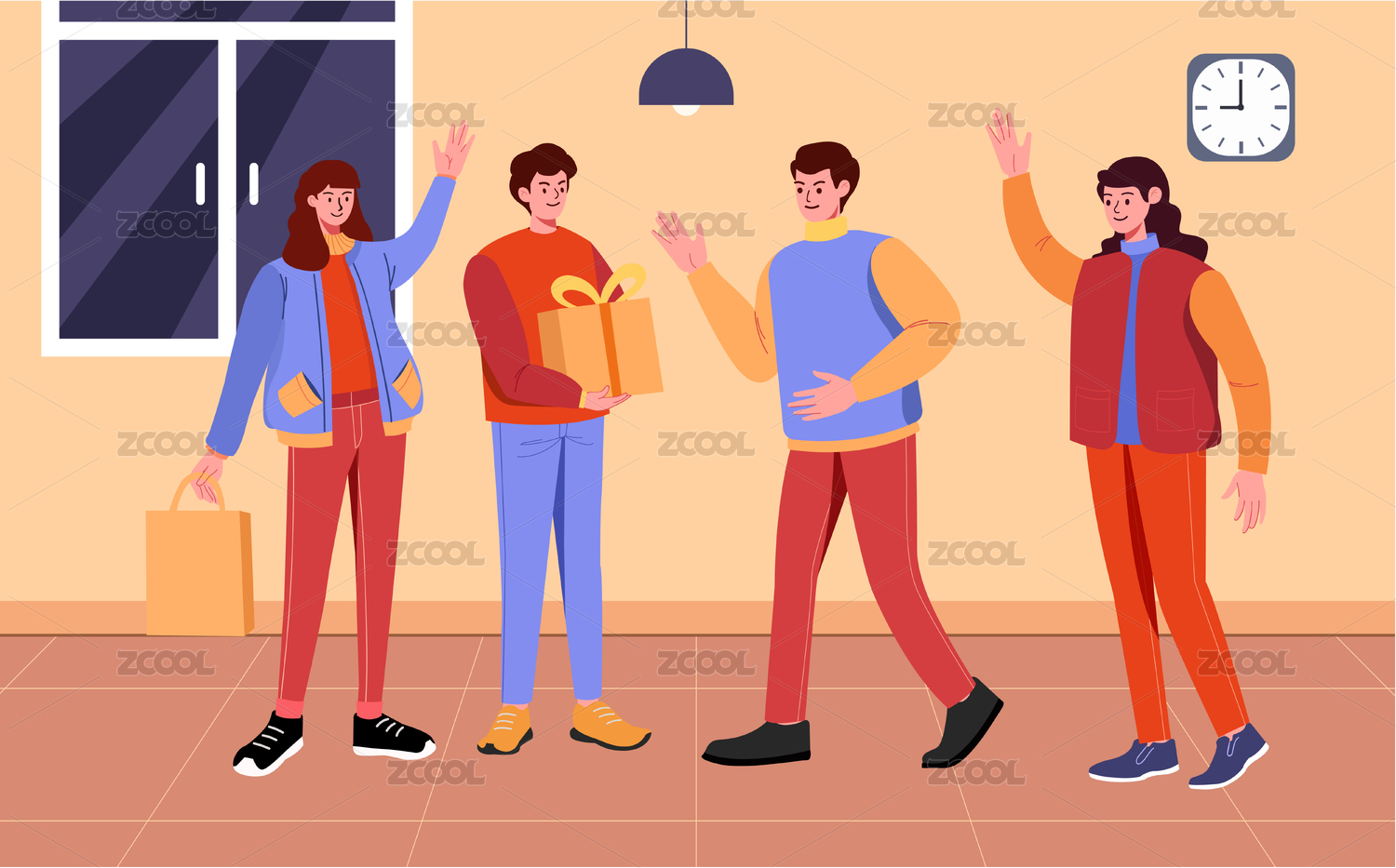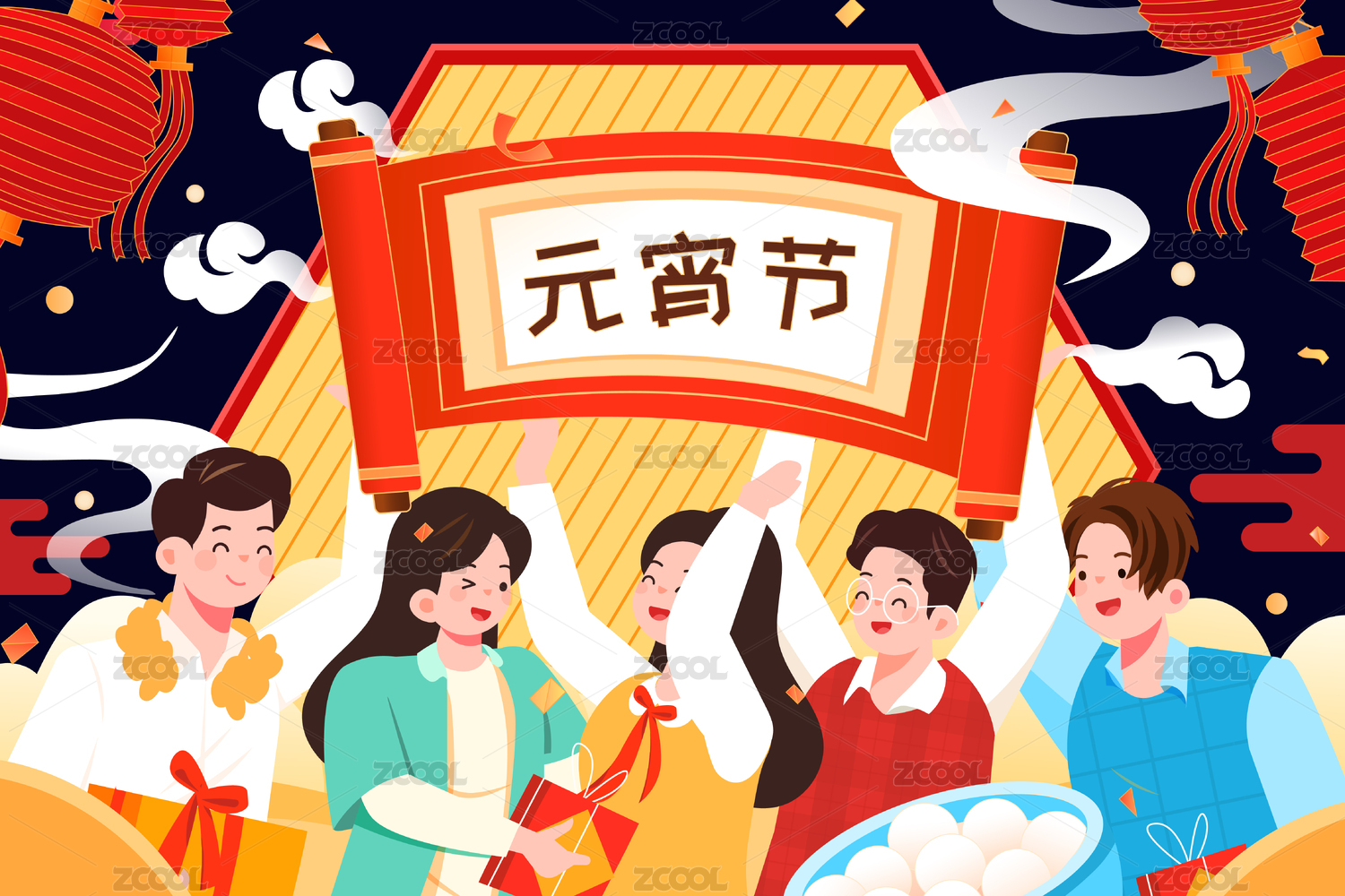 元宵節(jié)朋友歡呼矢量插畫