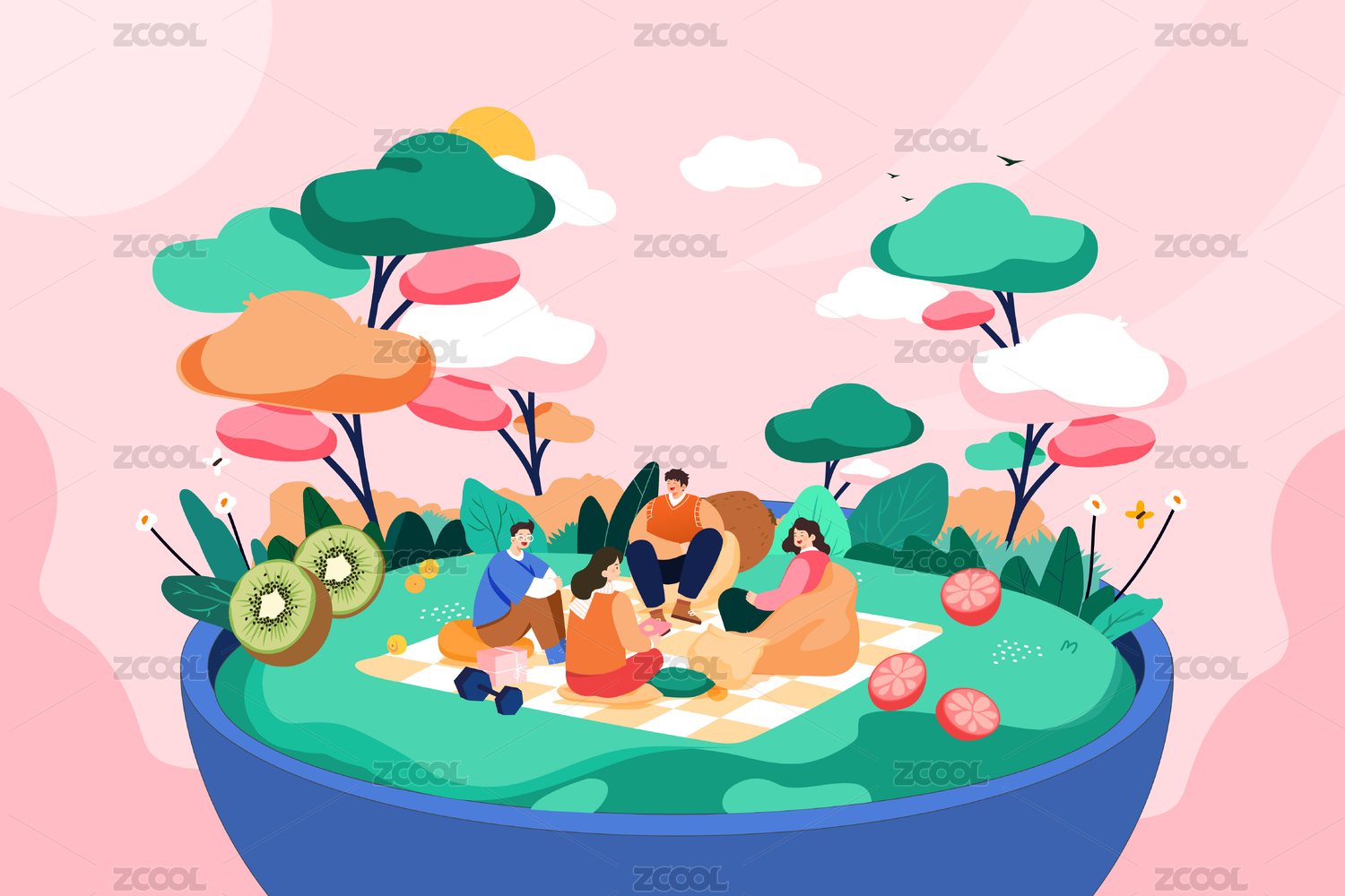 春季朋友聚會(huì)矢量插畫