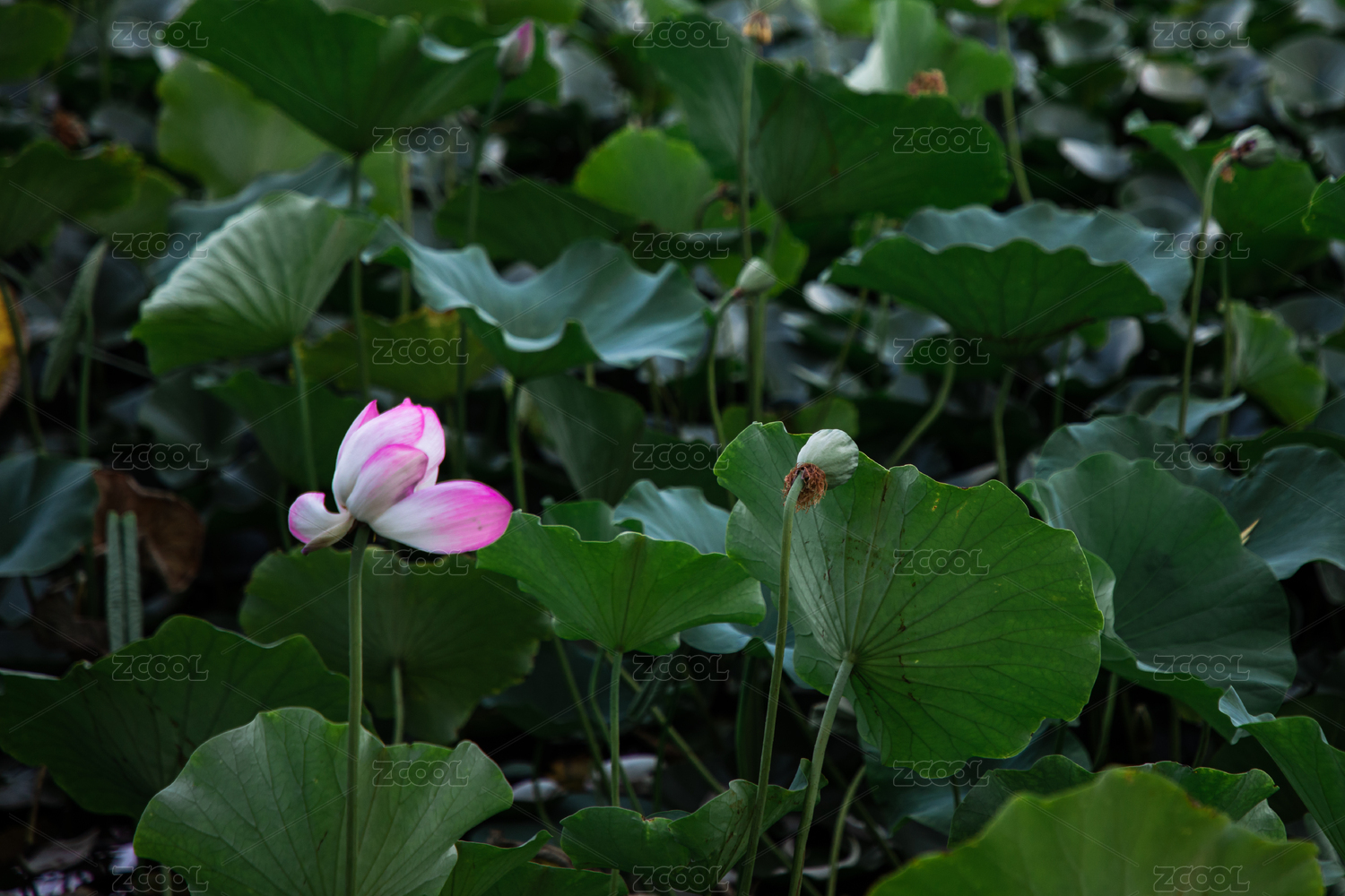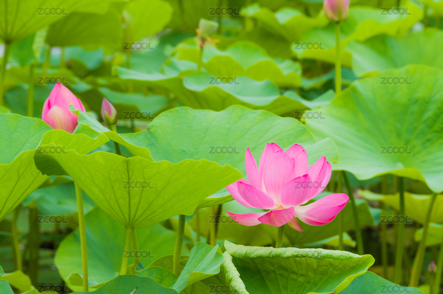綠色荷花池中船上的孩子創(chuàng)意插畫