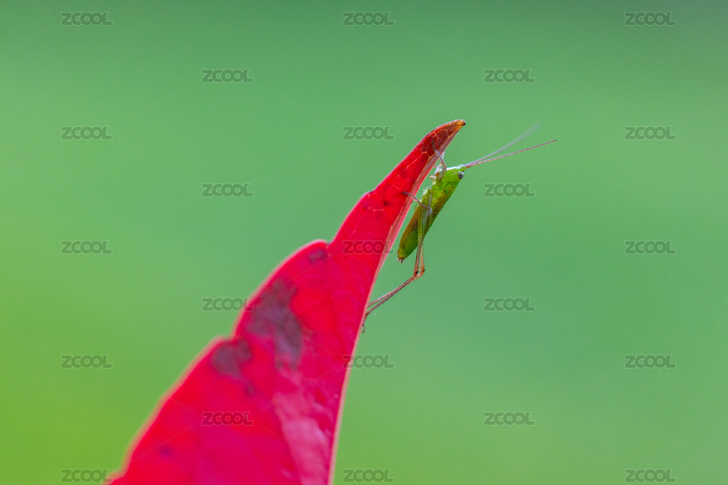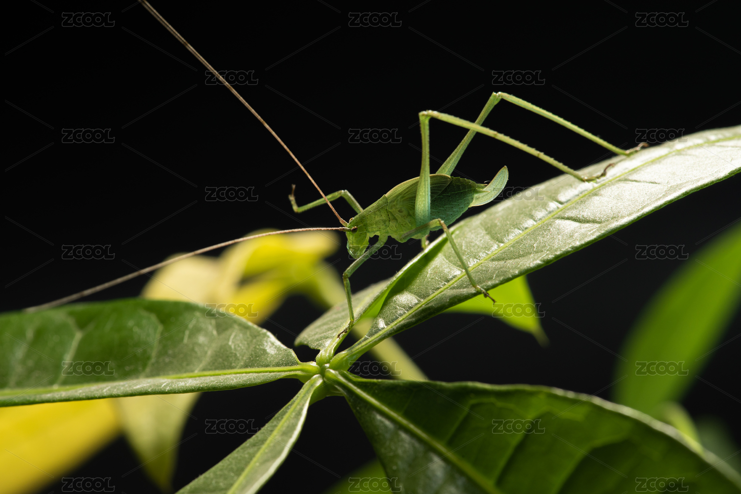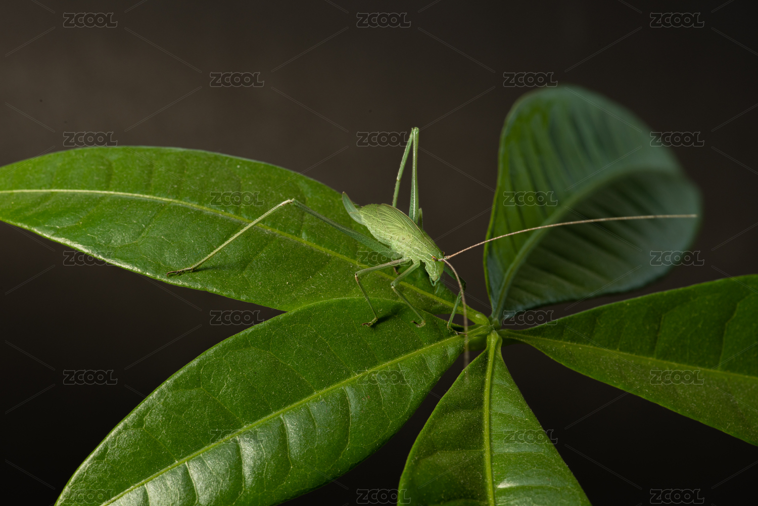 一只昆蟲螽斯(蟈蟈)在葉子上停留
