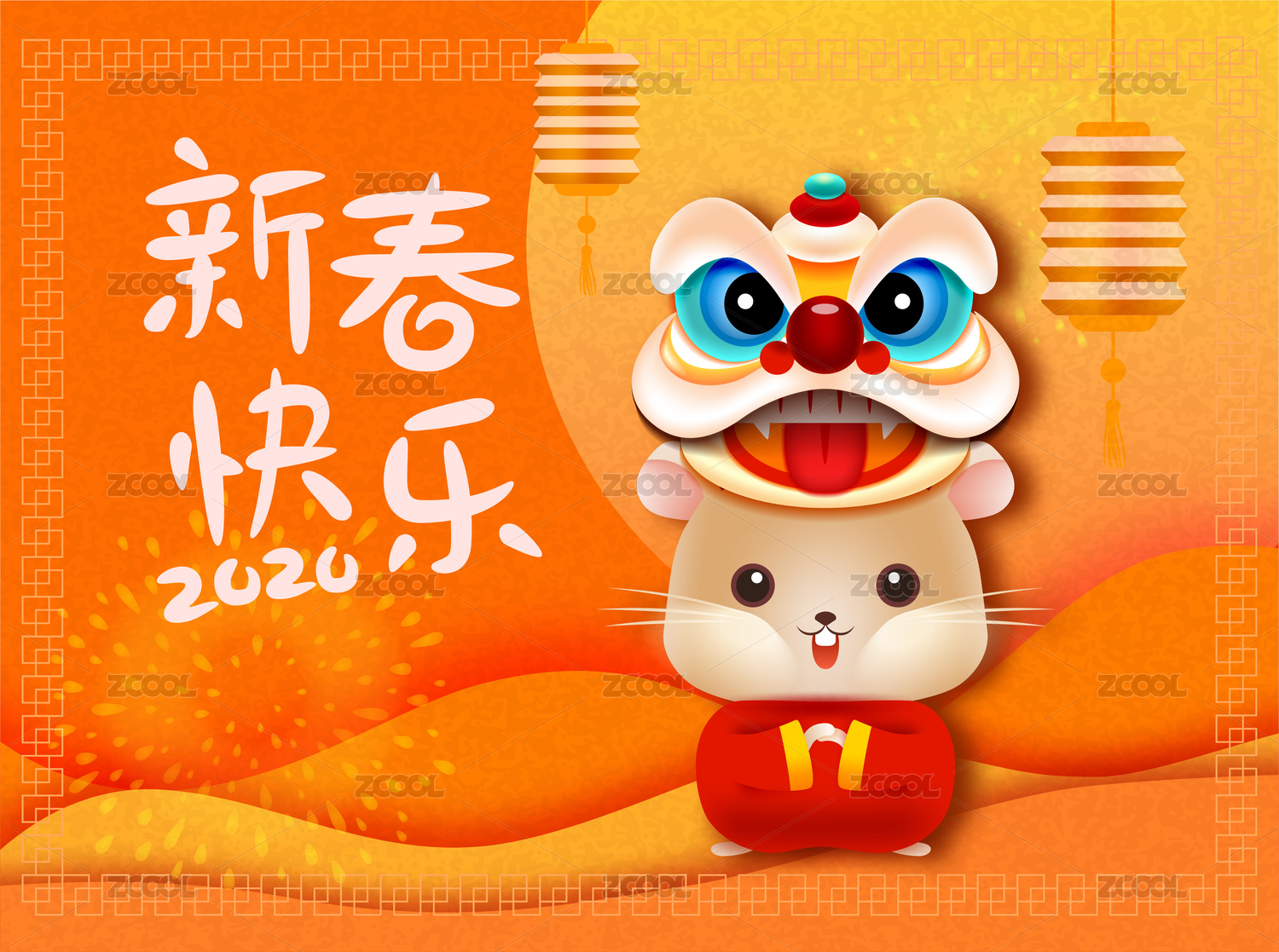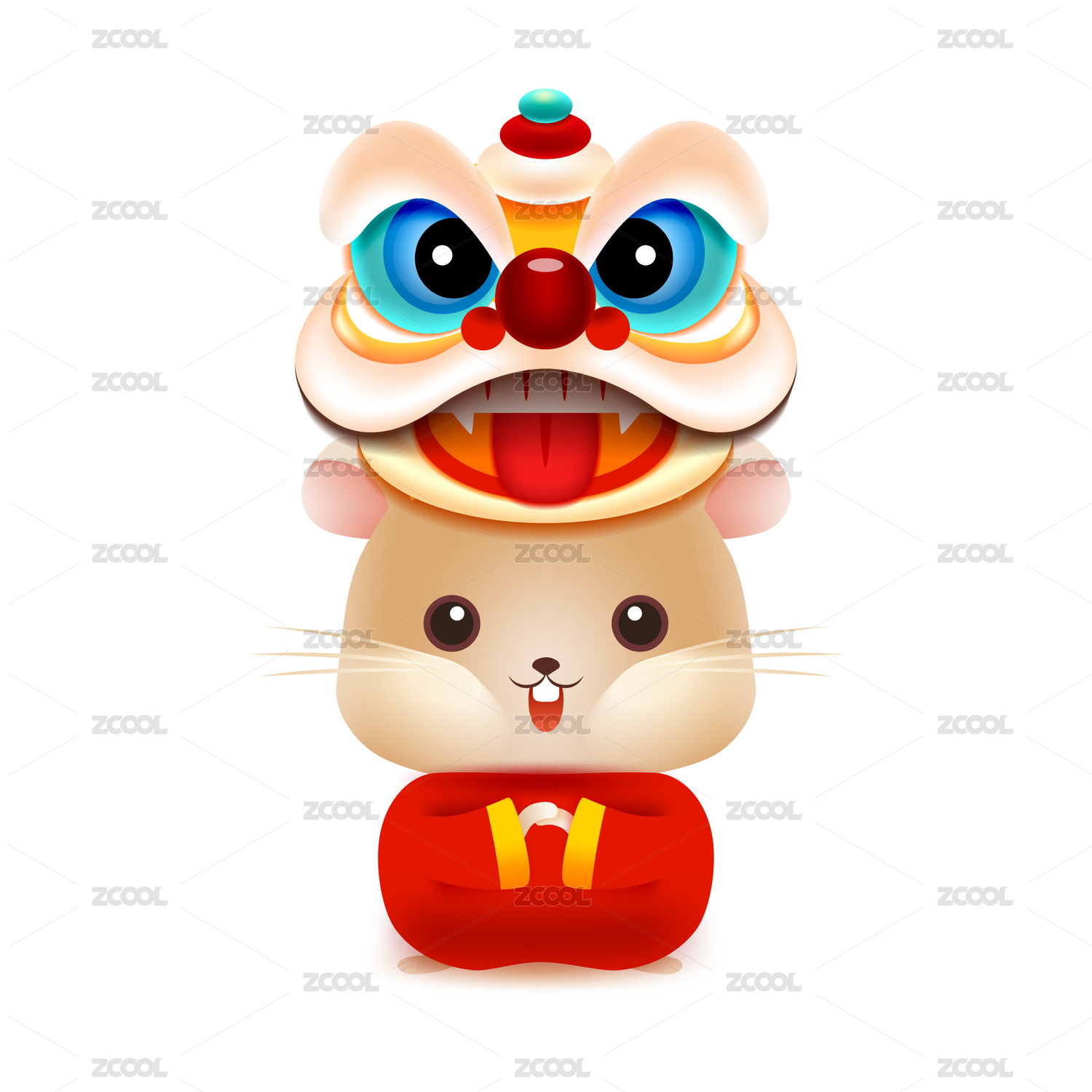2020年鼠年舞獅老鼠素材新年插畫