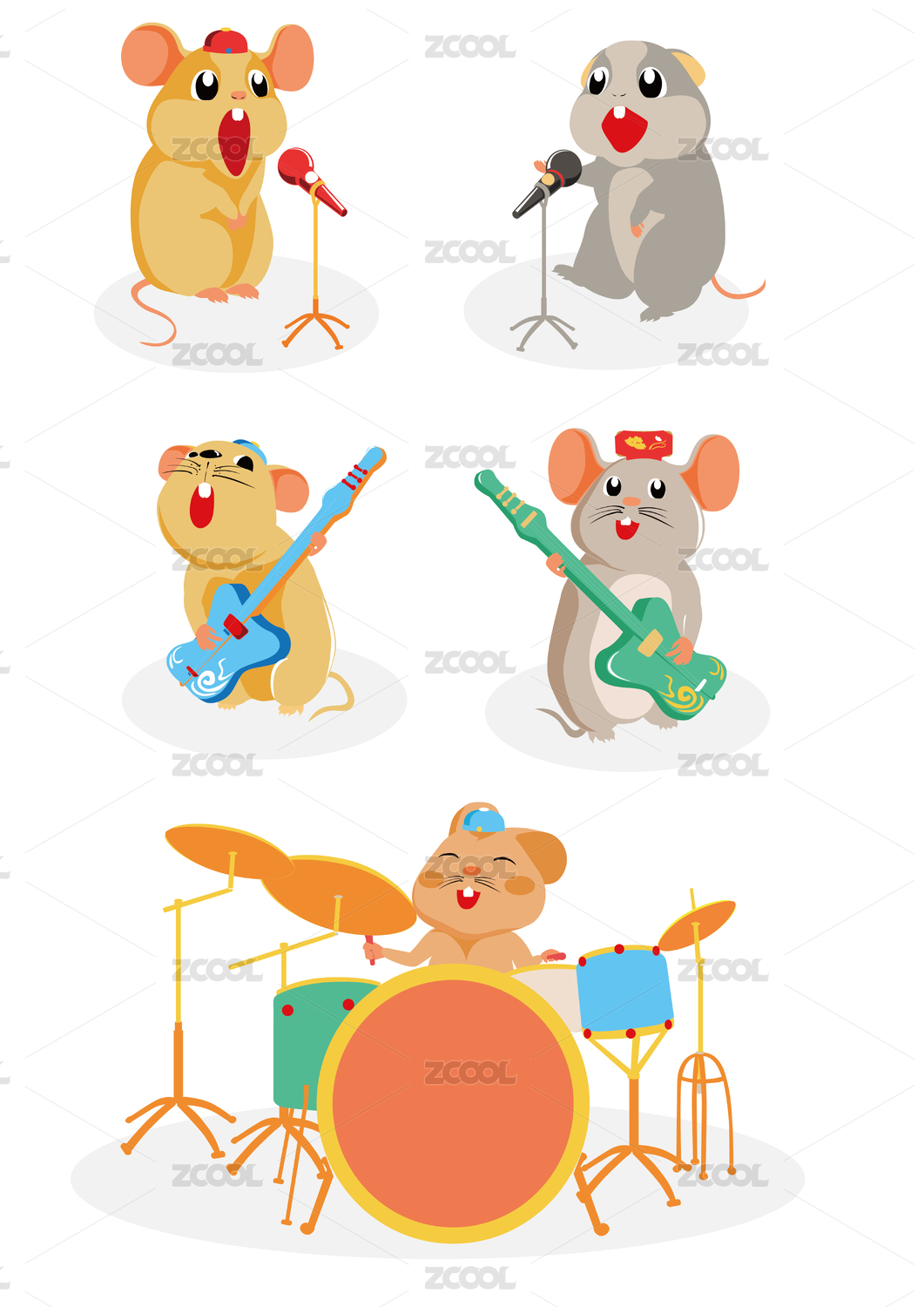 矢量插畫2020年老鼠樂隊