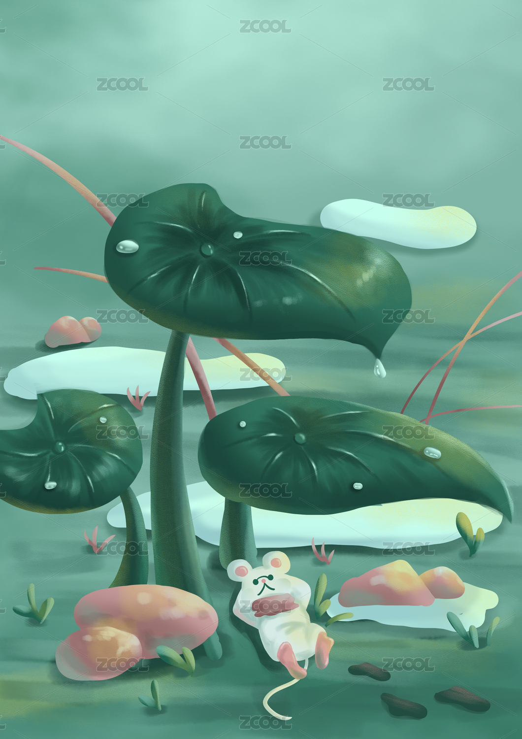 老鼠在荷葉下乘涼