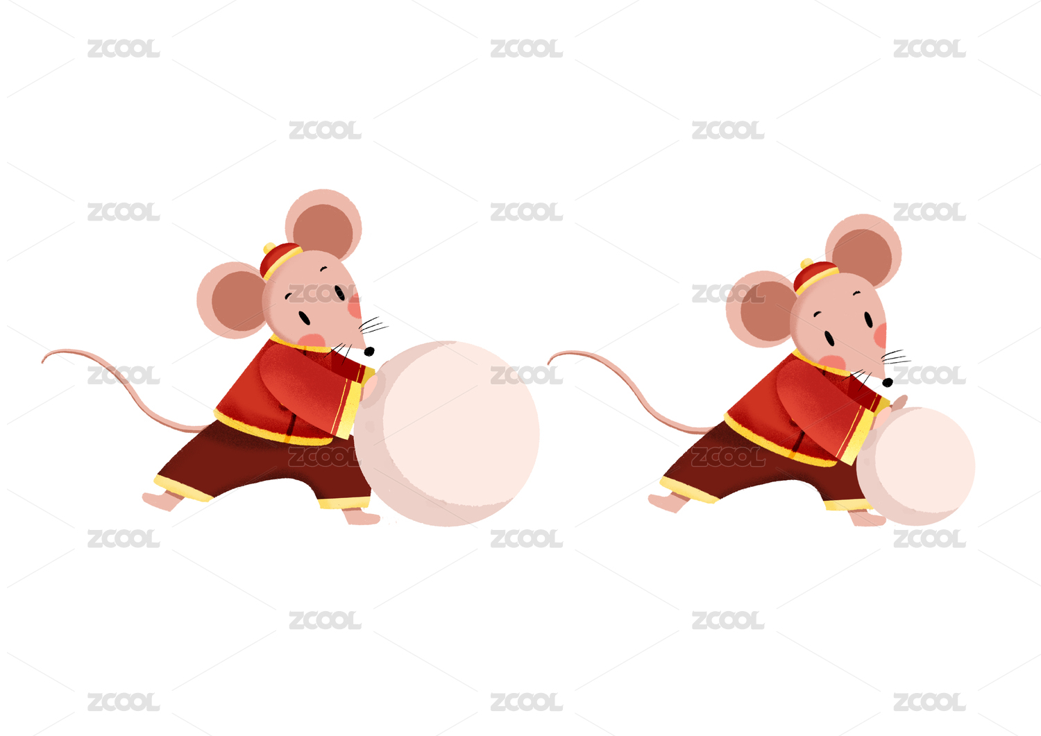 元宵佳節(jié)插畫可愛老鼠做元宵