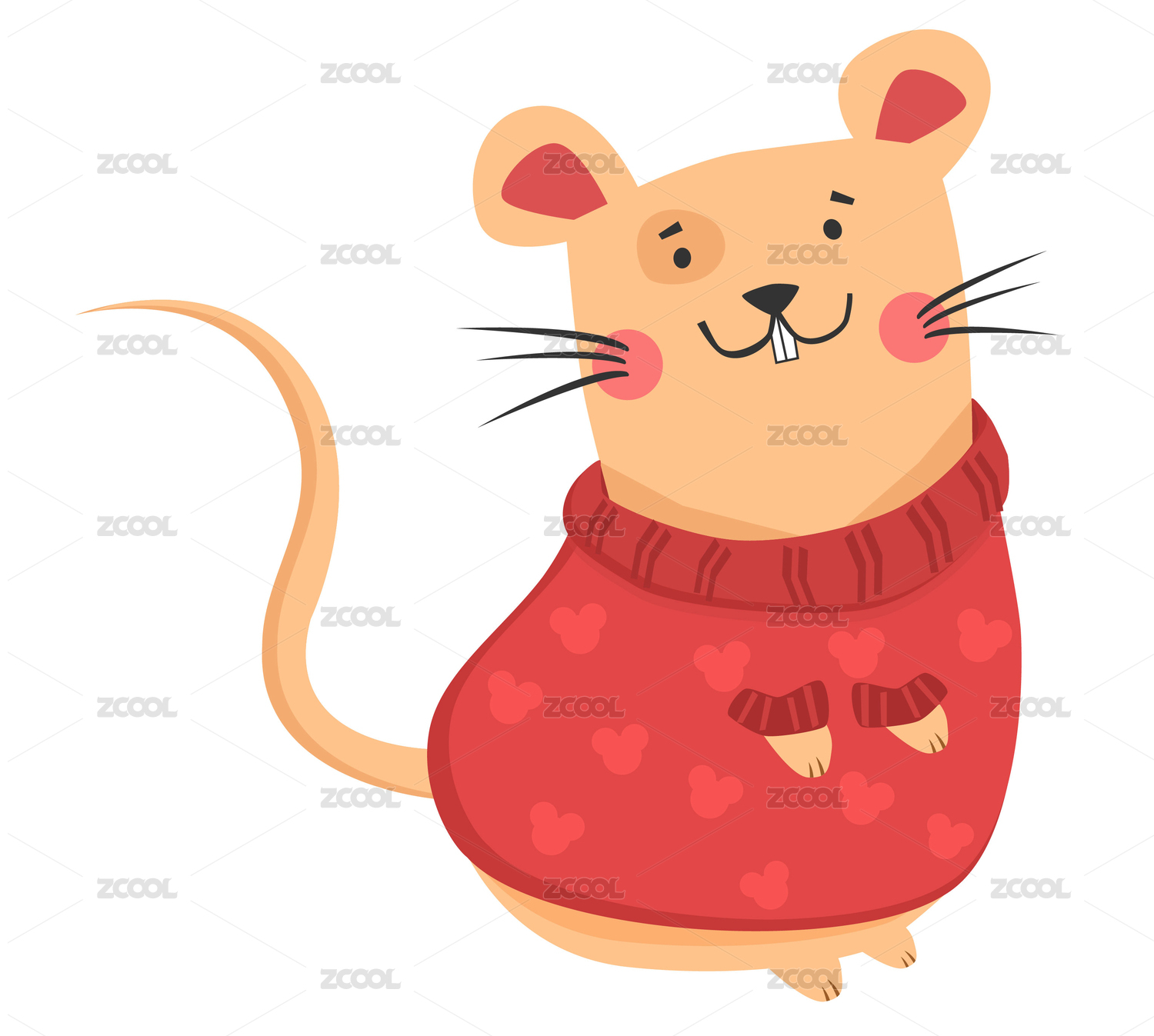 扁平風格擬人化老鼠新年矢量插畫