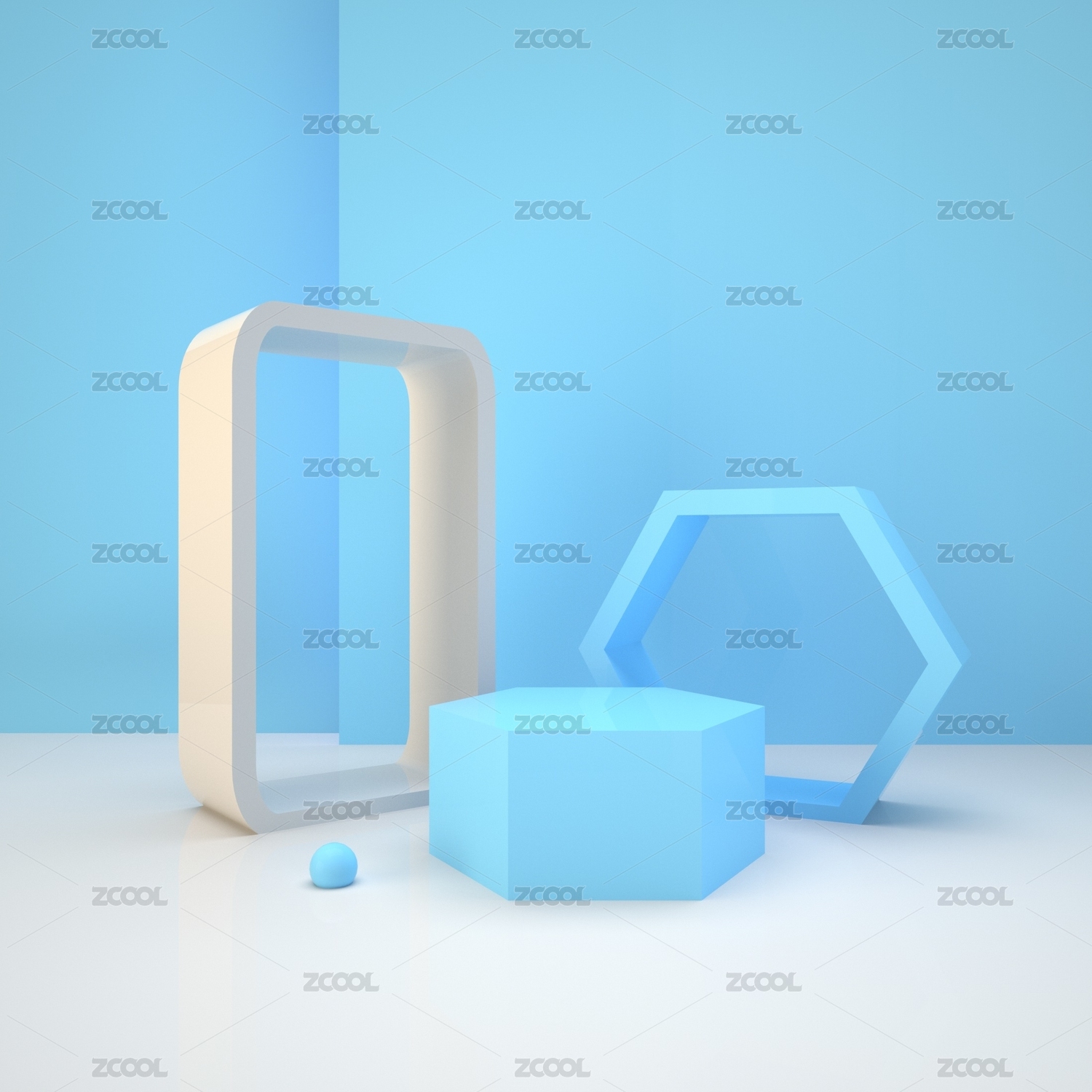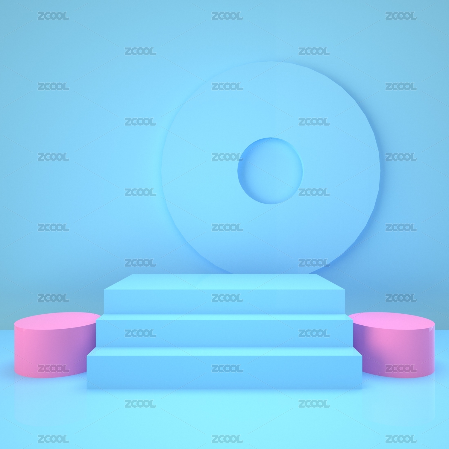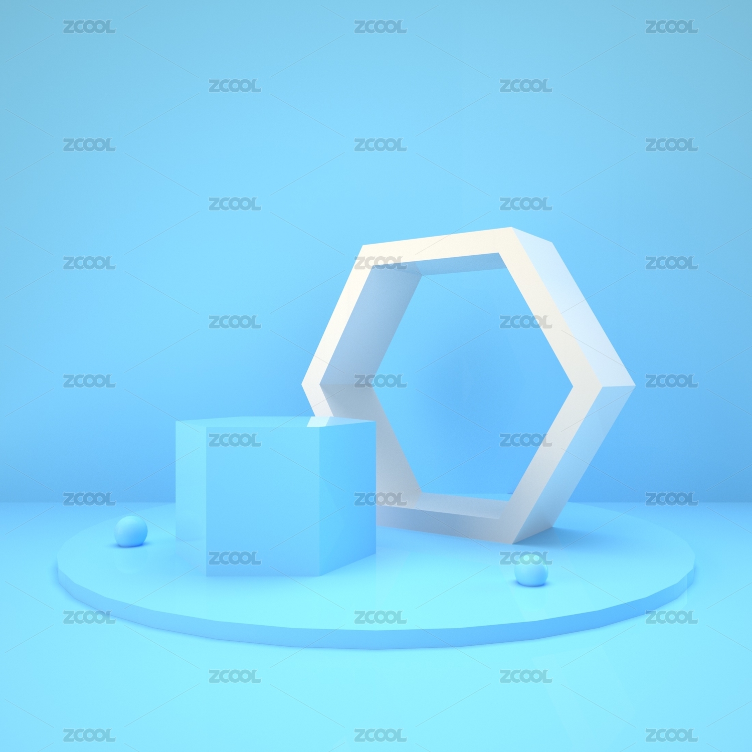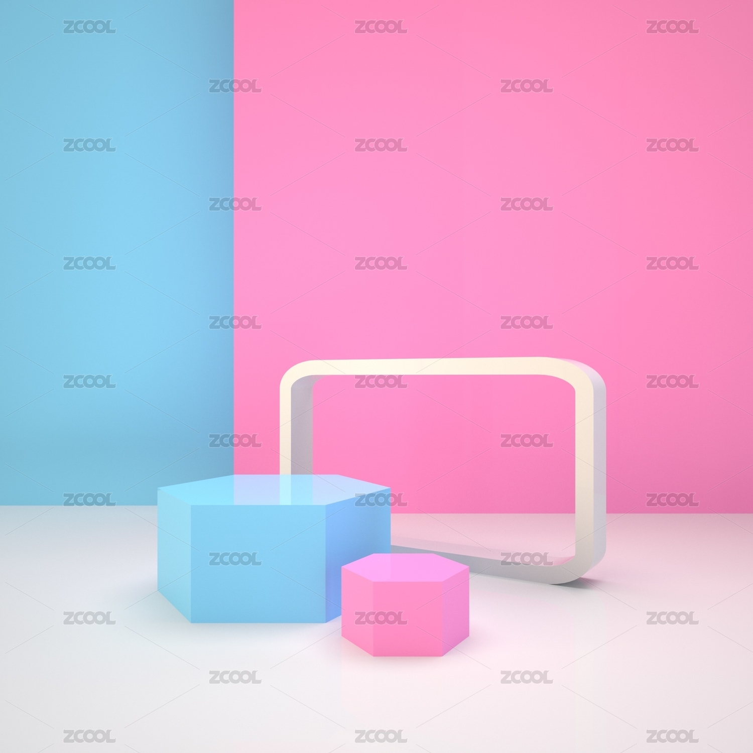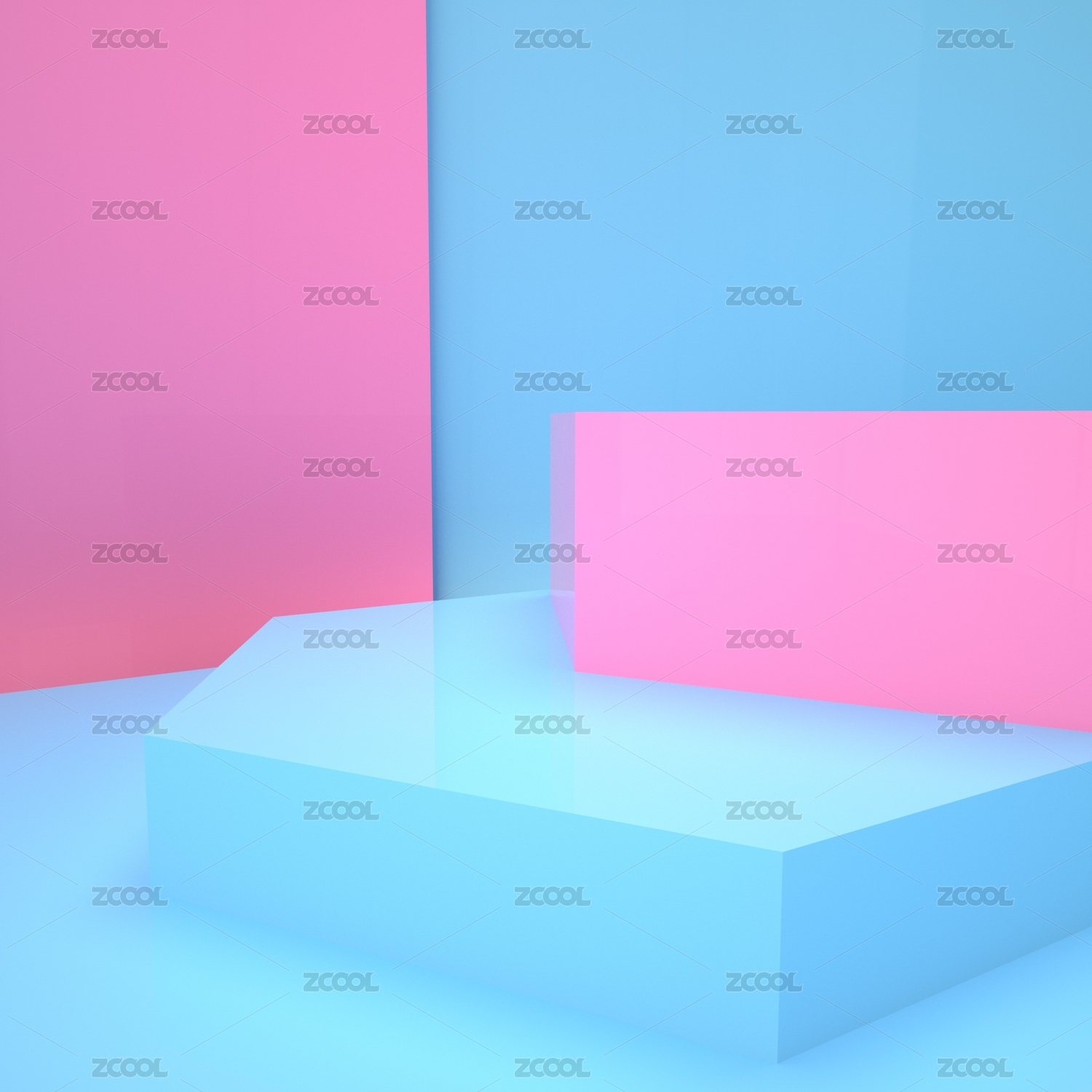 粉藍(lán)簡約幾何多用電商促銷立體擺臺海報背景模板平面設(shè)計