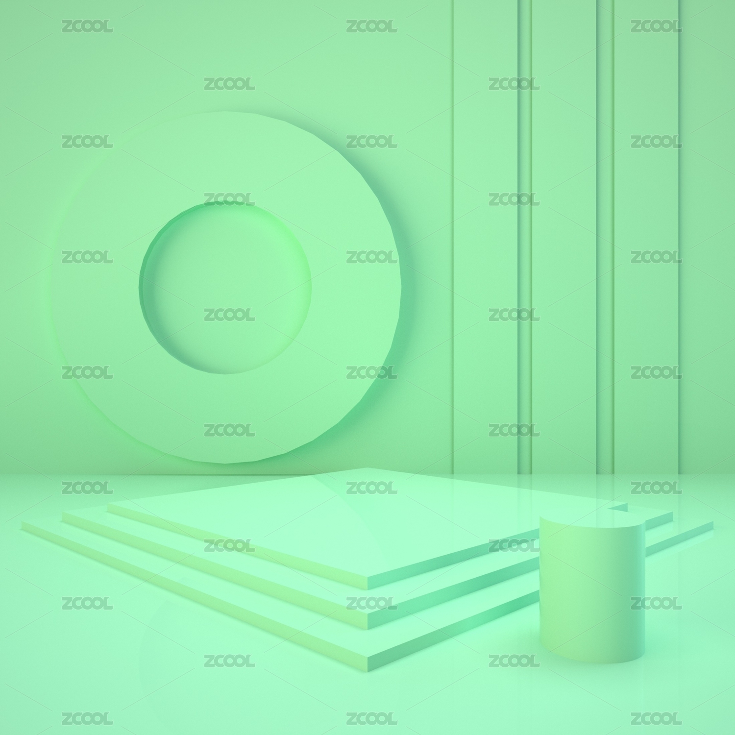 清新蘋果綠色立體電商促銷場景擺臺海報背景平面設(shè)計