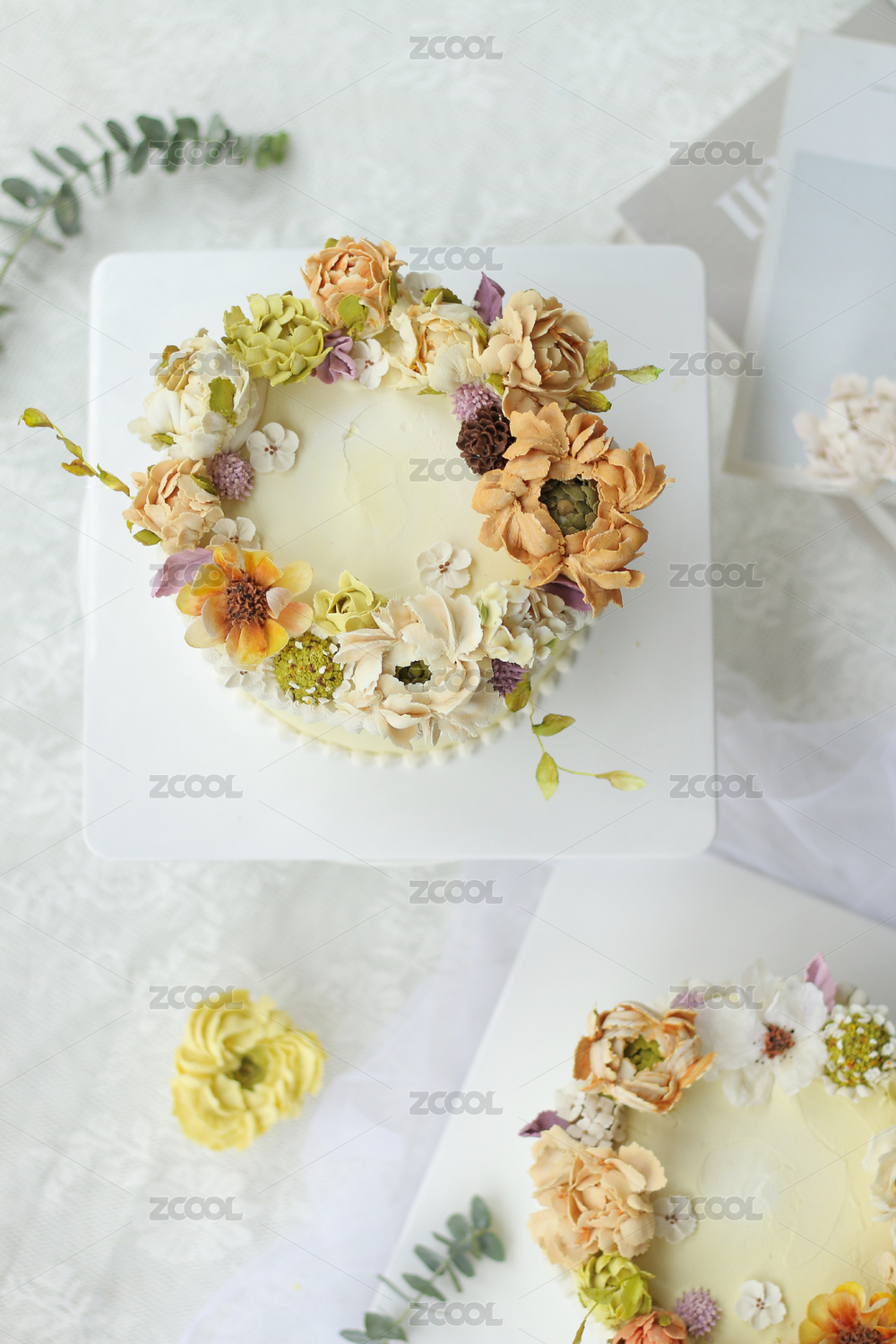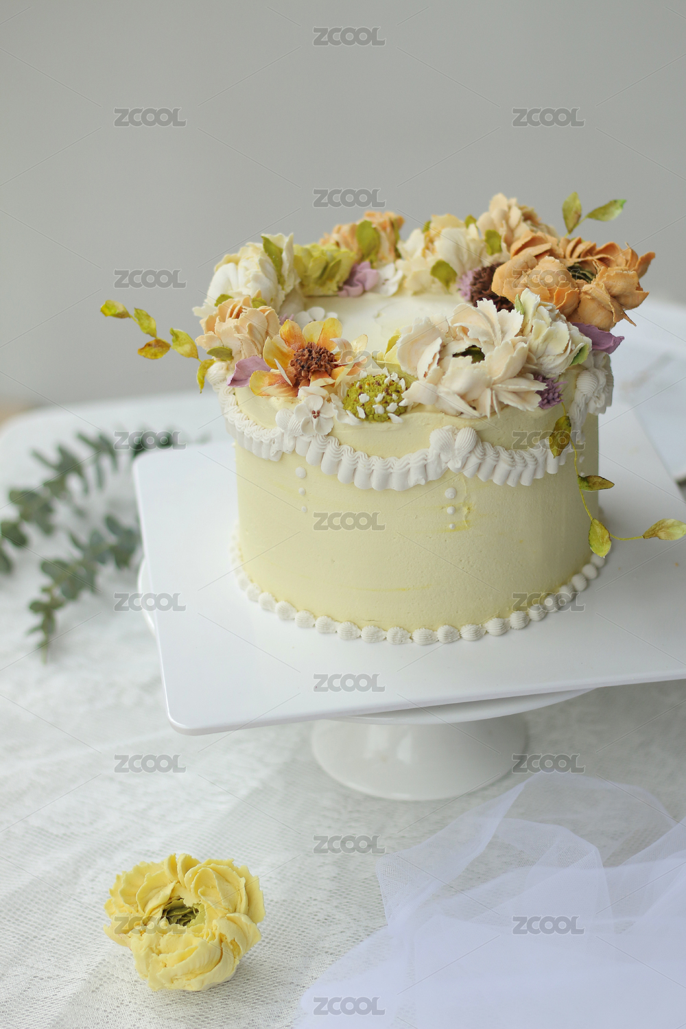 亮調(diào)背景下的黃色系韓式裱花蛋糕