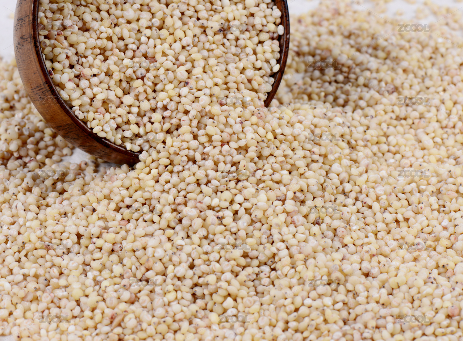 米黃色調(diào)棕色木碗里營養(yǎng)谷物高粱米