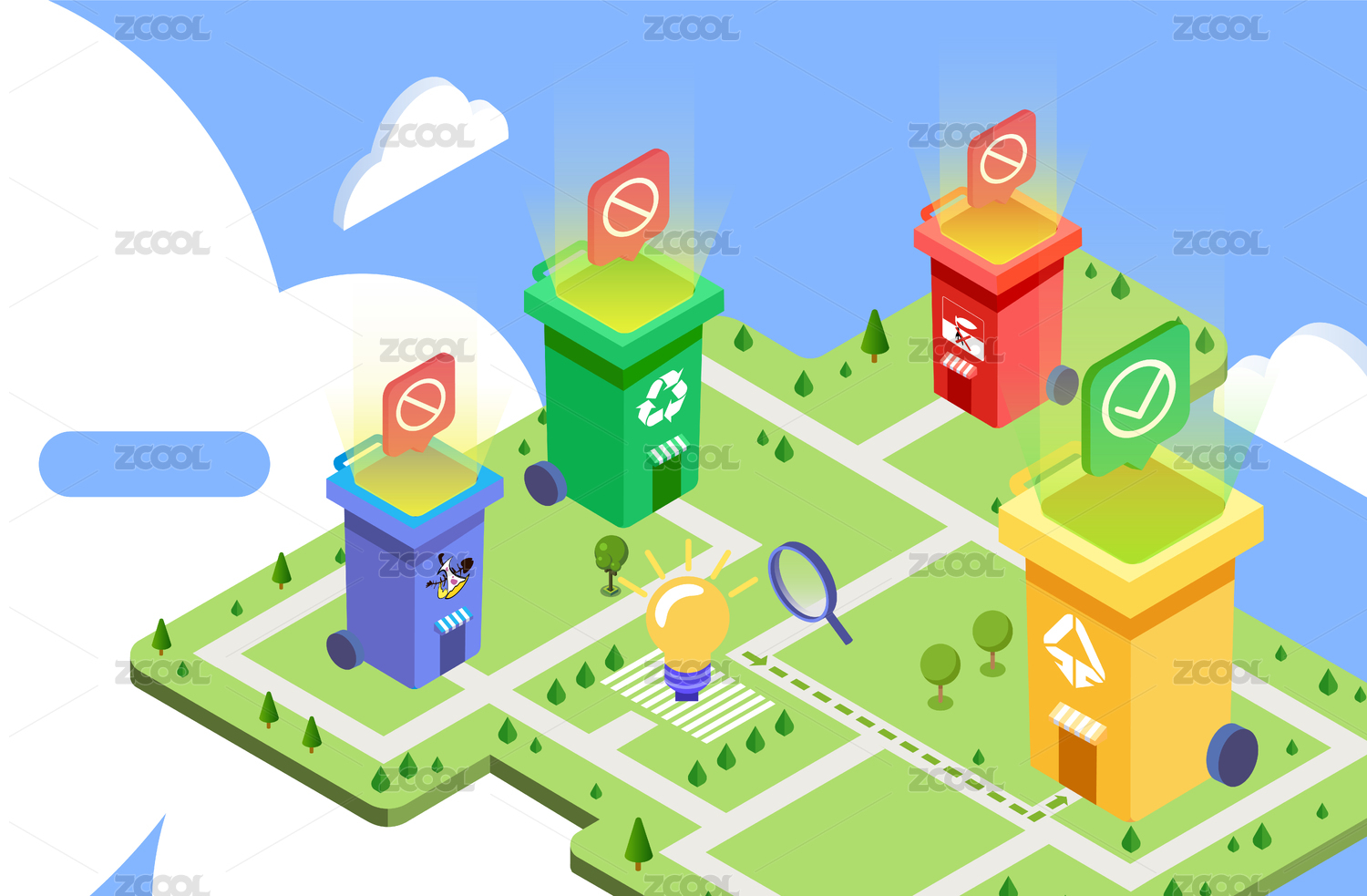 25d自然環(huán)境垃圾分類手繪矢量插畫