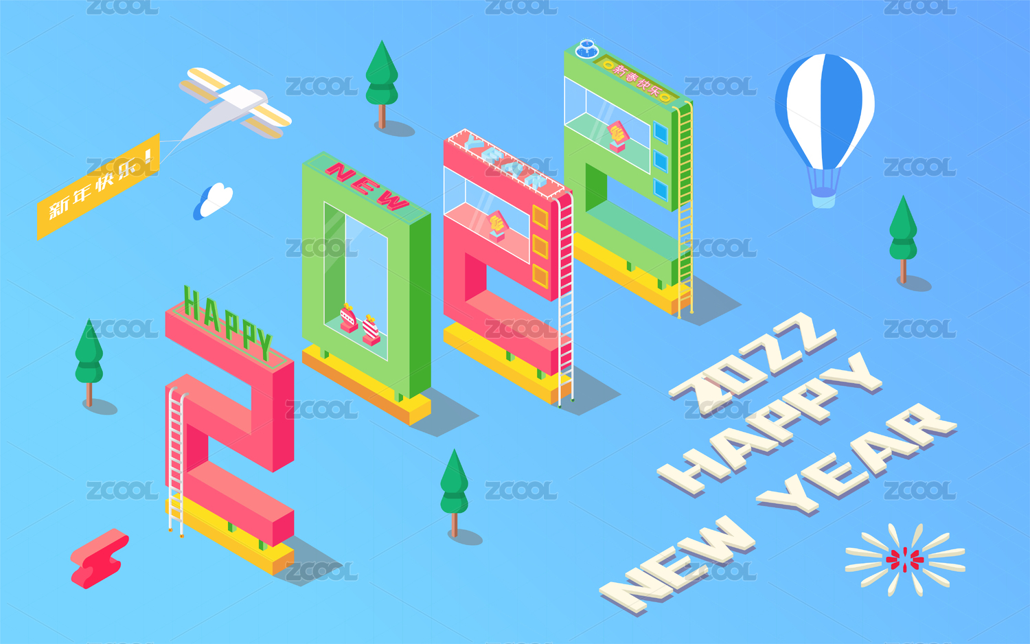25D風(fēng)格2022元旦節(jié)矢量海報(bào)素材風(fēng)格
