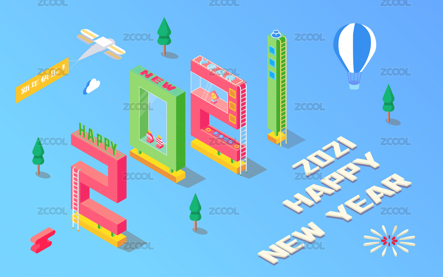 25D風(fēng)格2021新年矢量海報(bào)素材風(fēng)格