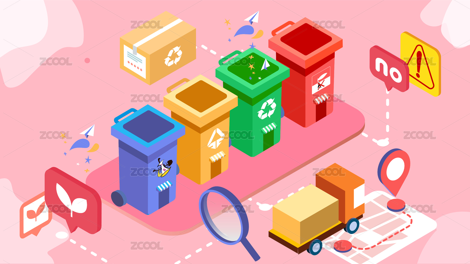 25d粉色系垃圾分類手繪矢量插畫