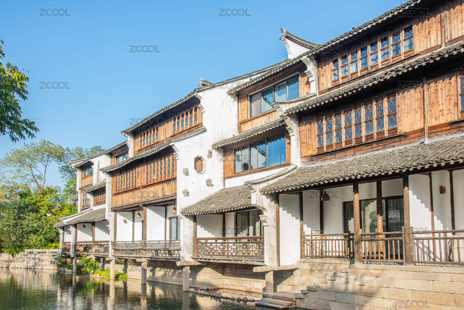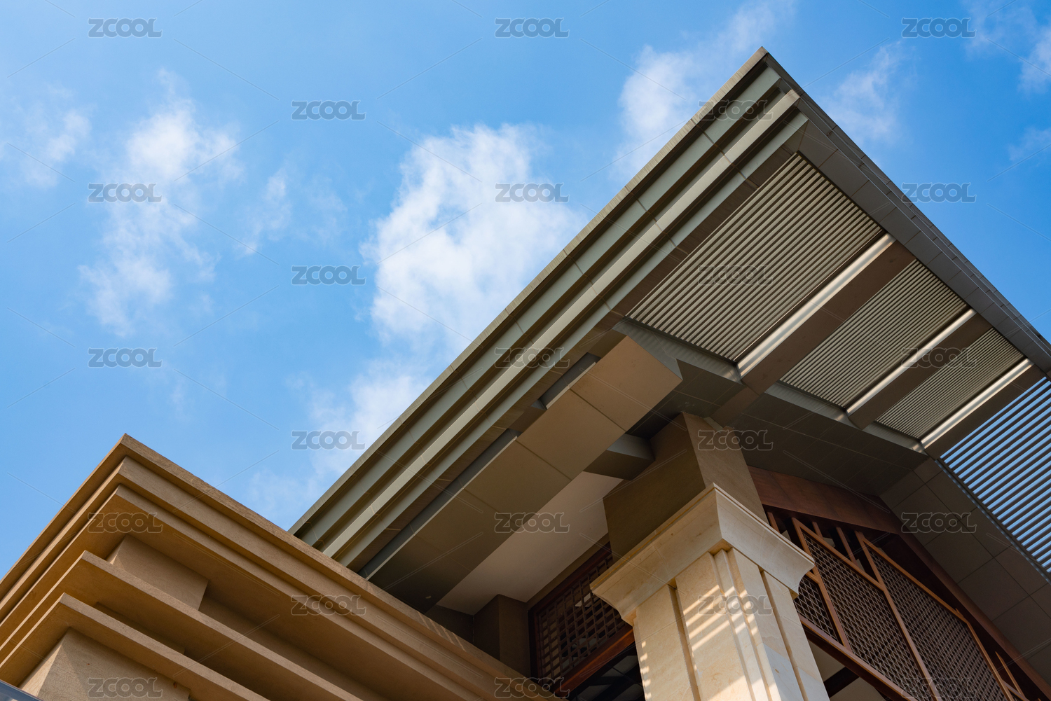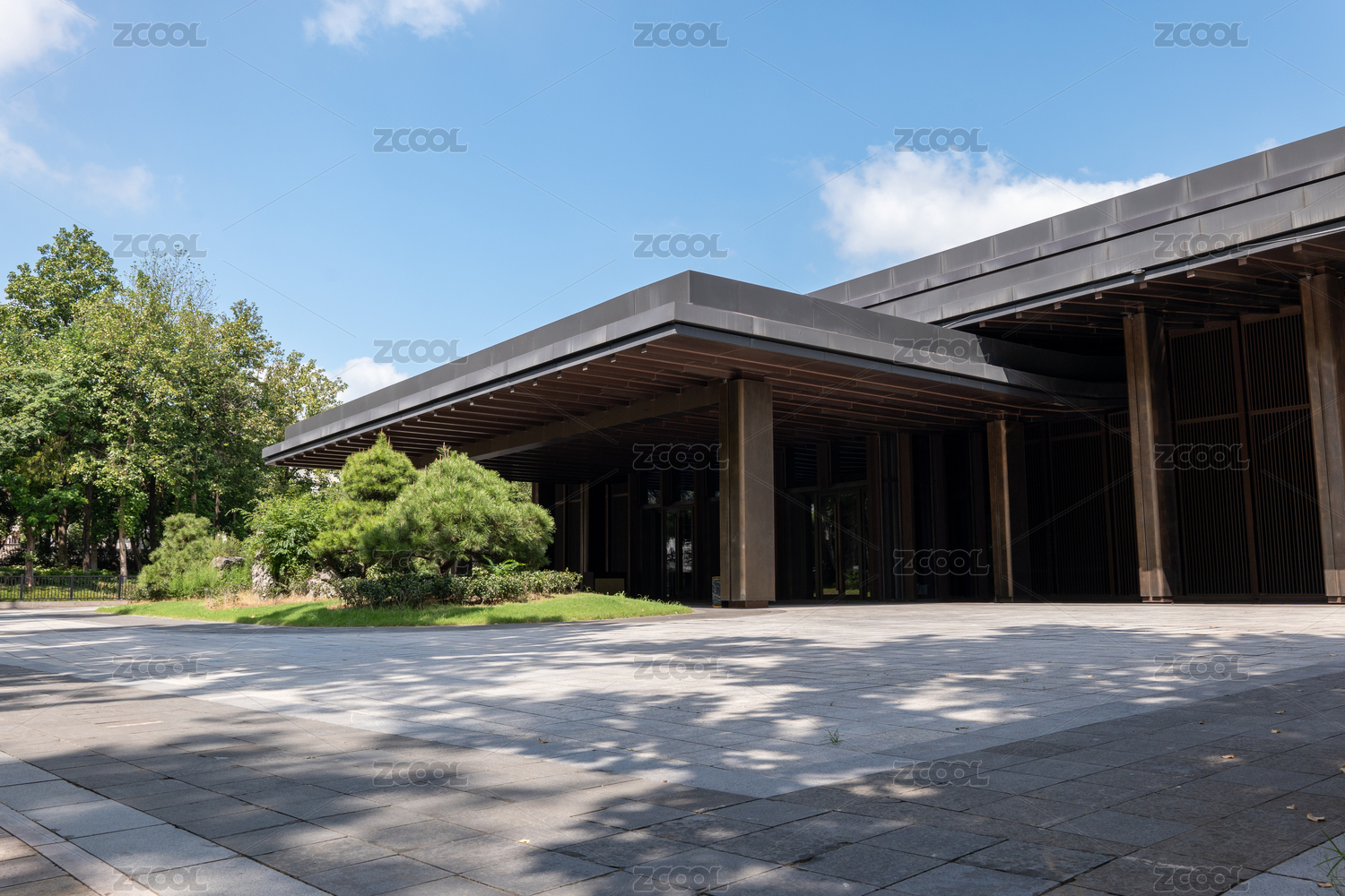 藍天白云下傳統(tǒng)中式酒店庭院設計