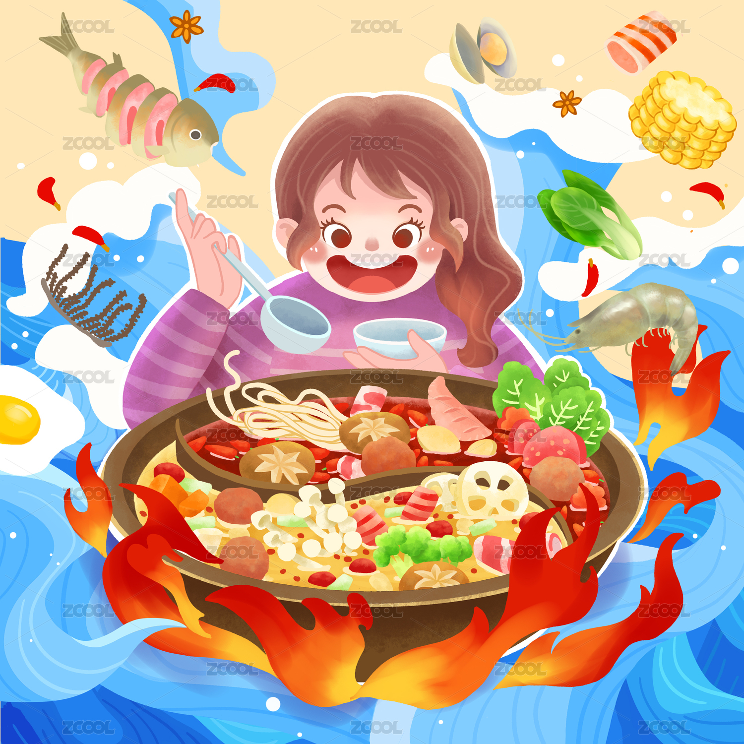 火鍋女孩插畫