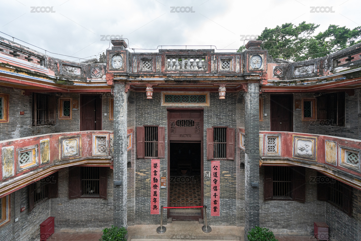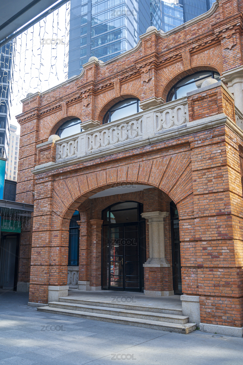 老上海的歐式紅磚老洋房外墻及大門特寫