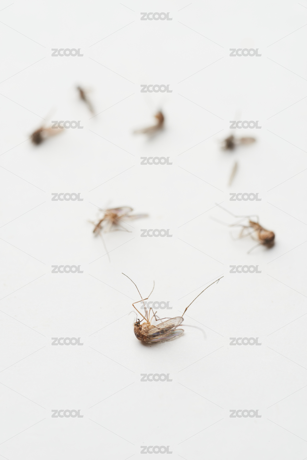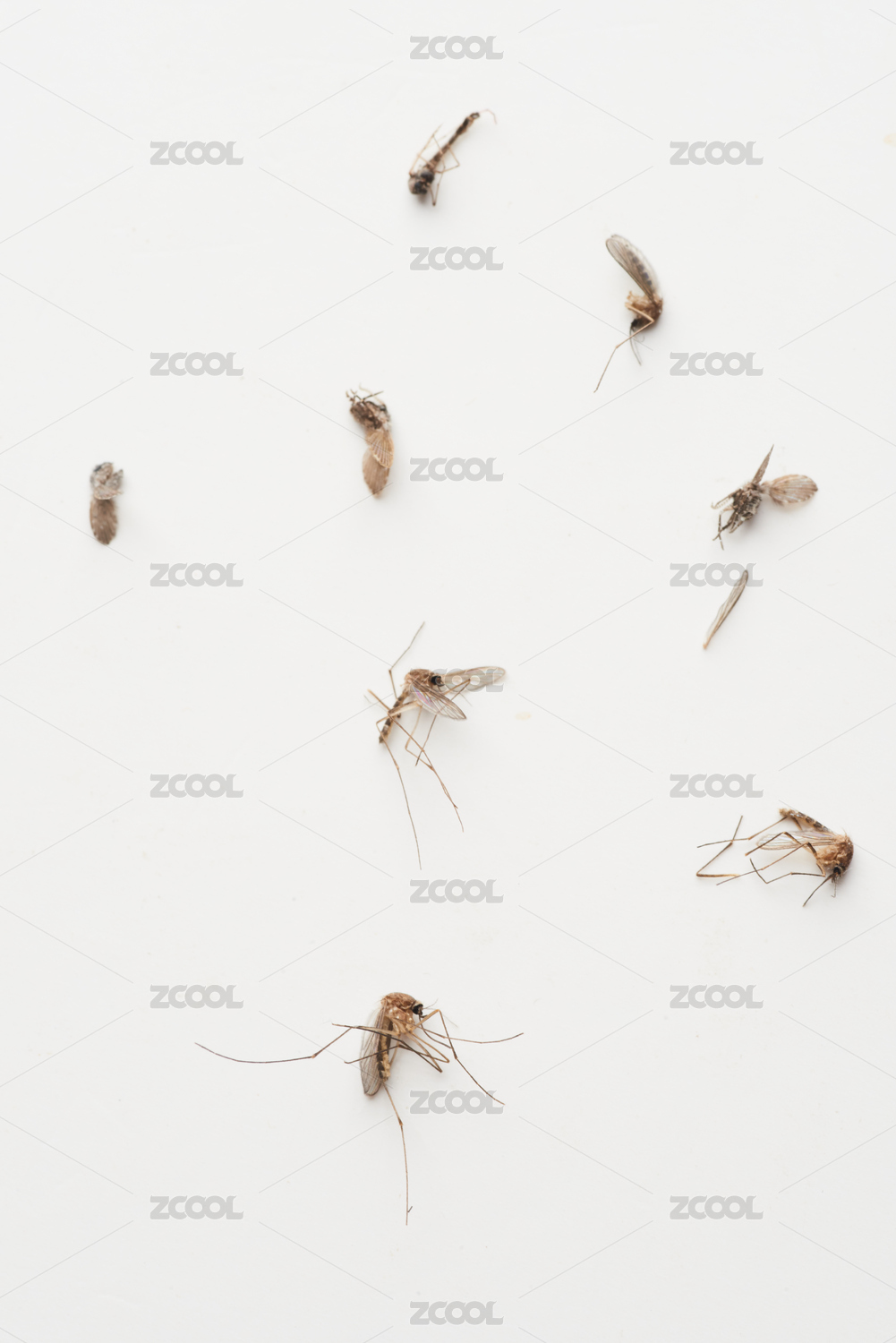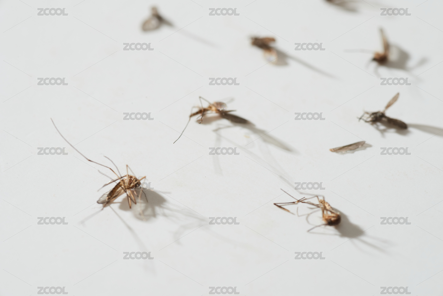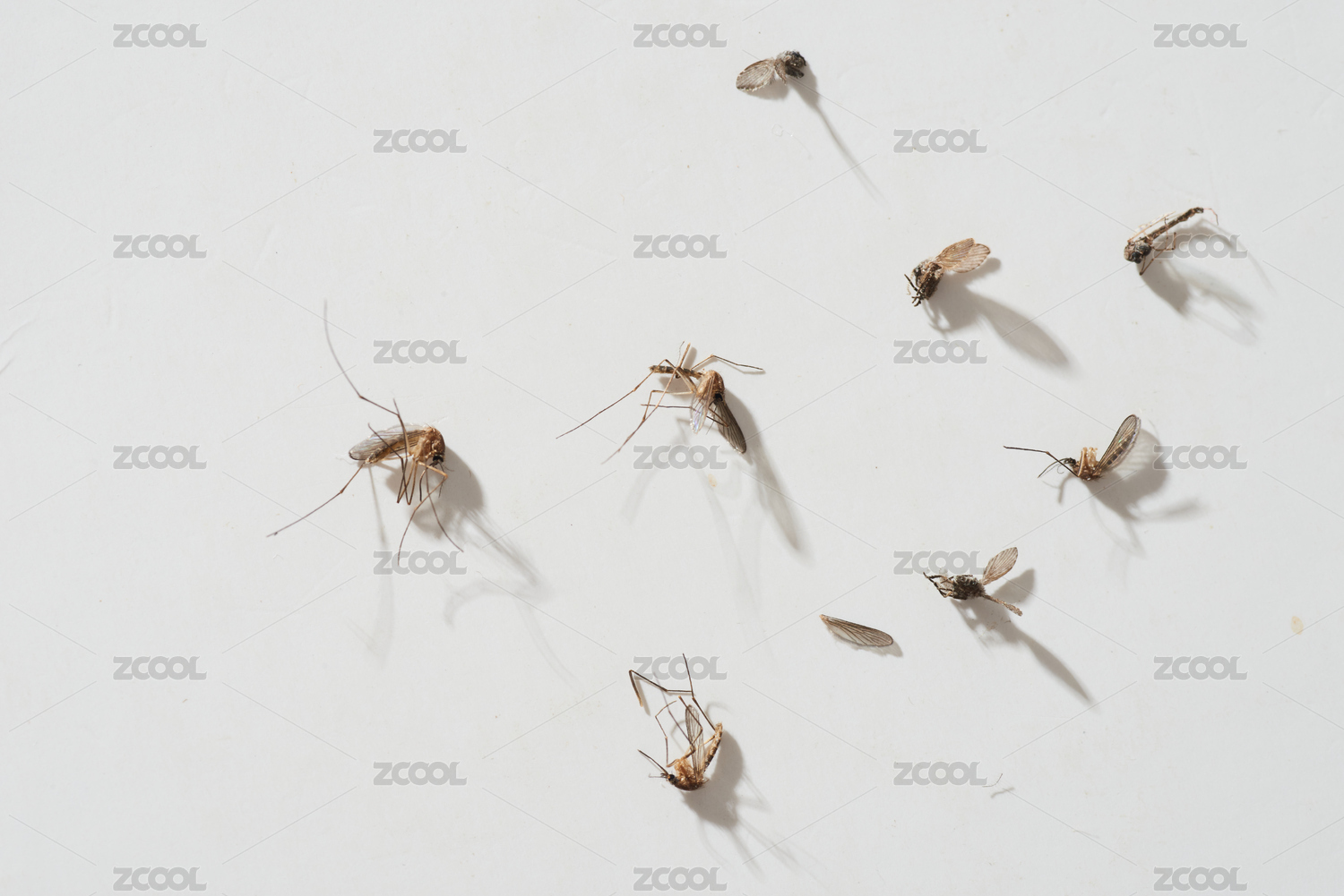 白色背景上散落著被殺死的蚊蟲