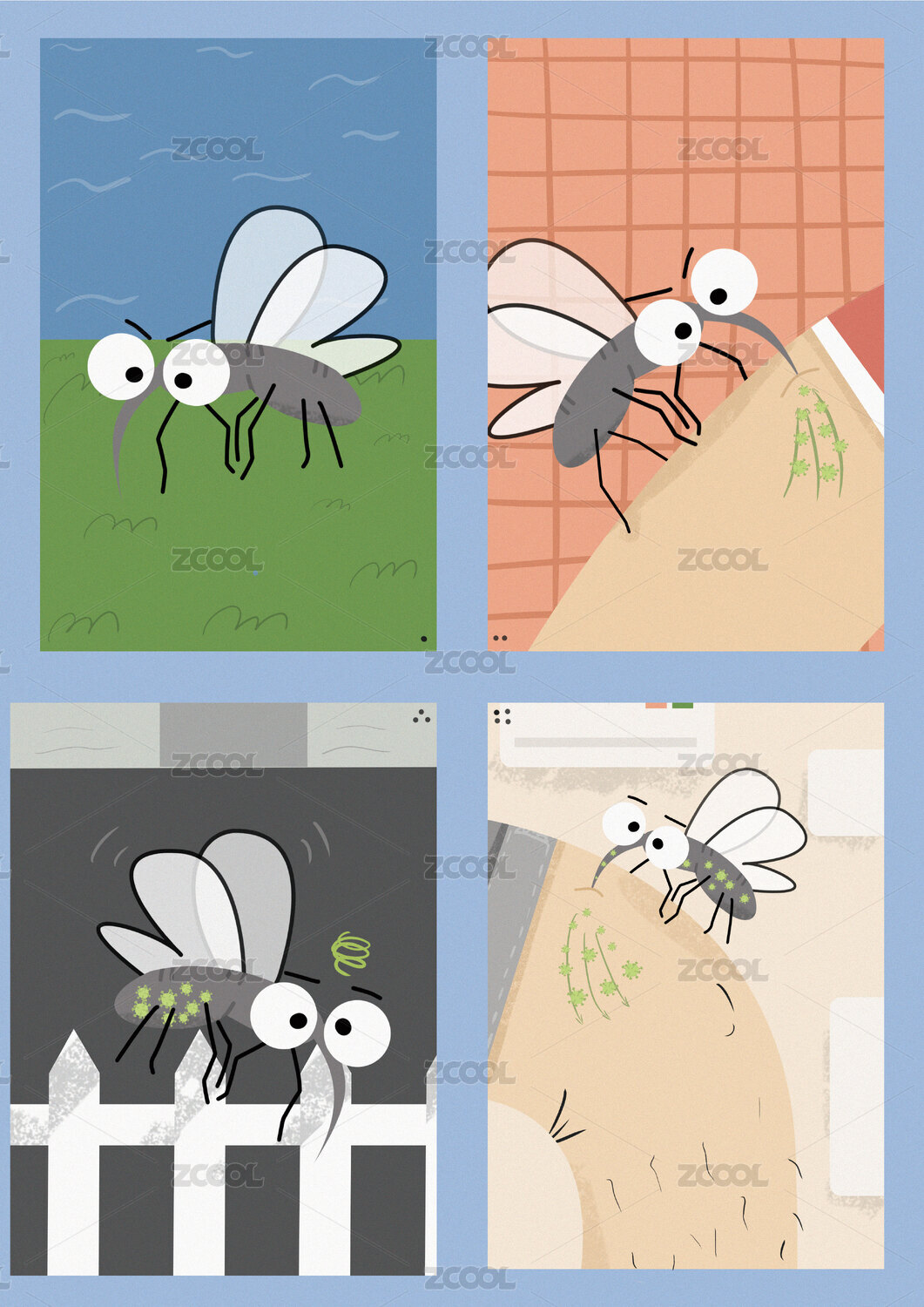 蚊蟲叮咬防蚊概念插畫