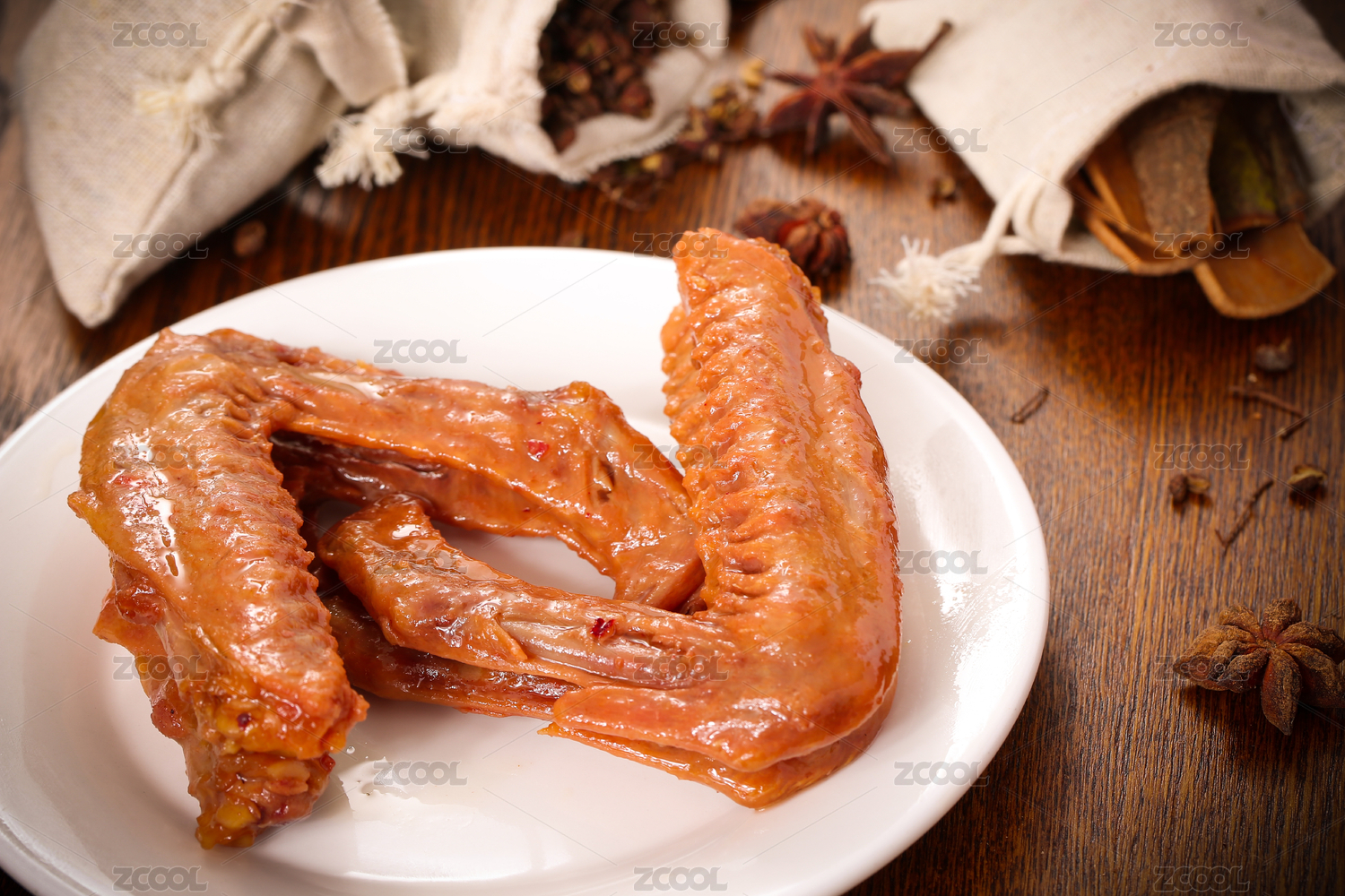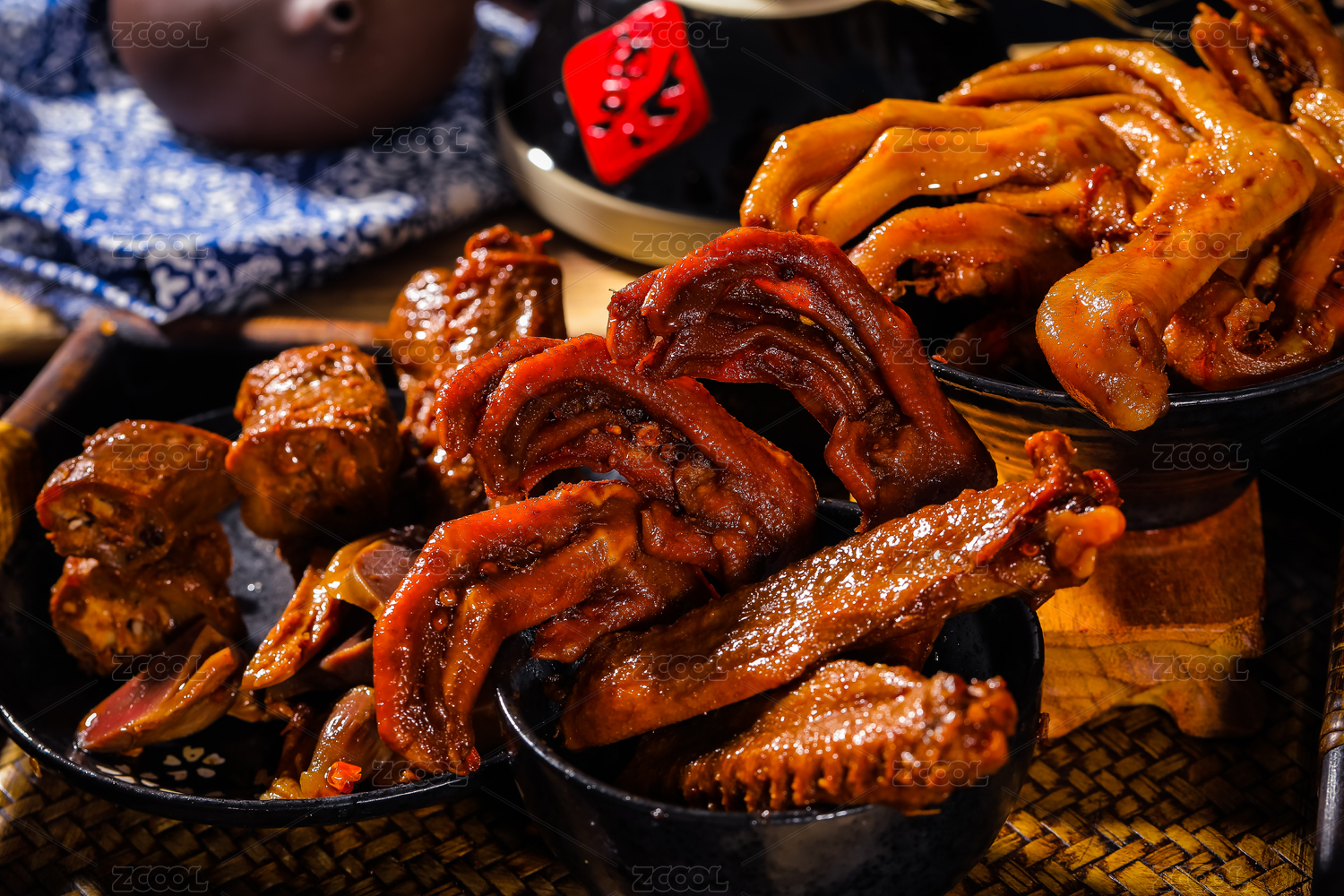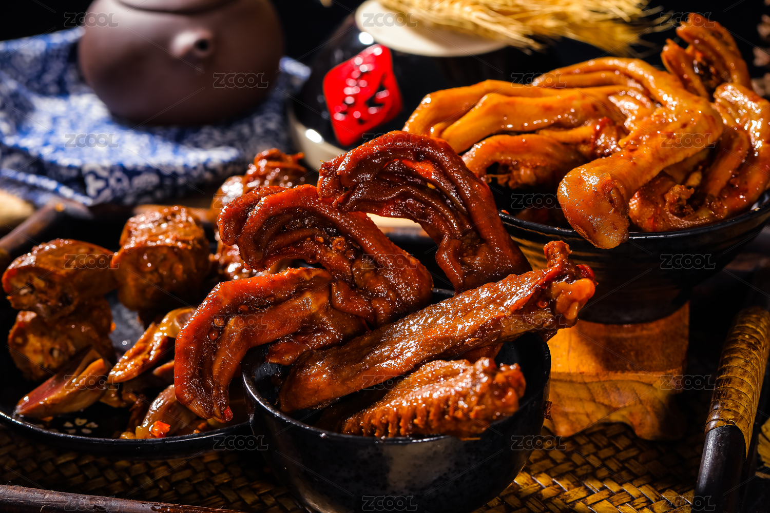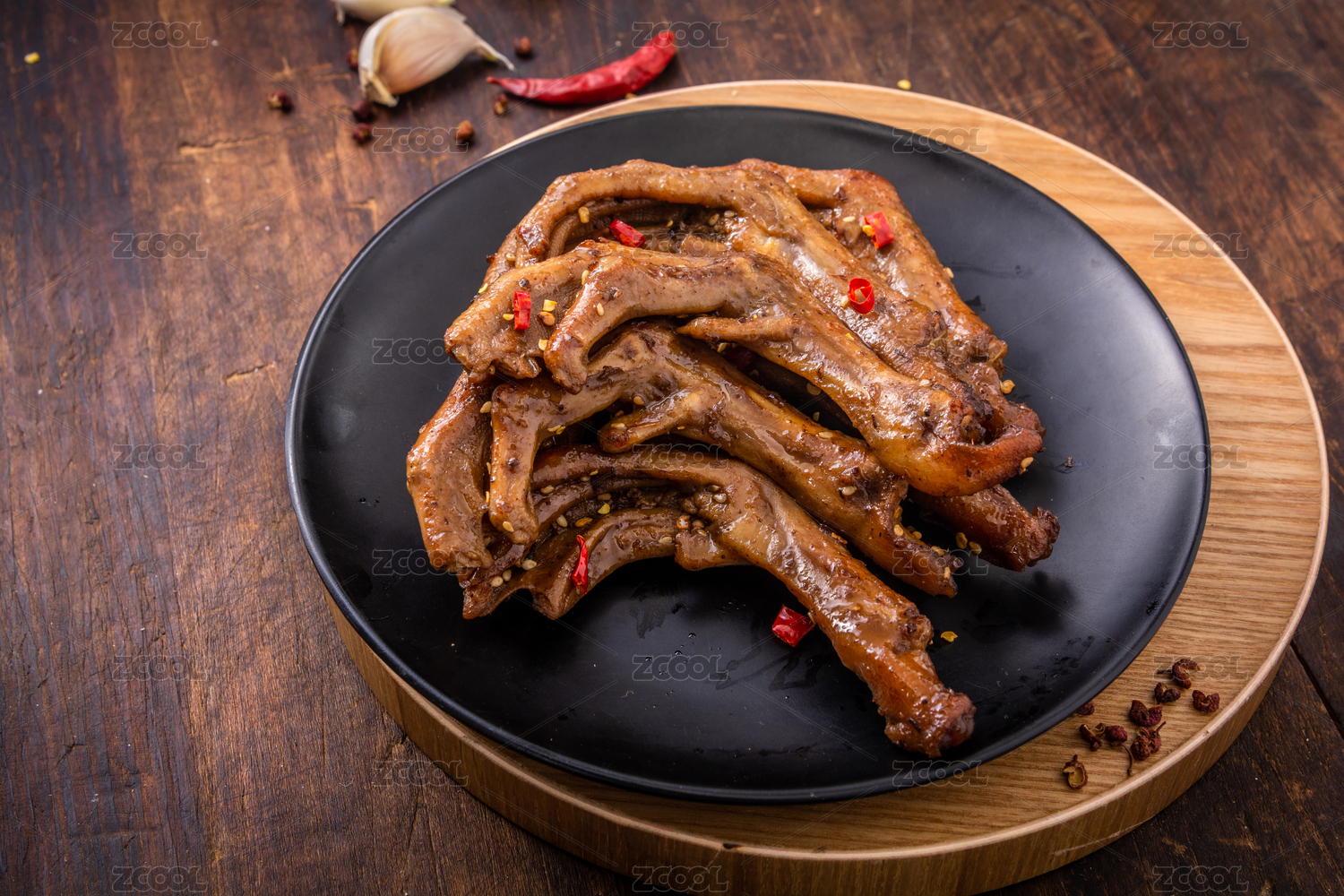 在木板上的鹵味鵝爪