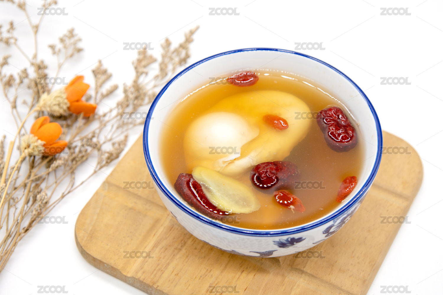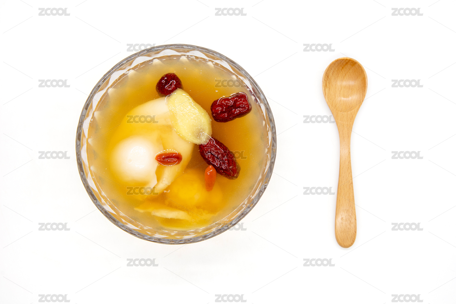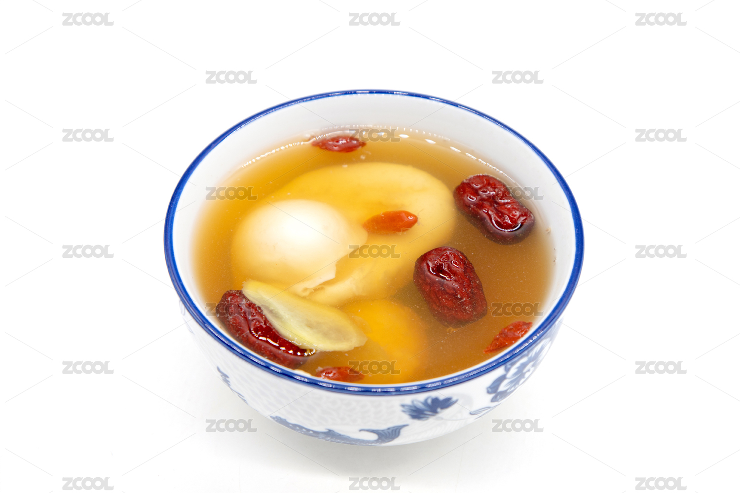 白色背景一碗生姜紅棗雞蛋羹