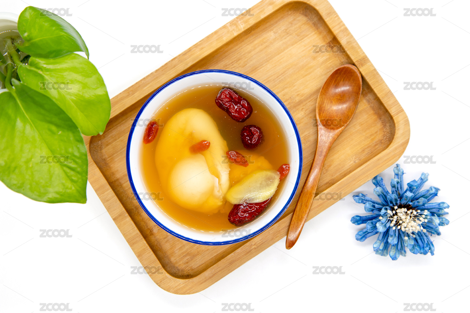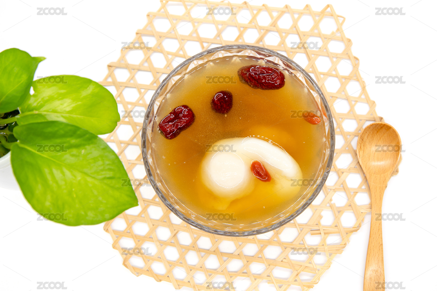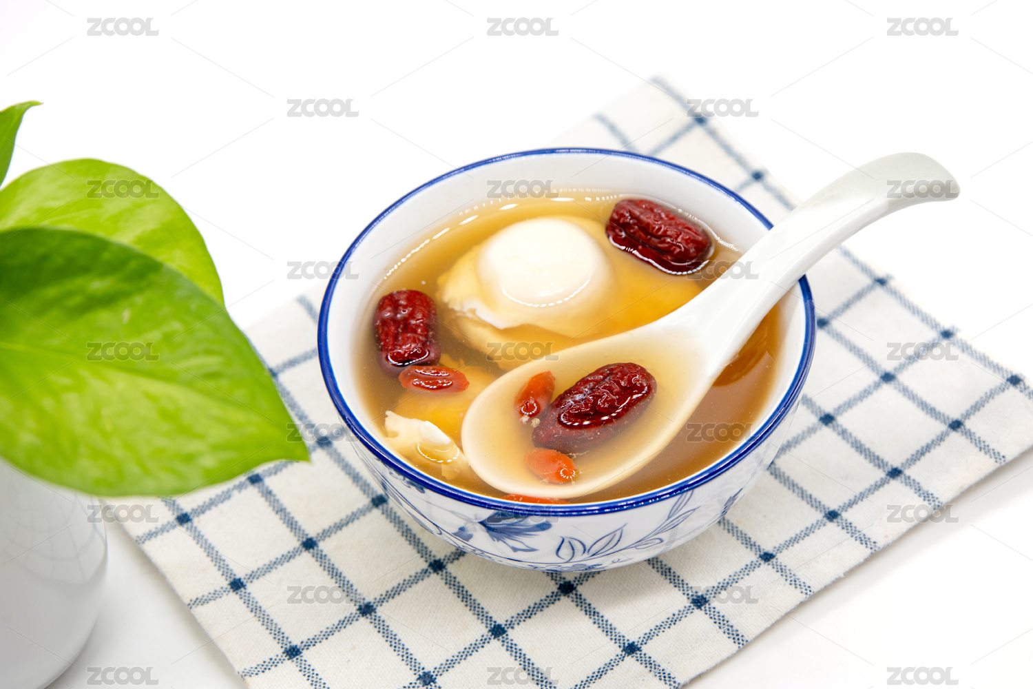 白色背景一碗生姜紅棗雞蛋羹