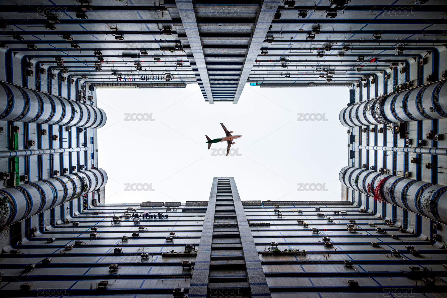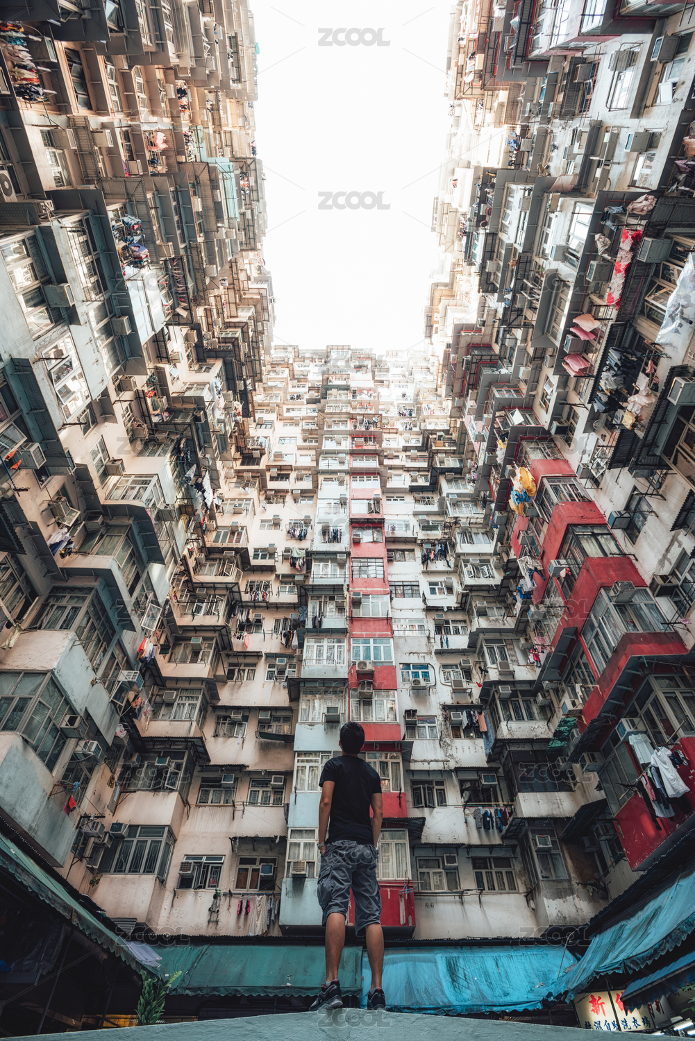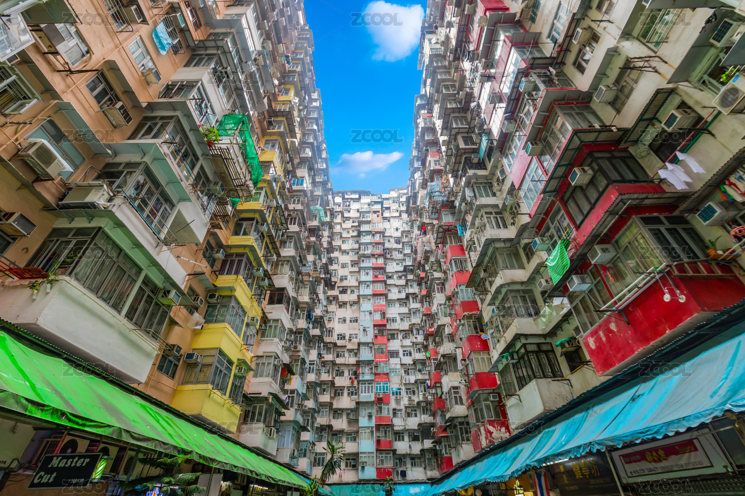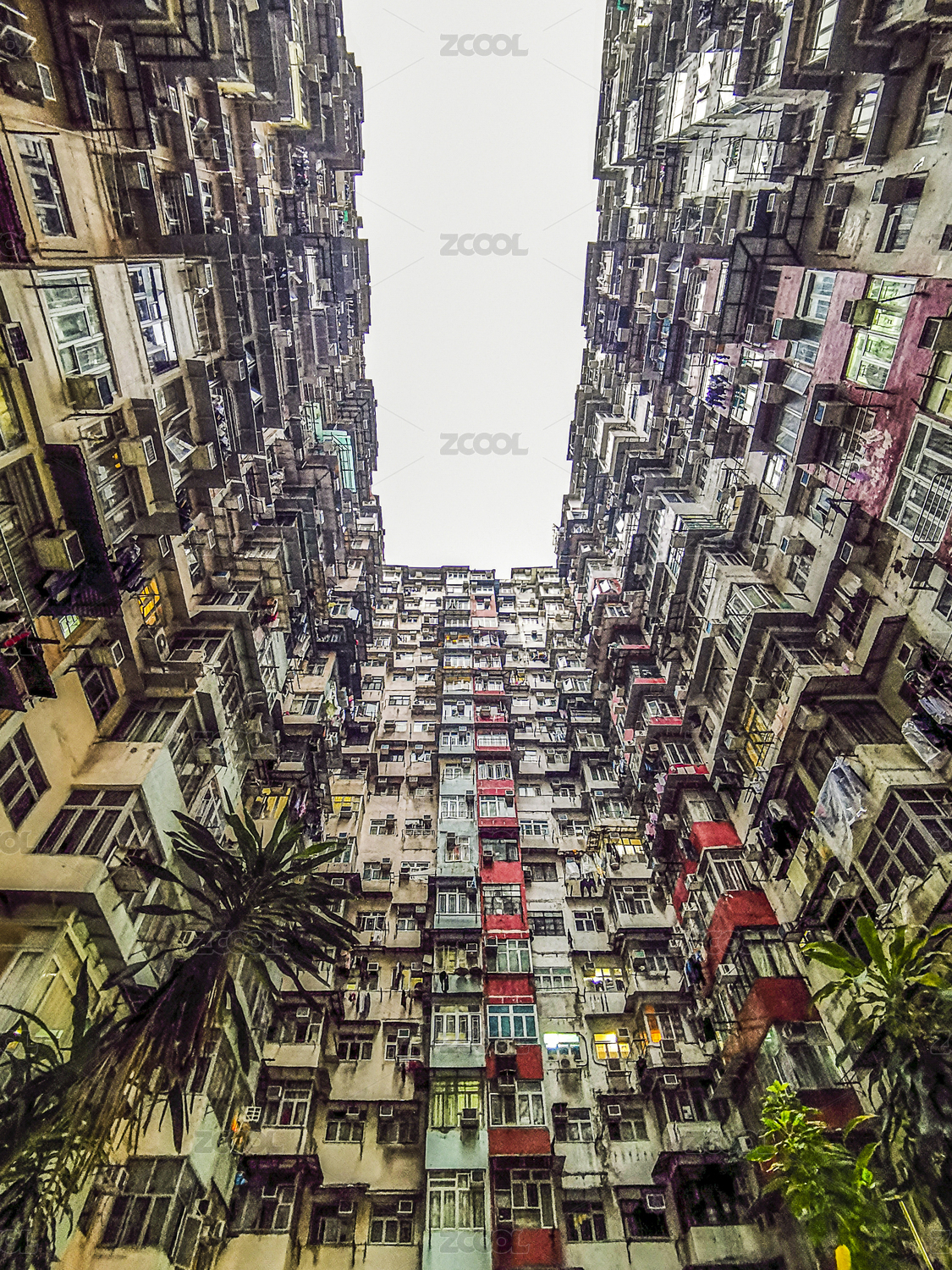 中國(guó)香港仰拍怪獸大廈密集居民區(qū)