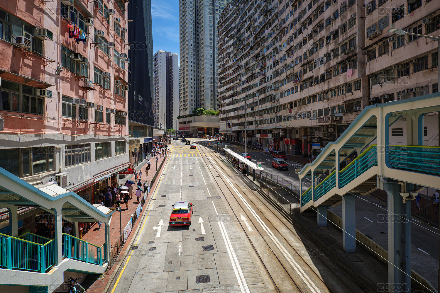 中國(guó)香港港島英皇道怪獸大廈擁擠都市街景