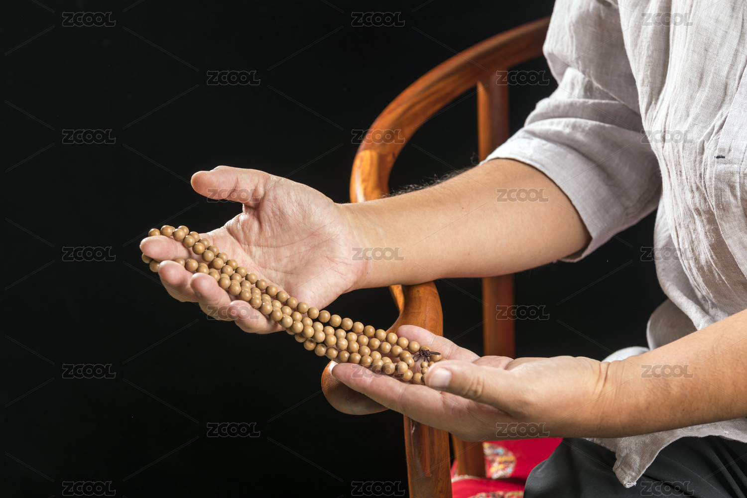 男人坐在圈椅上手持佛珠手串念珠特寫
