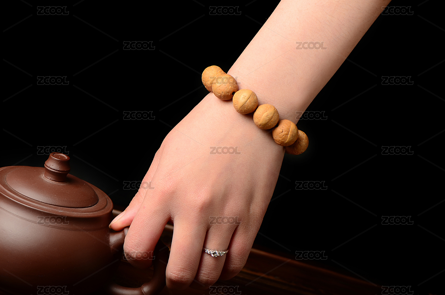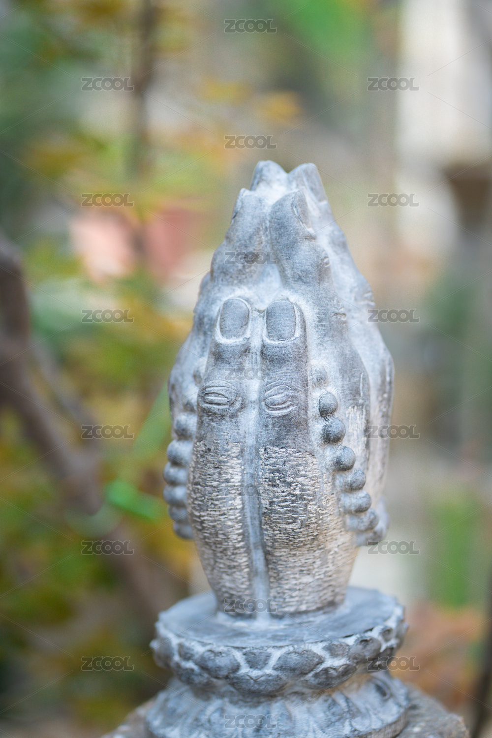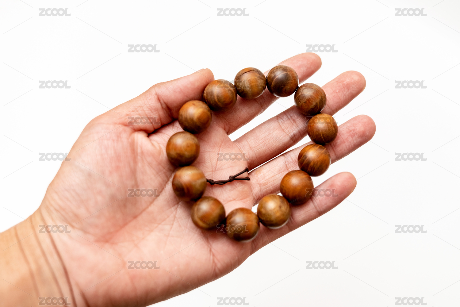 中式庭院內(nèi)大理石手捻佛珠的雙手特寫