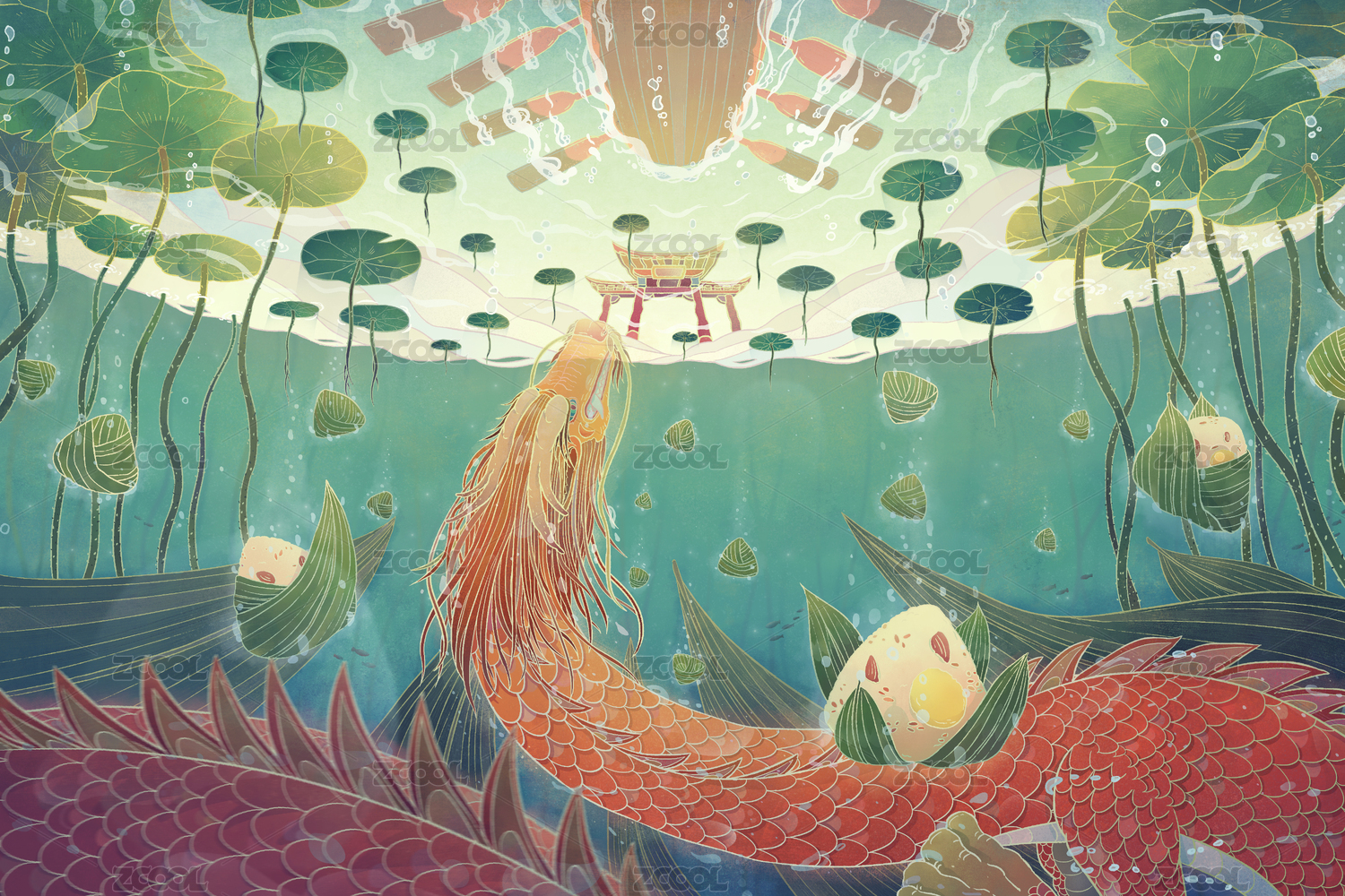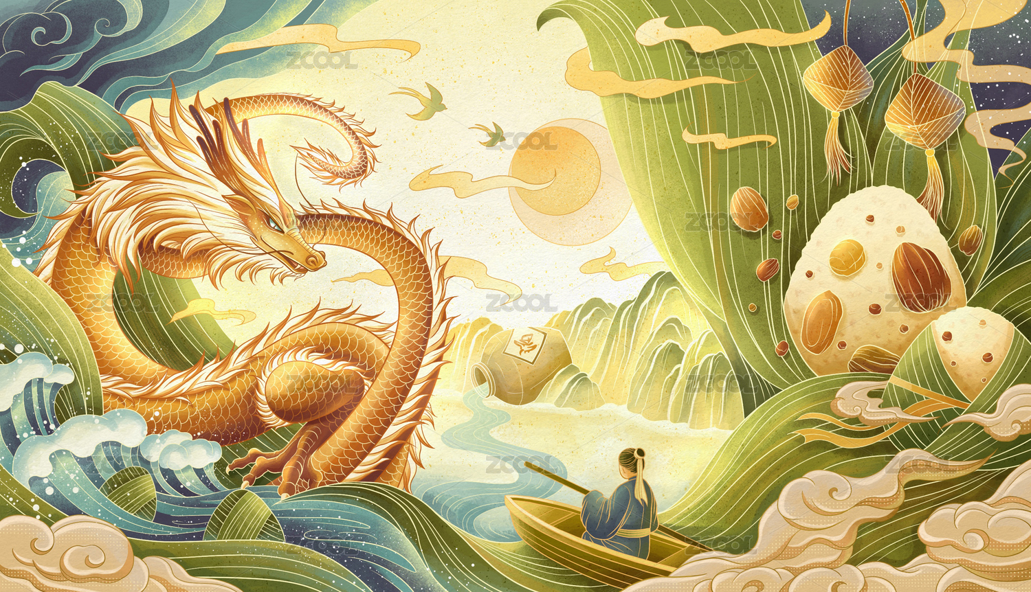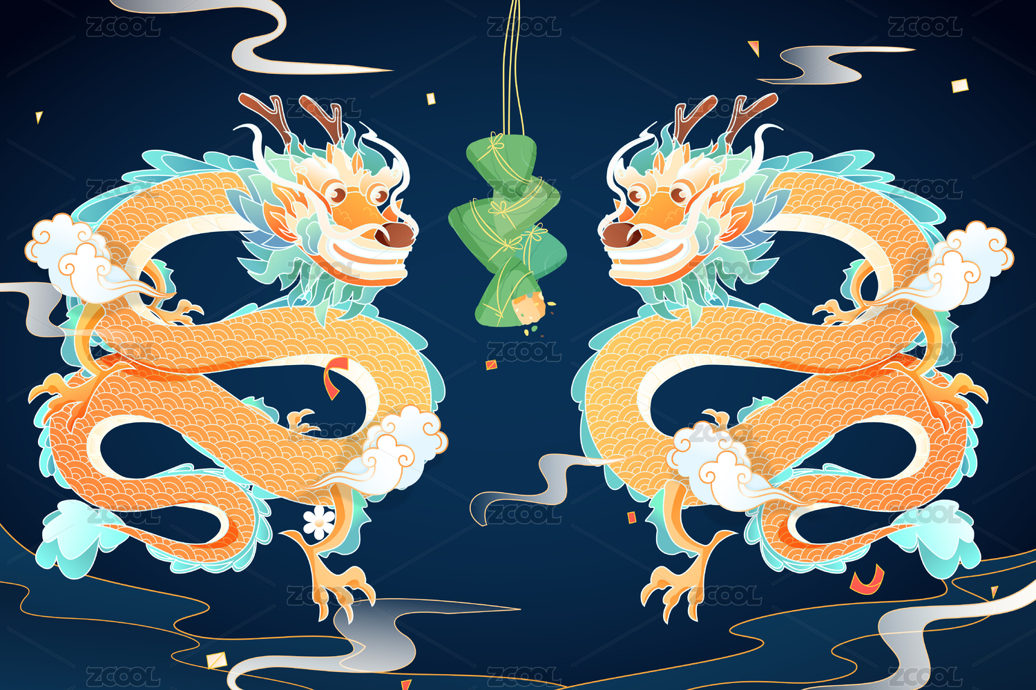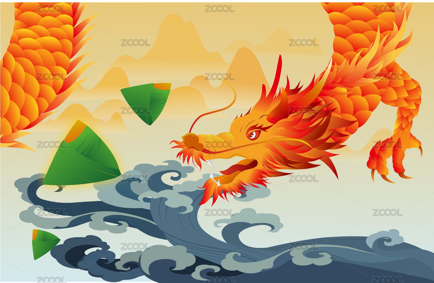 中國(guó)風(fēng)端午節(jié)神龍與粽子