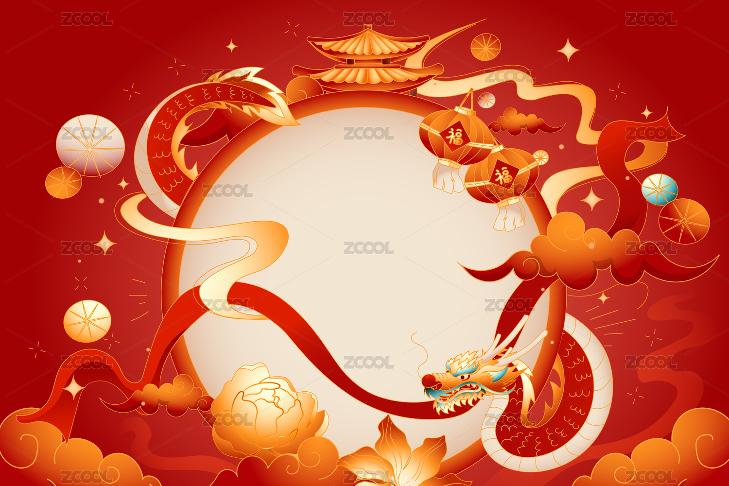 虎年神龍城門(mén)矢量插畫(huà)