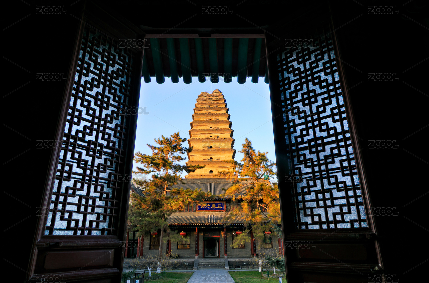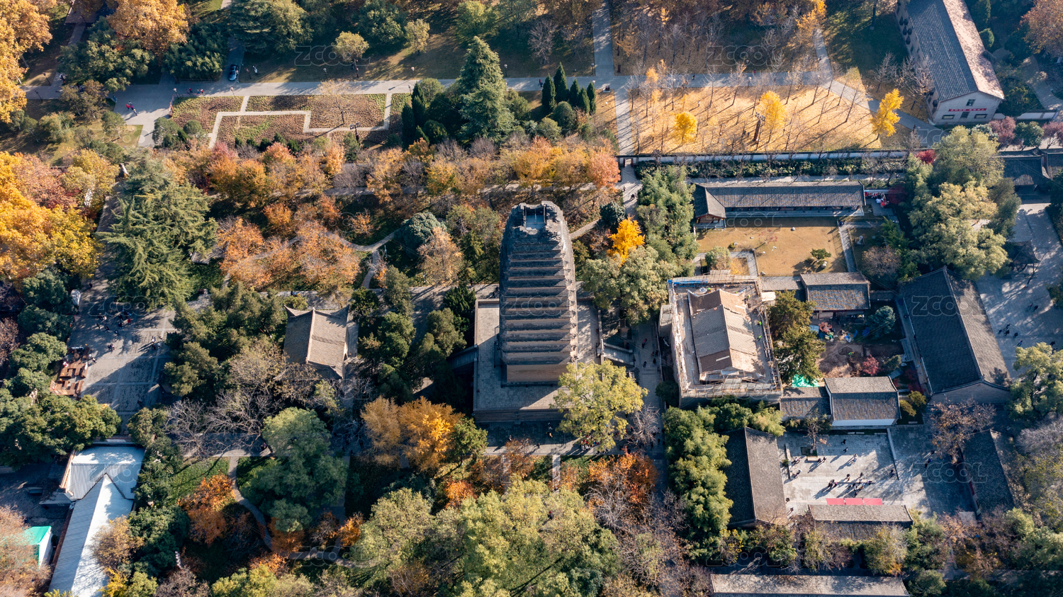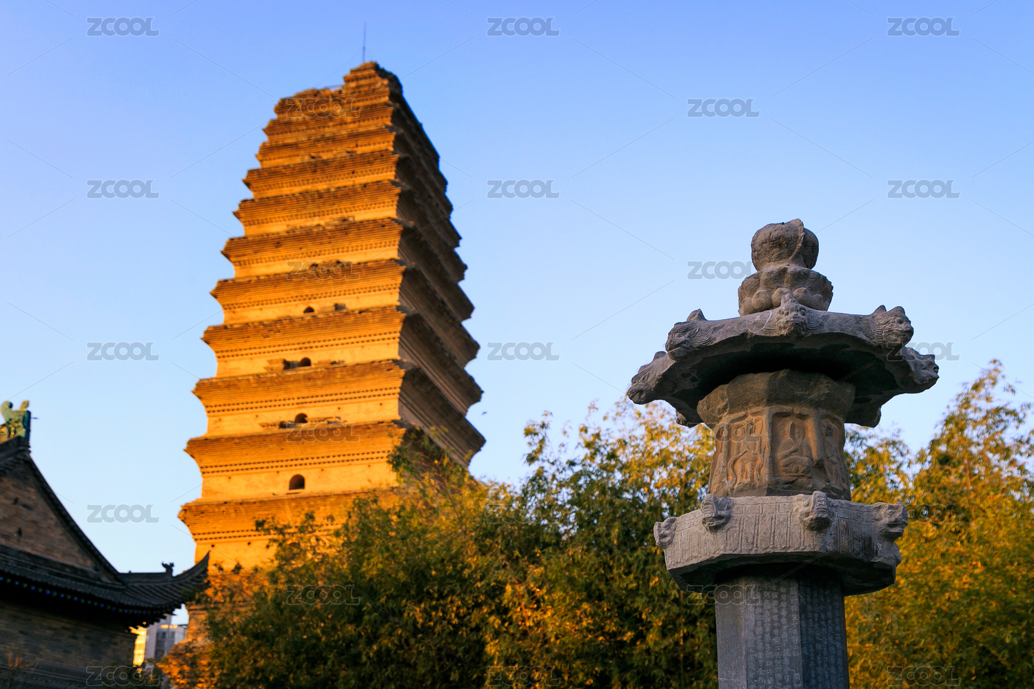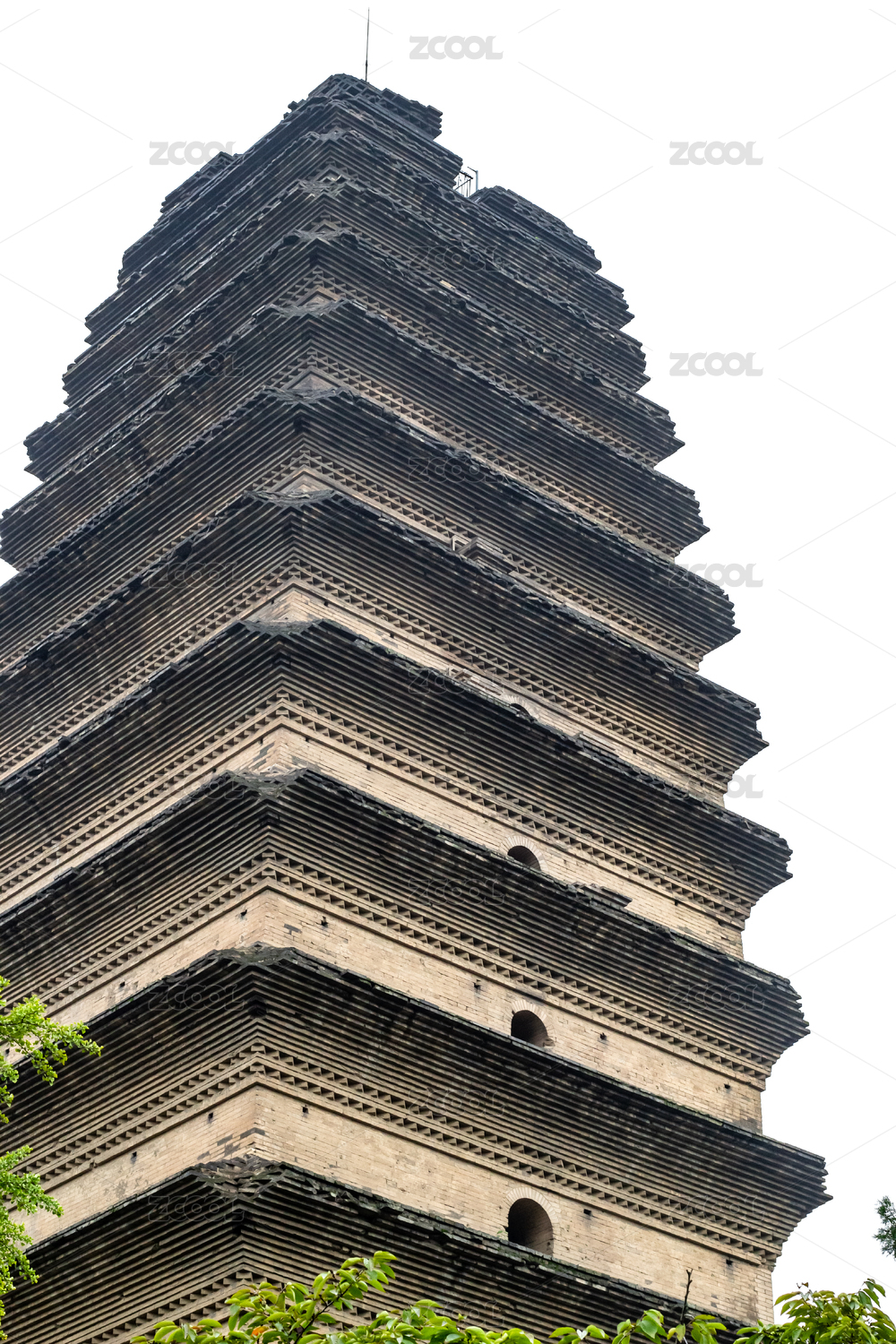 西安小雁塔遺址公園古老的小雁塔與參天古樹