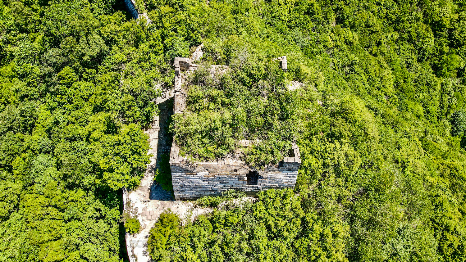 北京箭扣長(zhǎng)城殘?jiān)珨啾诘臄硺呛脚母┮晥D
