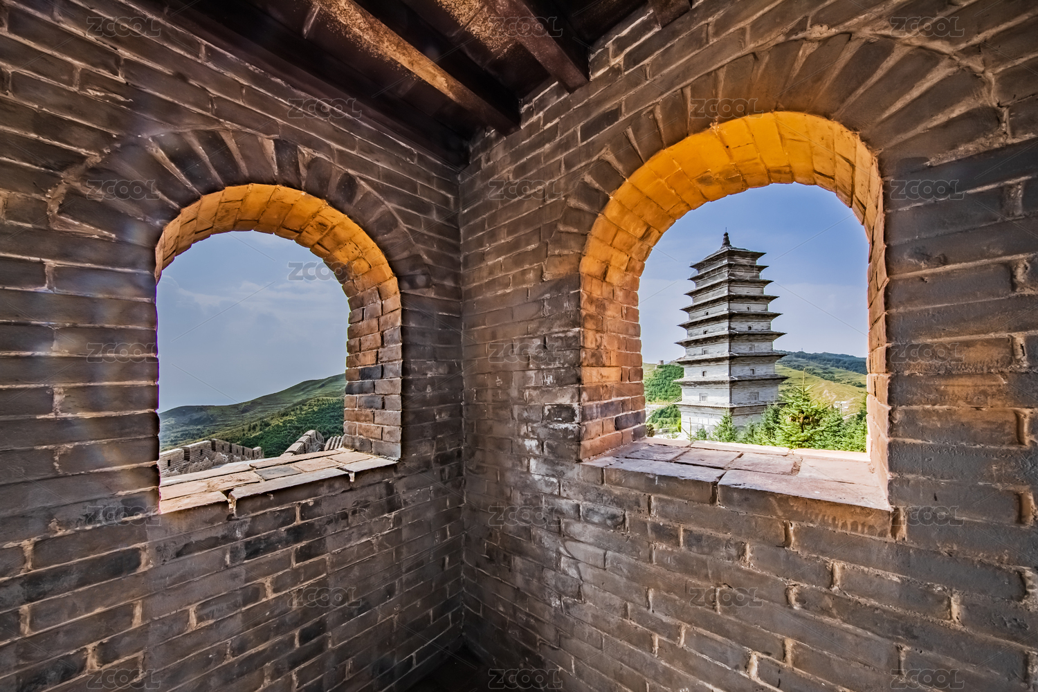 中國(guó)山西省代縣雁門關(guān)長(zhǎng)城景區(qū)敵樓戶牖建筑