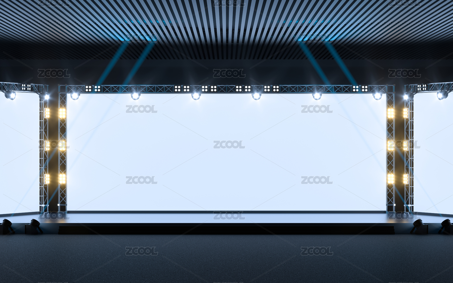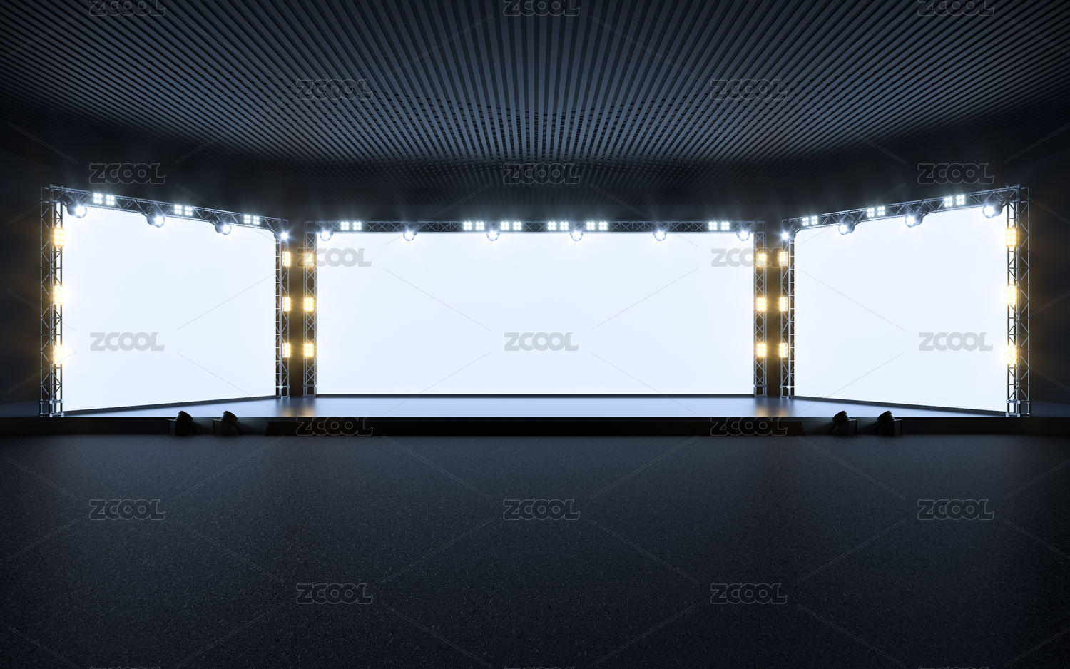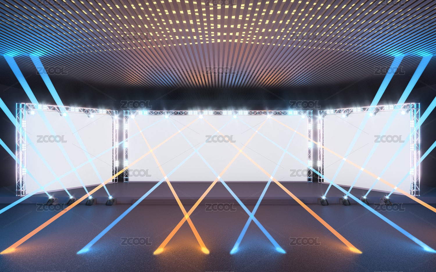 燈光照耀的發(fā)布會與廣告牌 3D渲染