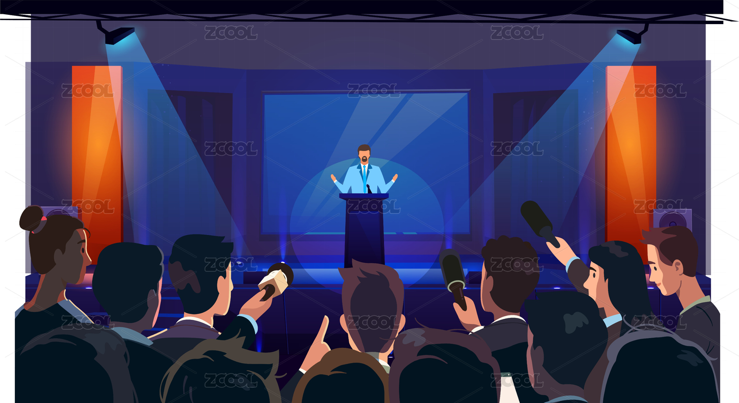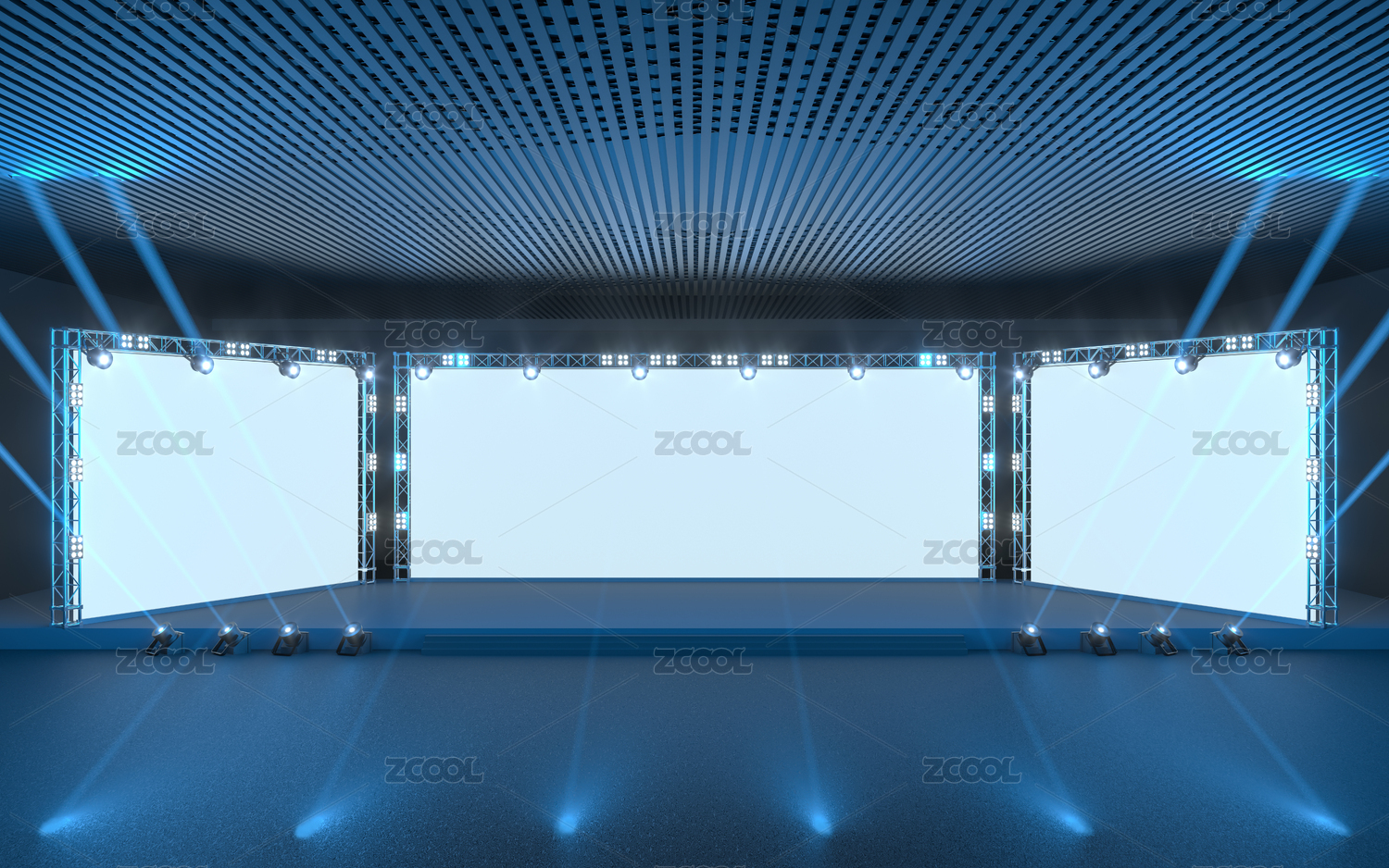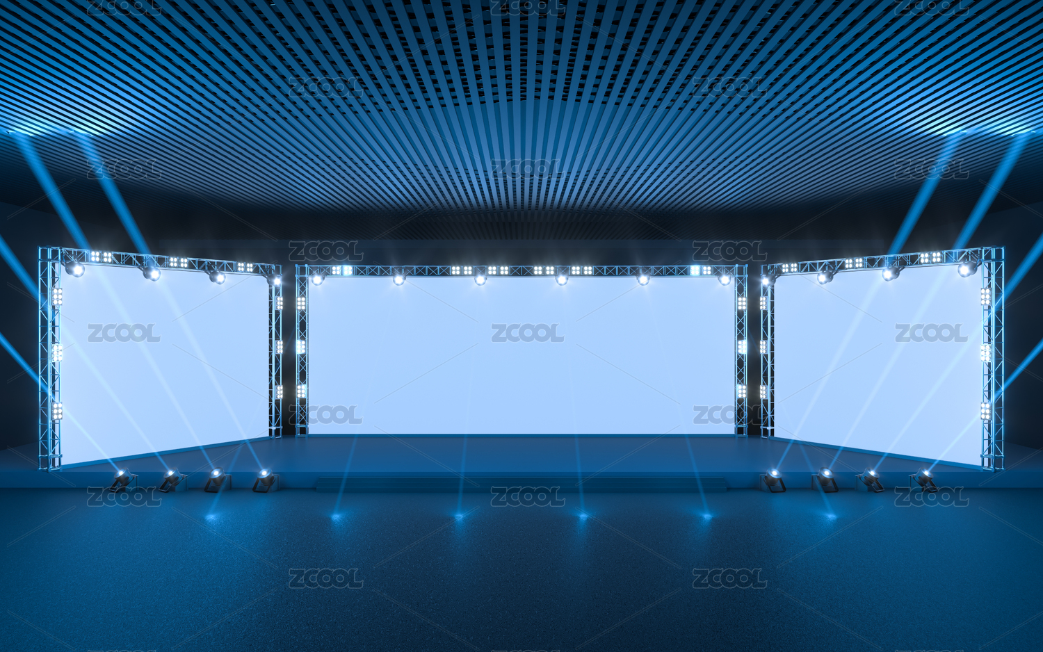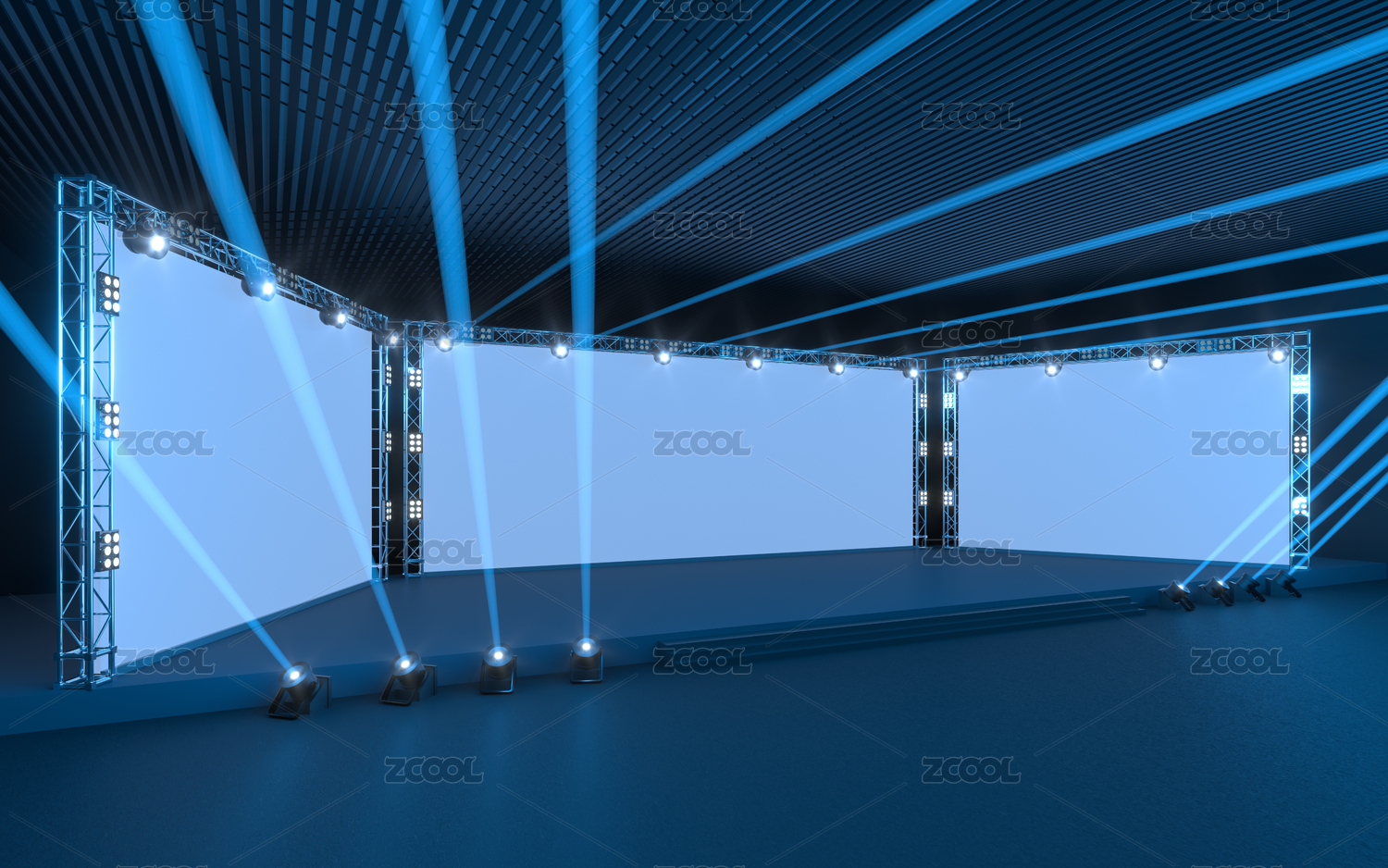 燈光照耀的發(fā)布會與廣告牌 3D渲染