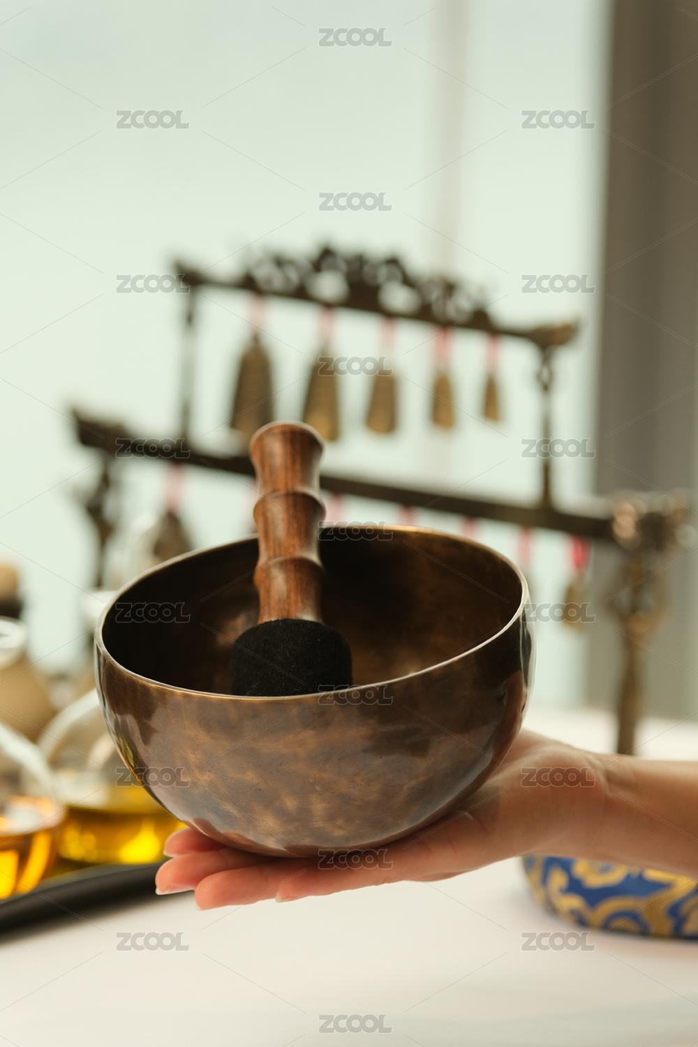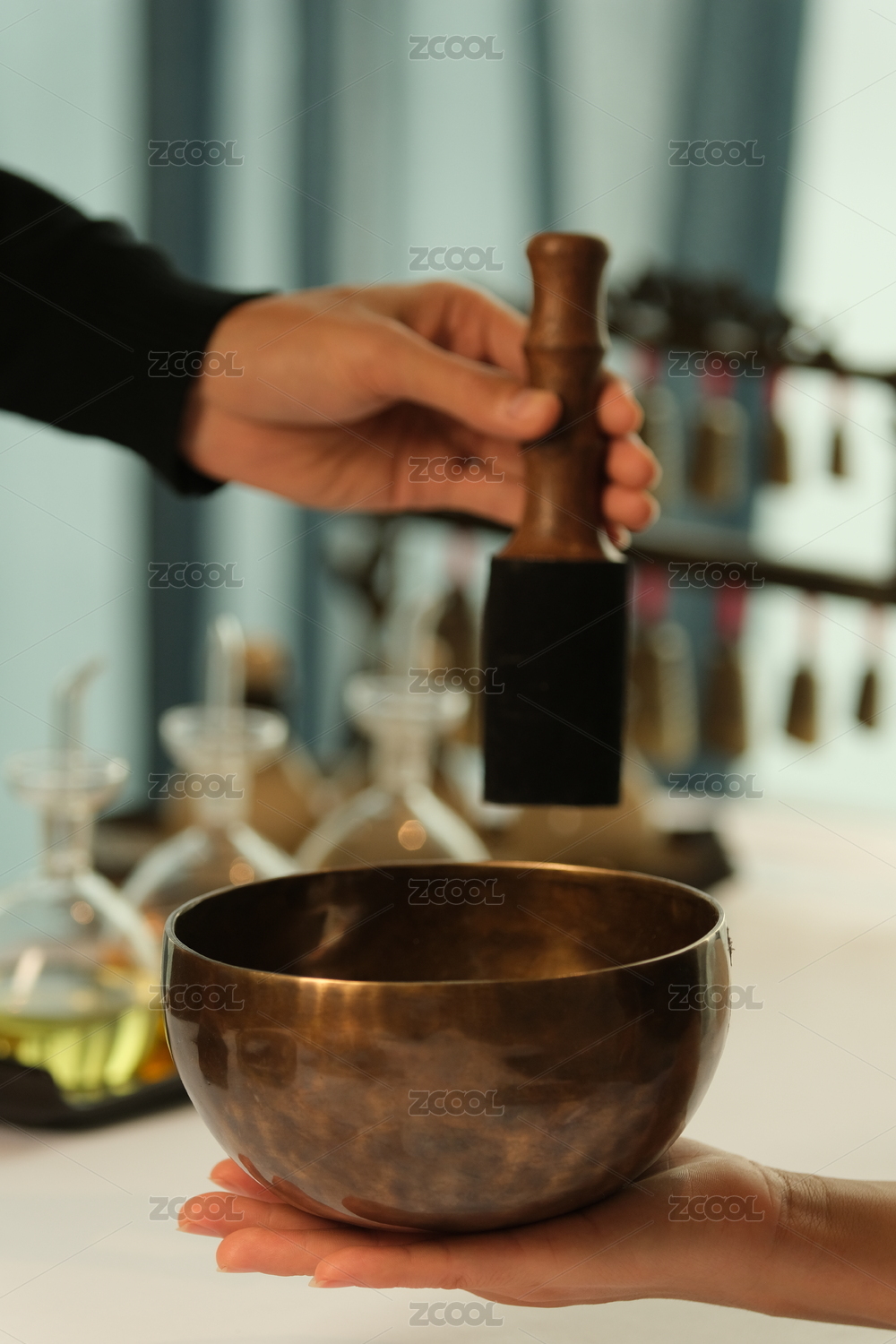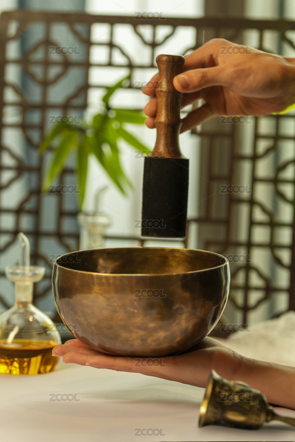 養(yǎng)生中的銅碗進(jìn)行鐳鉢共振展示