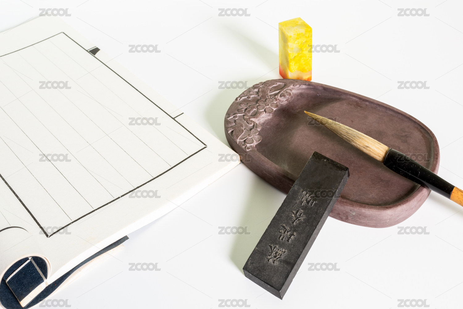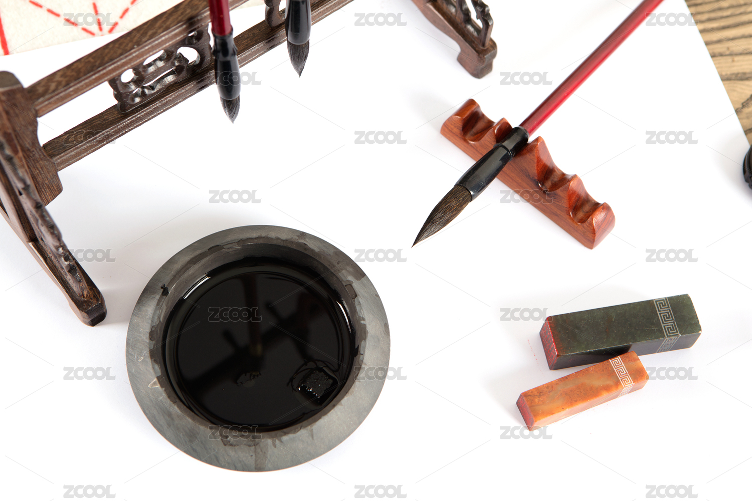 中國(guó)文房四寶白色背景圖